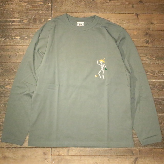 【DRESS HIPPY】"DH-HEAVY L/S TEE hand-embroidered skull" BLUE GREEN (ドレスヒッピー) 正規取扱店(Official Dealer) Cannon Ball (キャノンボール)