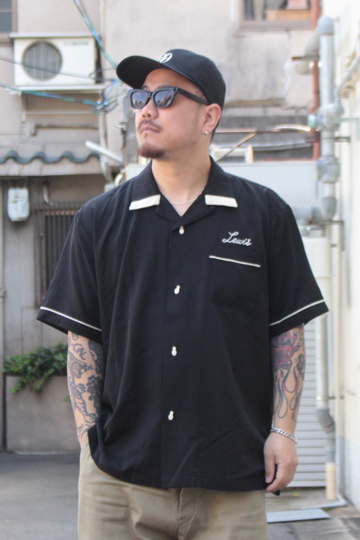 【HOUSTON】41179 BOWLING S/S SHIRT (CONCORD) -BLACK- / ヒューストン / ボウリングシャツ