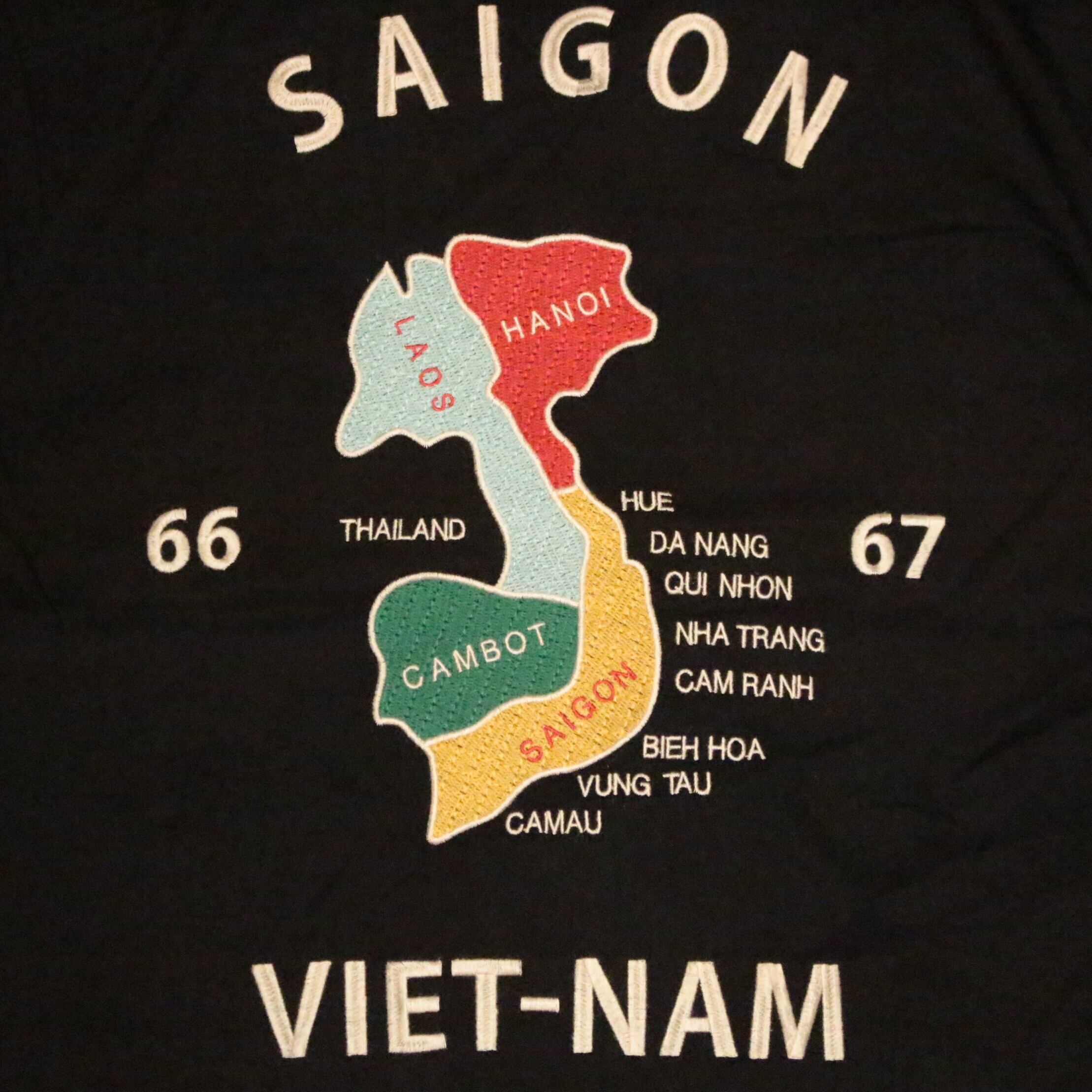 レーヨン特有の上品な光沢感があり、さらっとした着心地のスーベニアシャツ。ヴィンテージのベトジャンをサンプリングし、全体に大きくインパクトのある地図柄を採用。
