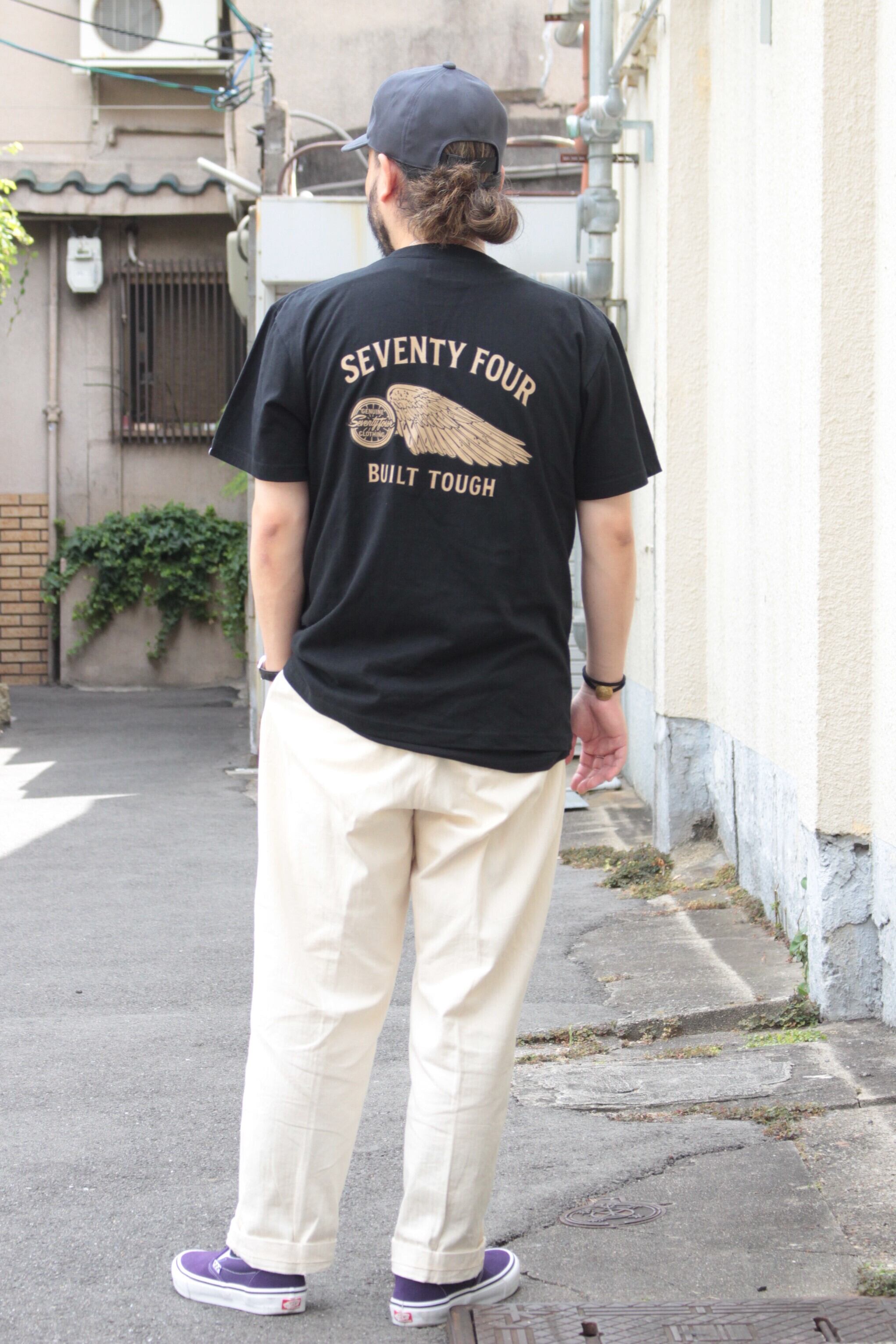 【SEVENTY FOUR】T-SHIRT (WING LOGO) -BLACK (セブンティーフォー) 正規取扱店(Official Dealer) Cannon Ball (キャノンボール)