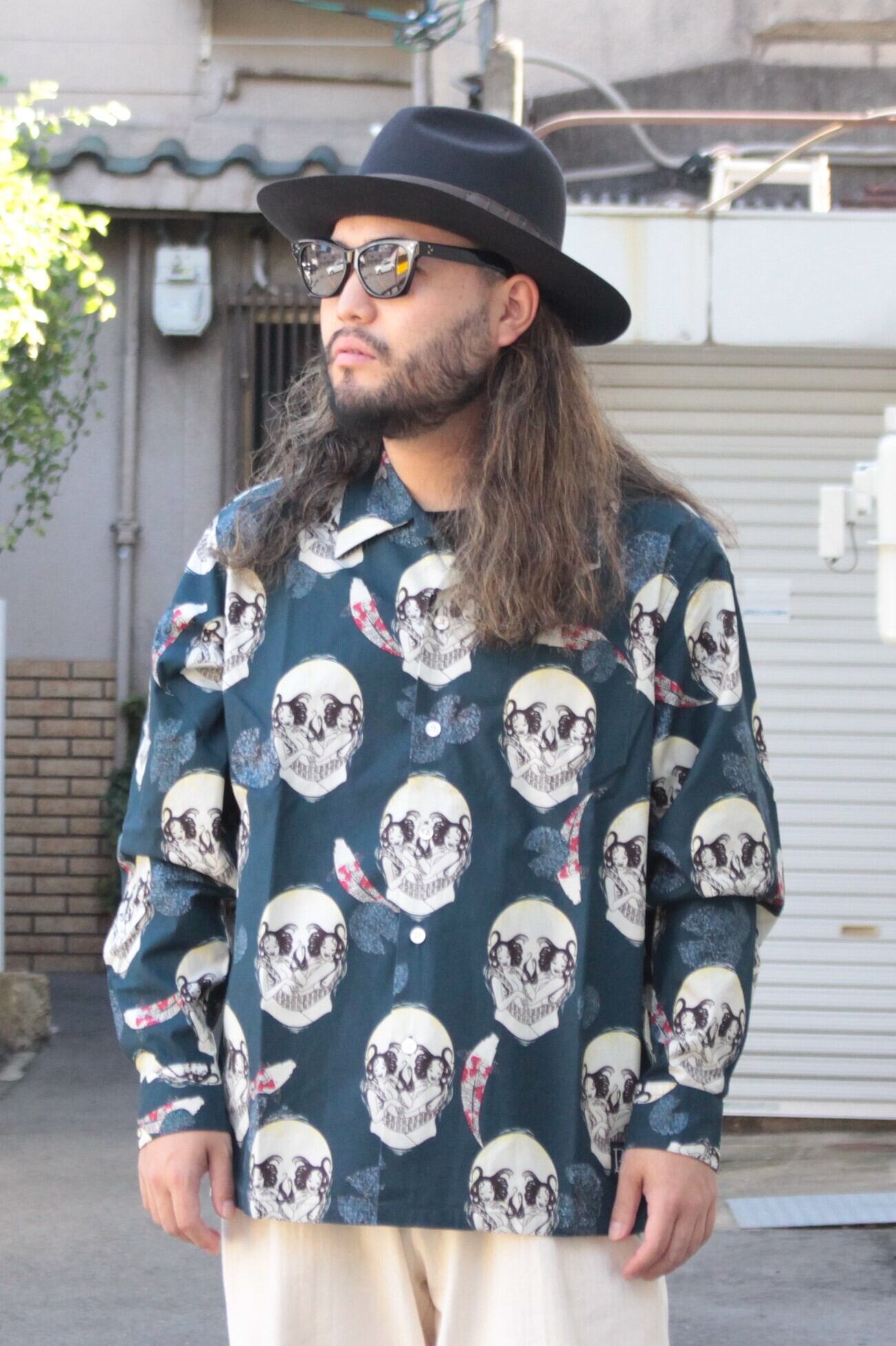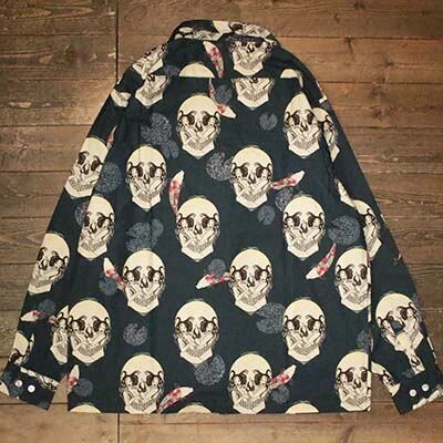 【DRESS HIPPY】"FACE TWO SKULL L/S SHIRT” -BLUE ドレスヒッピー 正規取扱店(Official Dealer) Cannon Ball キャノンボール