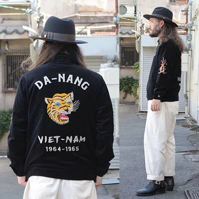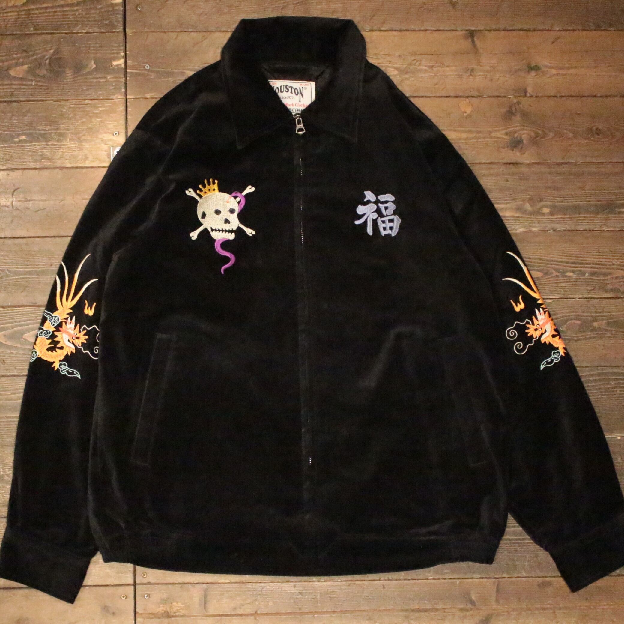 【HOUSTON】51507 COTTON VELVETEEN VIETNAM JACKET (TIGER) -BLACK / スーベニアジャケット 越南ジャケット ヒューストン スーベニア ジャケット ミリタリー アウター スカジャン MILITARY