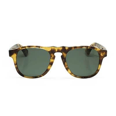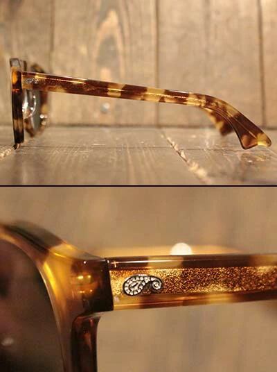 通常メタルフレームが多いティアドロップをアセテートで落とし込み表現。