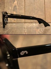 通常メタルフレームが多いティアドロップをアセテートで落とし込み表現。