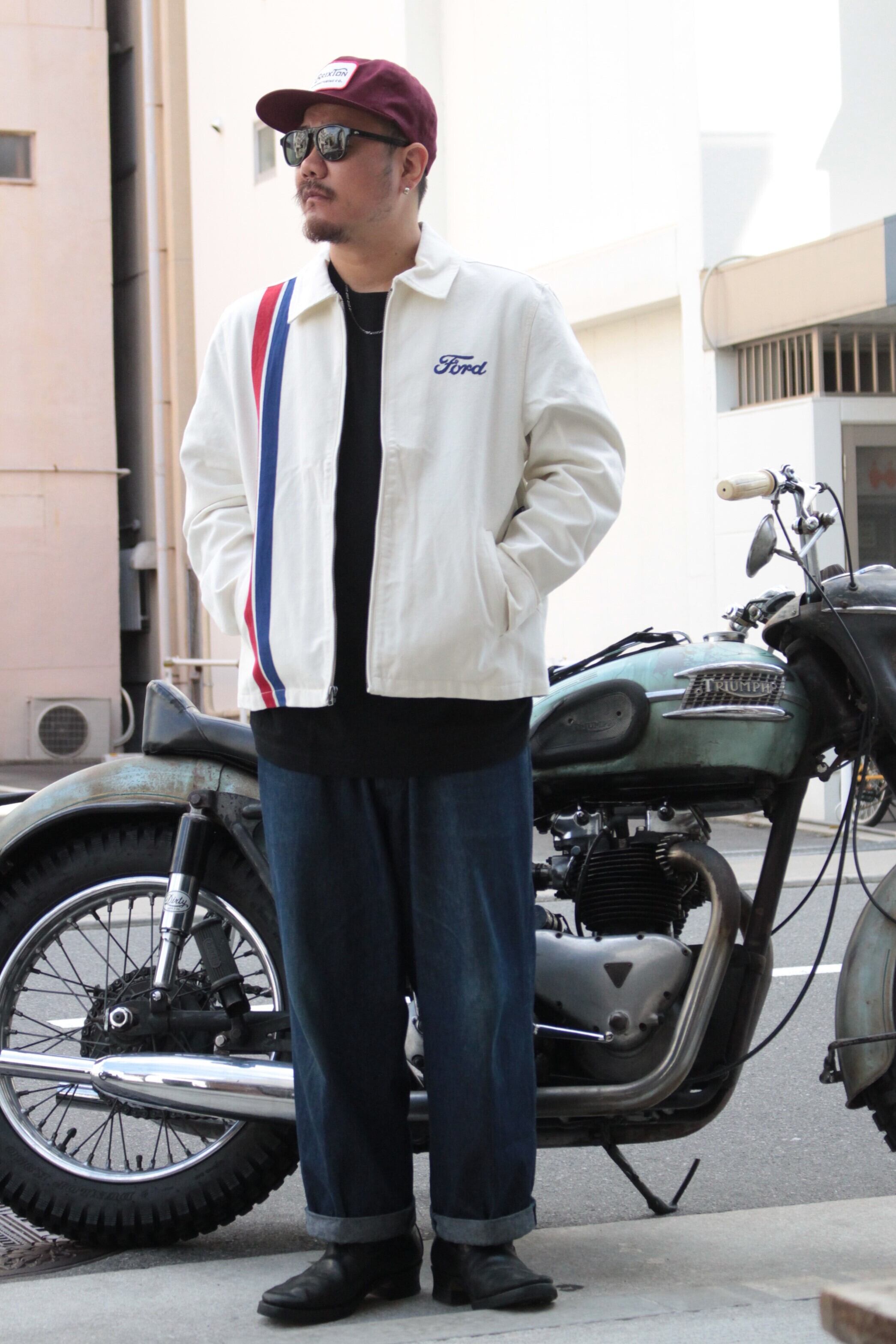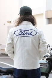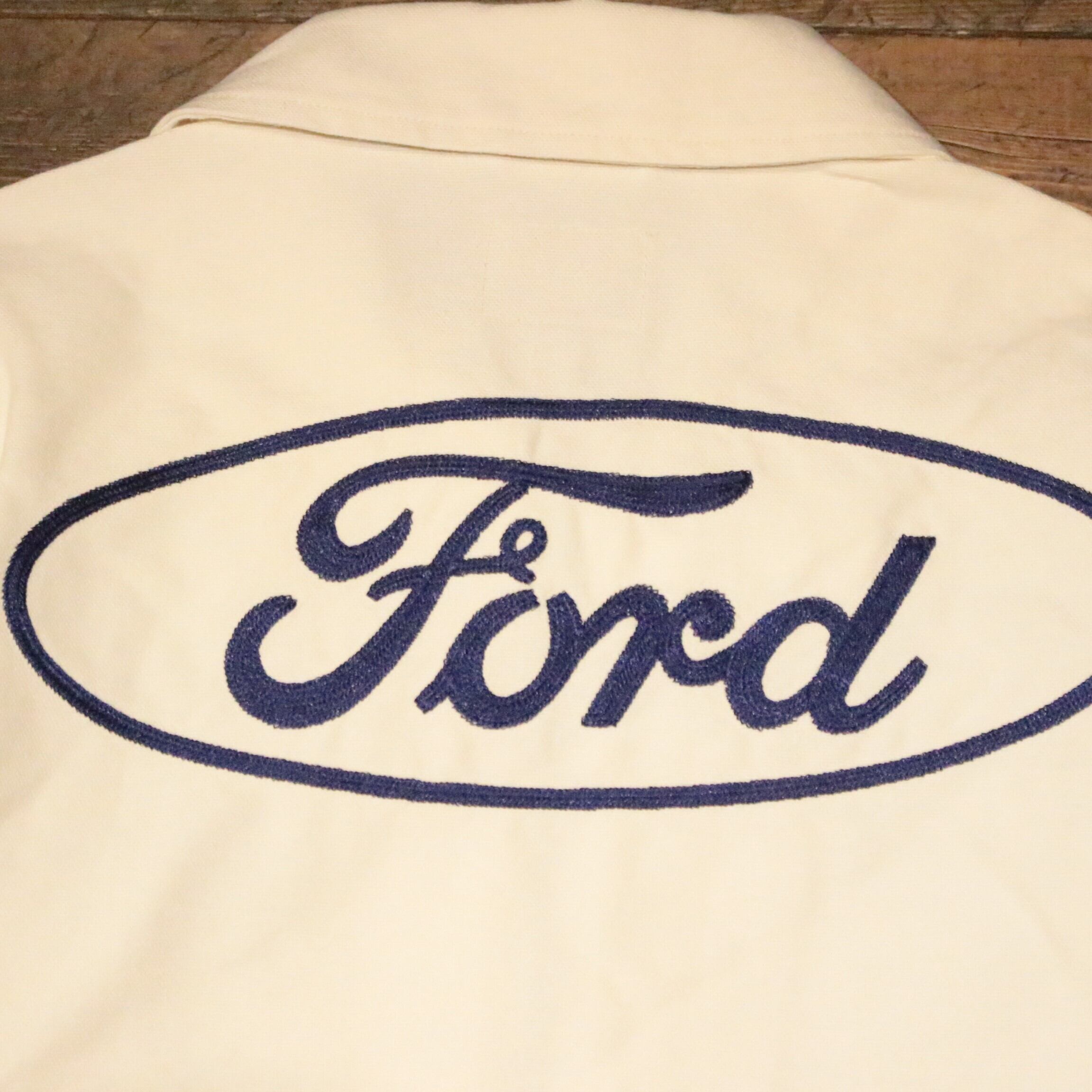 胸元と背中にはFORDロゴをチェーンステッチでインストール。