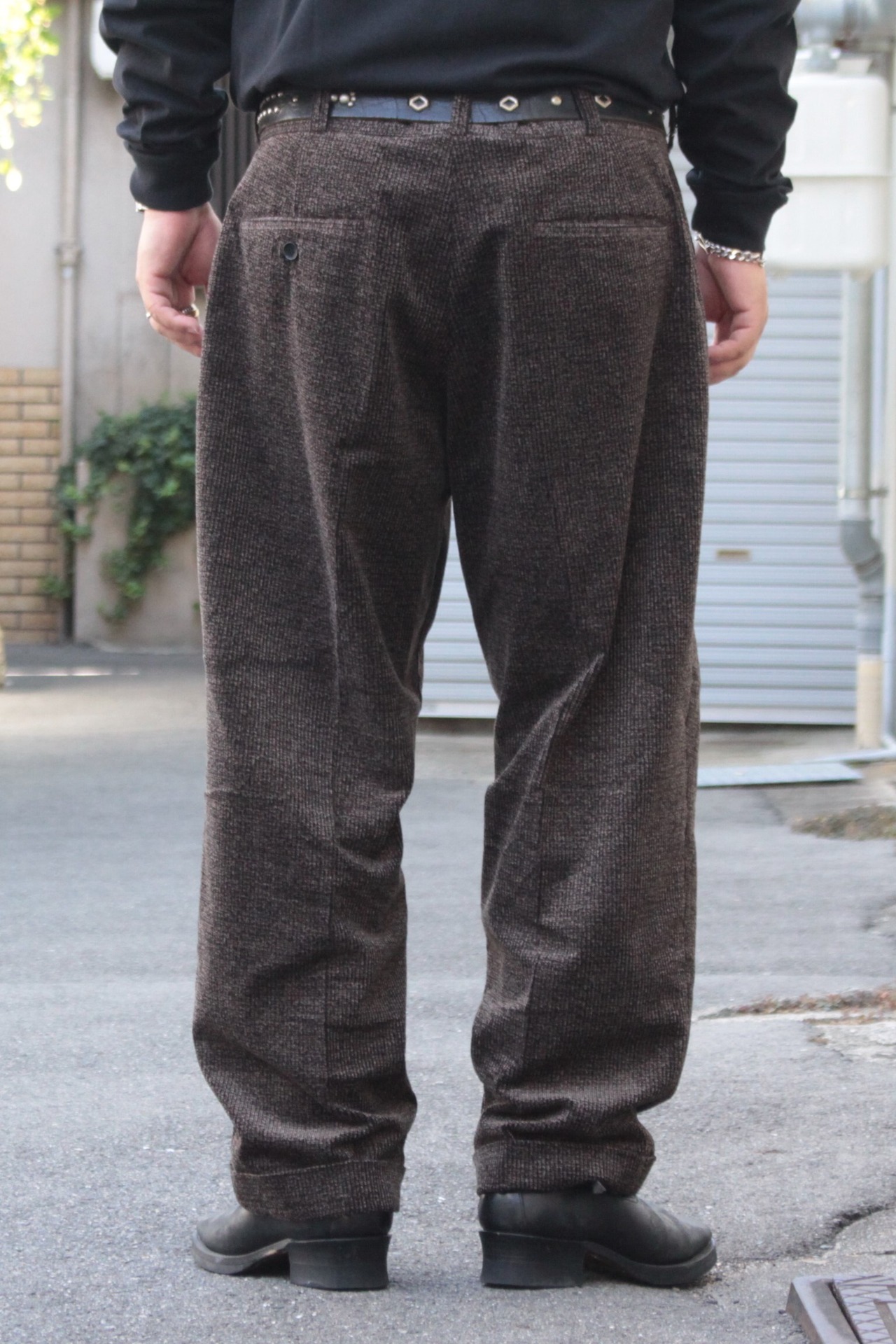 ワークパンツとスラックスを融合させた独自のシルエットが魅力で、