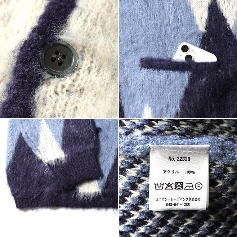 【UNIVERD72】 22328 MOHAIR TOUCH CARDIGAN (DIAMOND) -NAVY / モヘアタッチ 起毛 カーディガン グランジ