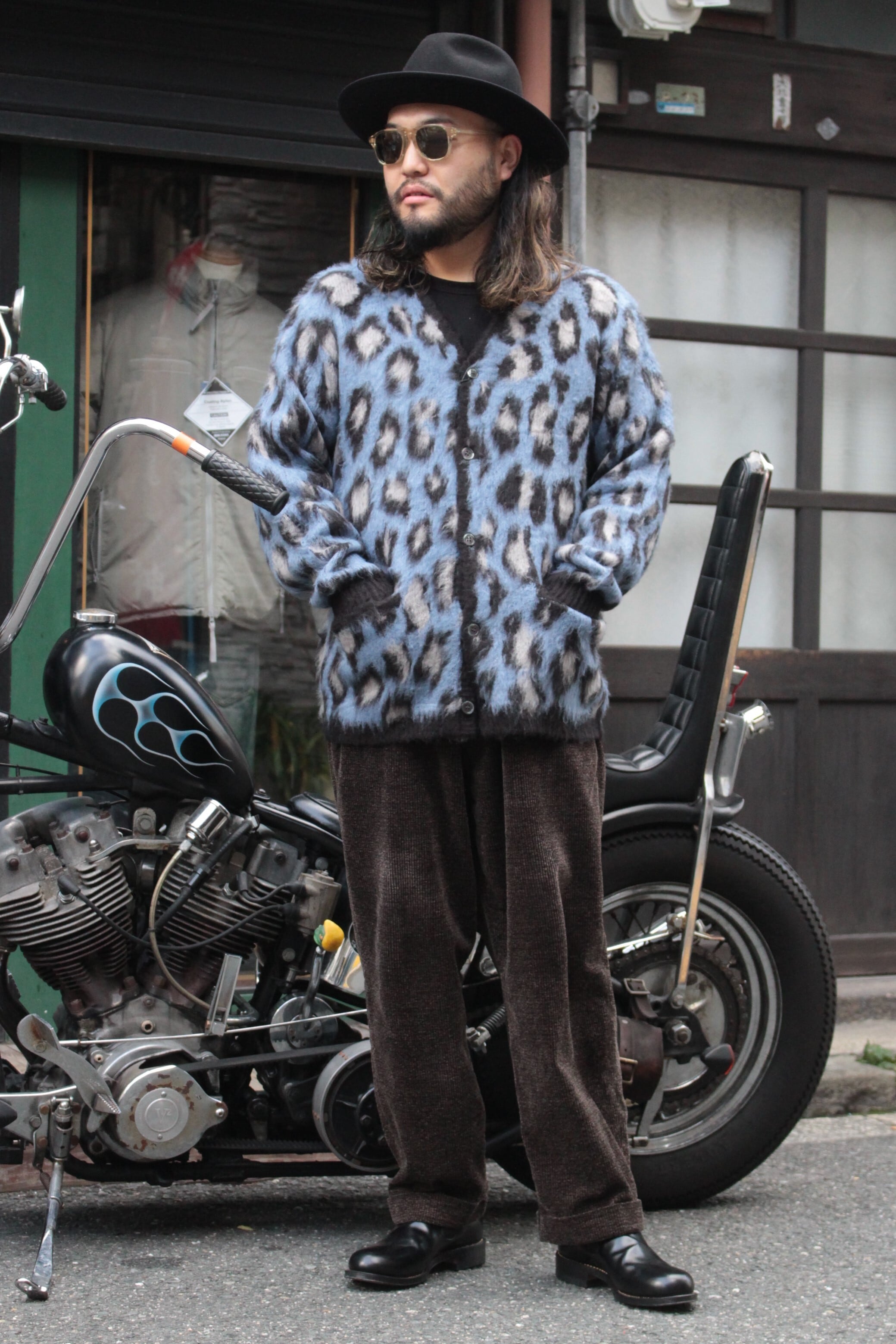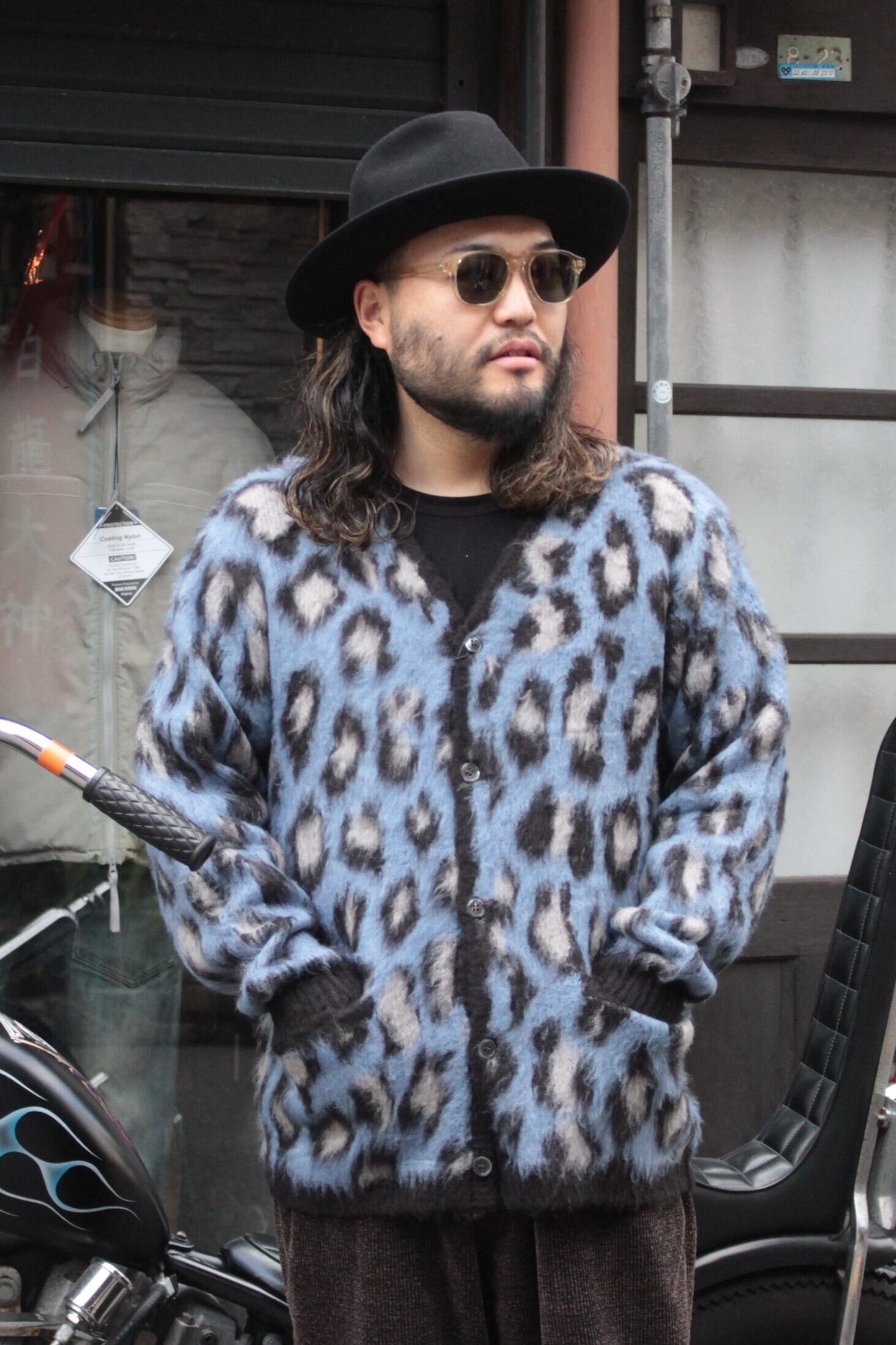 【UNIVERD72】 22329 MOHAIR TOUCH CARDIGAN (LEOPARD) -BLUE / モヘアタッチ 起毛 カーディガン グランジ