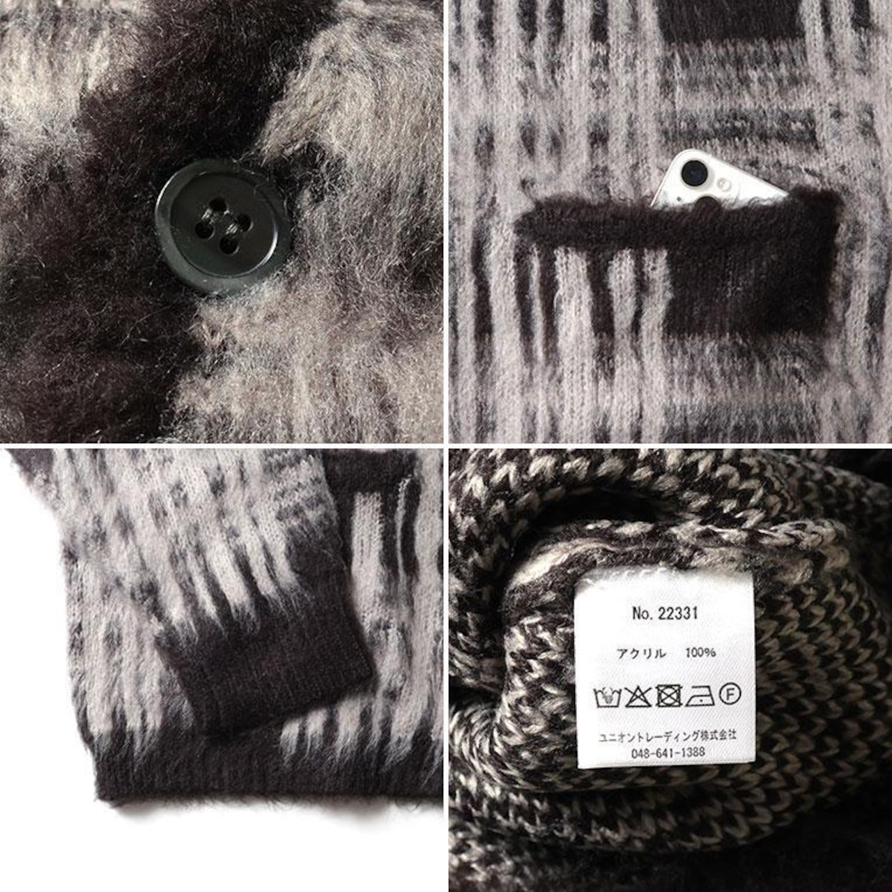 【UNIVERD72】 22331 MOHAIR TOUCH CARDIGAN (CHECK) -BLACK / モヘアタッチ 起毛 カーディガン グランジ