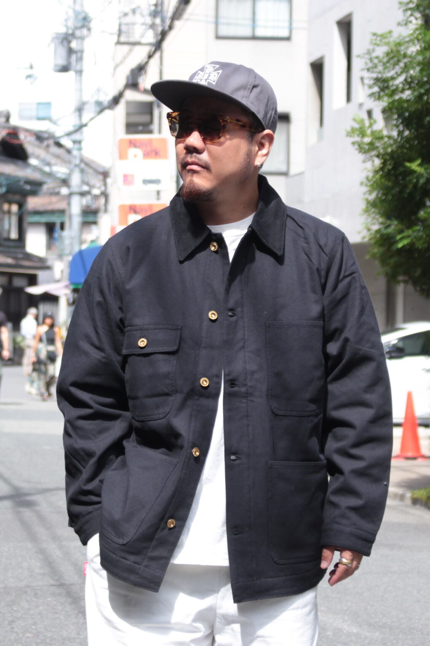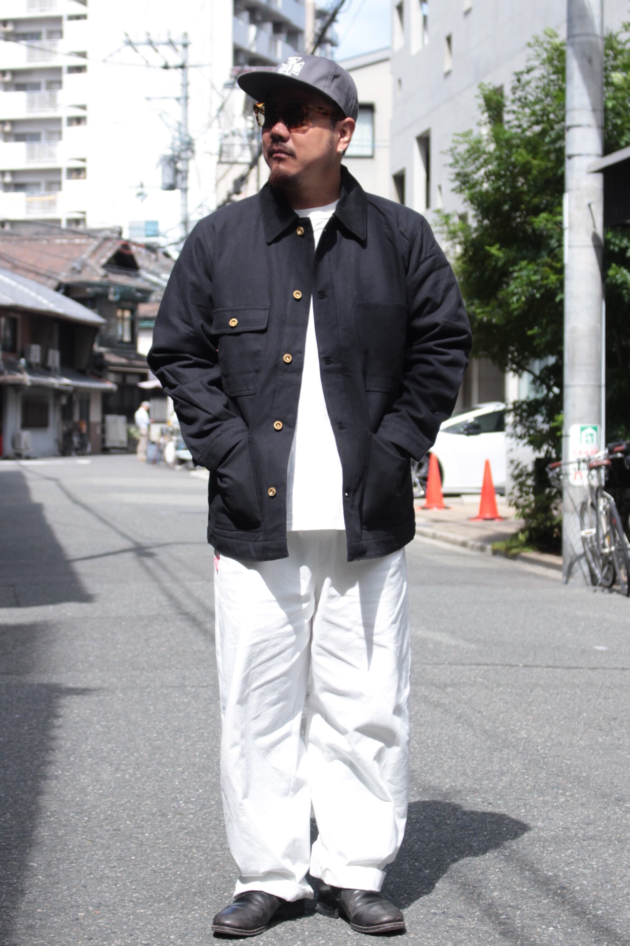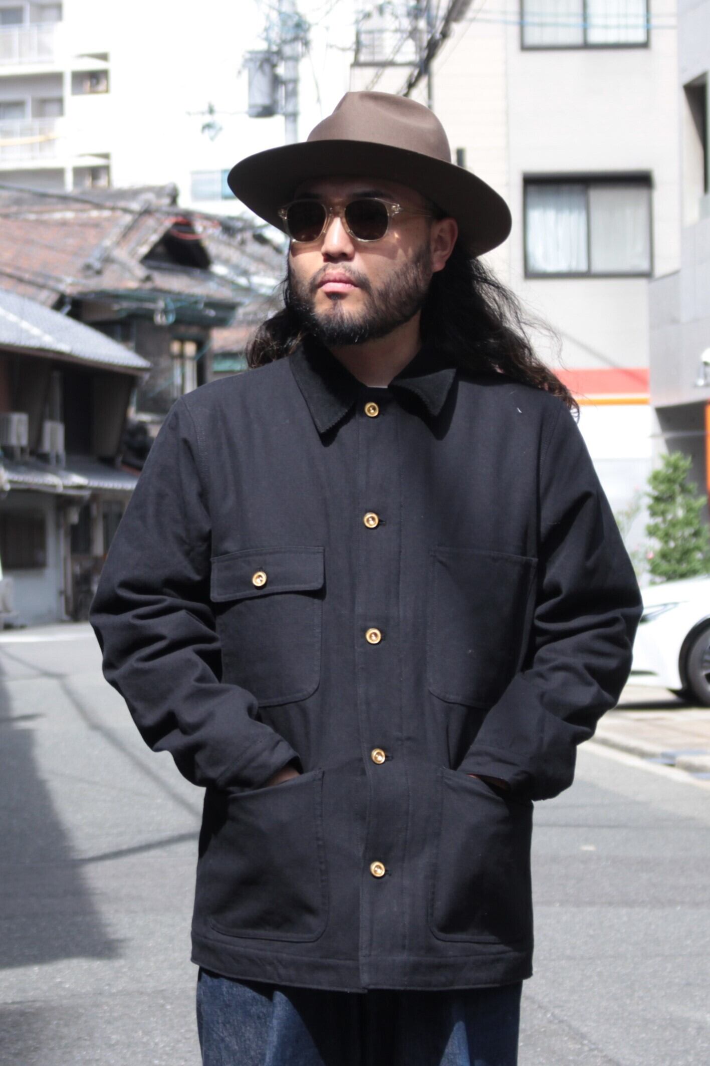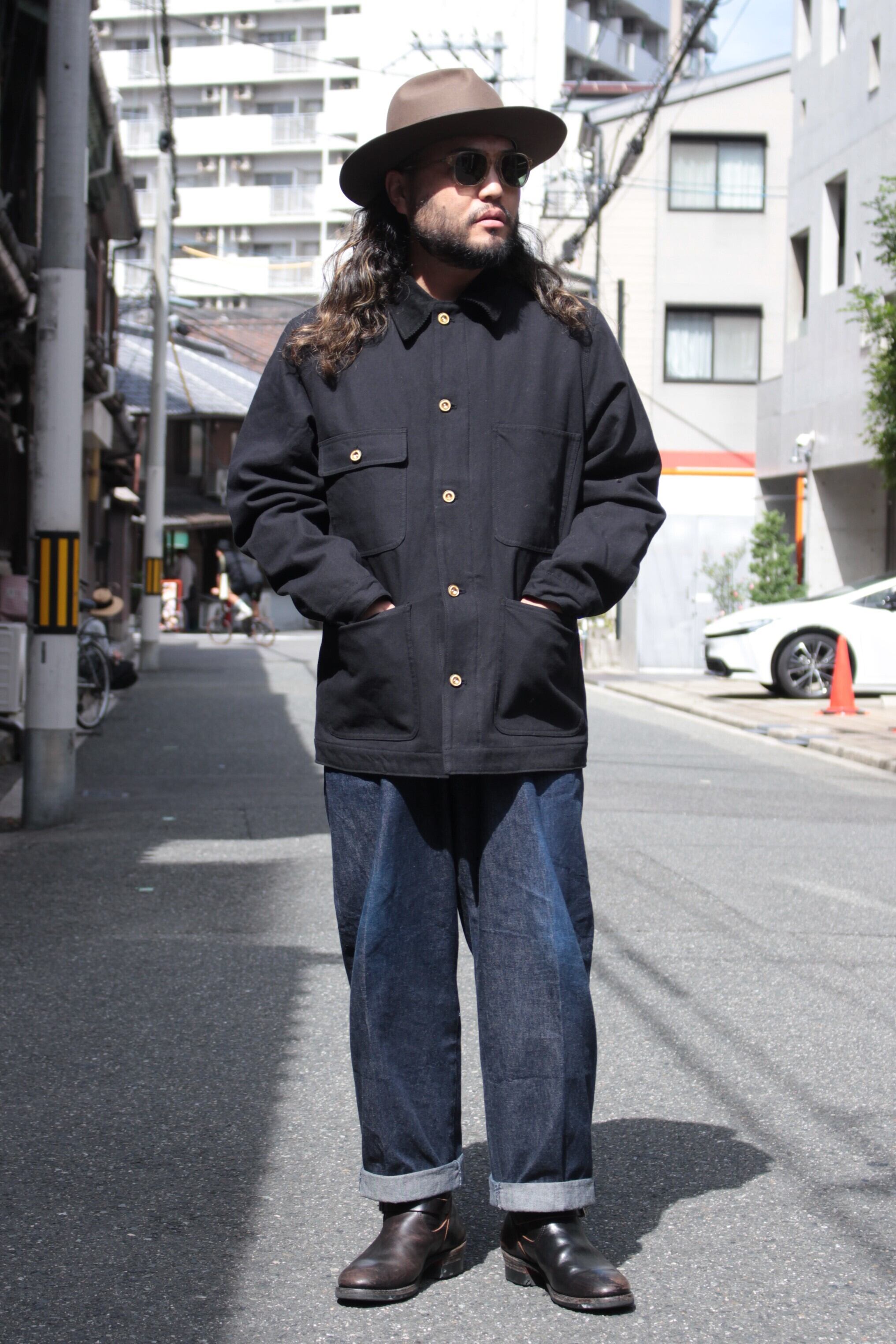 無地のビエラ生地を使用したカバーオール。一般的なダックのワーク系カバーオールは生地が硬くて着用しづらいのが難点だが、このアイテムは生地が柔らかくストレスフリーに着用可能。コーデュロイの襟とヴィンテージ調のタックボタンで、アメカジアイテムとの相性も抜群なアイテム。裏地にはキルティングが採用されているので、保温性にも長けている。