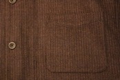 ナローなノッチドラペルに、貼りポケットやカ ジュアルなスタイルにウッドボタン。