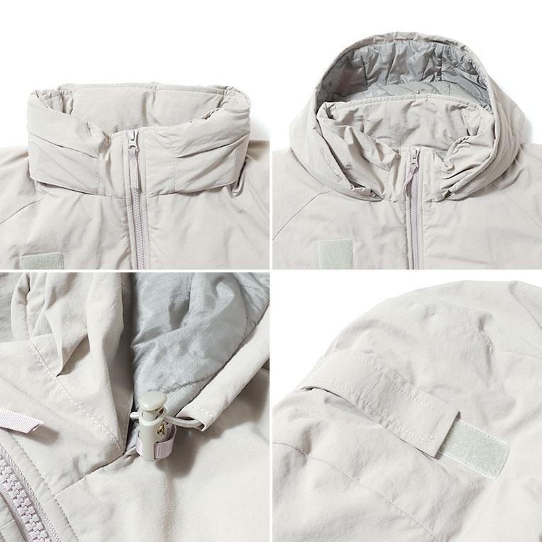 プリマロフトを使用した、LEVEL7ジャケット。生地は実物のような質感のコーティングナイロンを使用。LEVEL7をサンプリングし、実物仕様のサイズスペックに仕上げ、細かなディティールにも拘っている。中綿もボリューム感があり、保温性抜群。