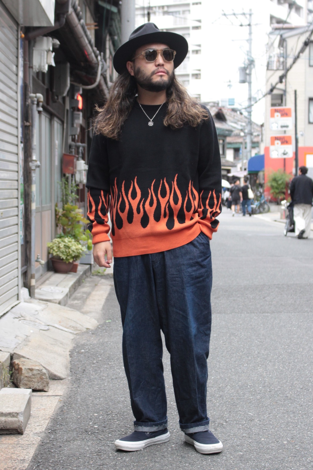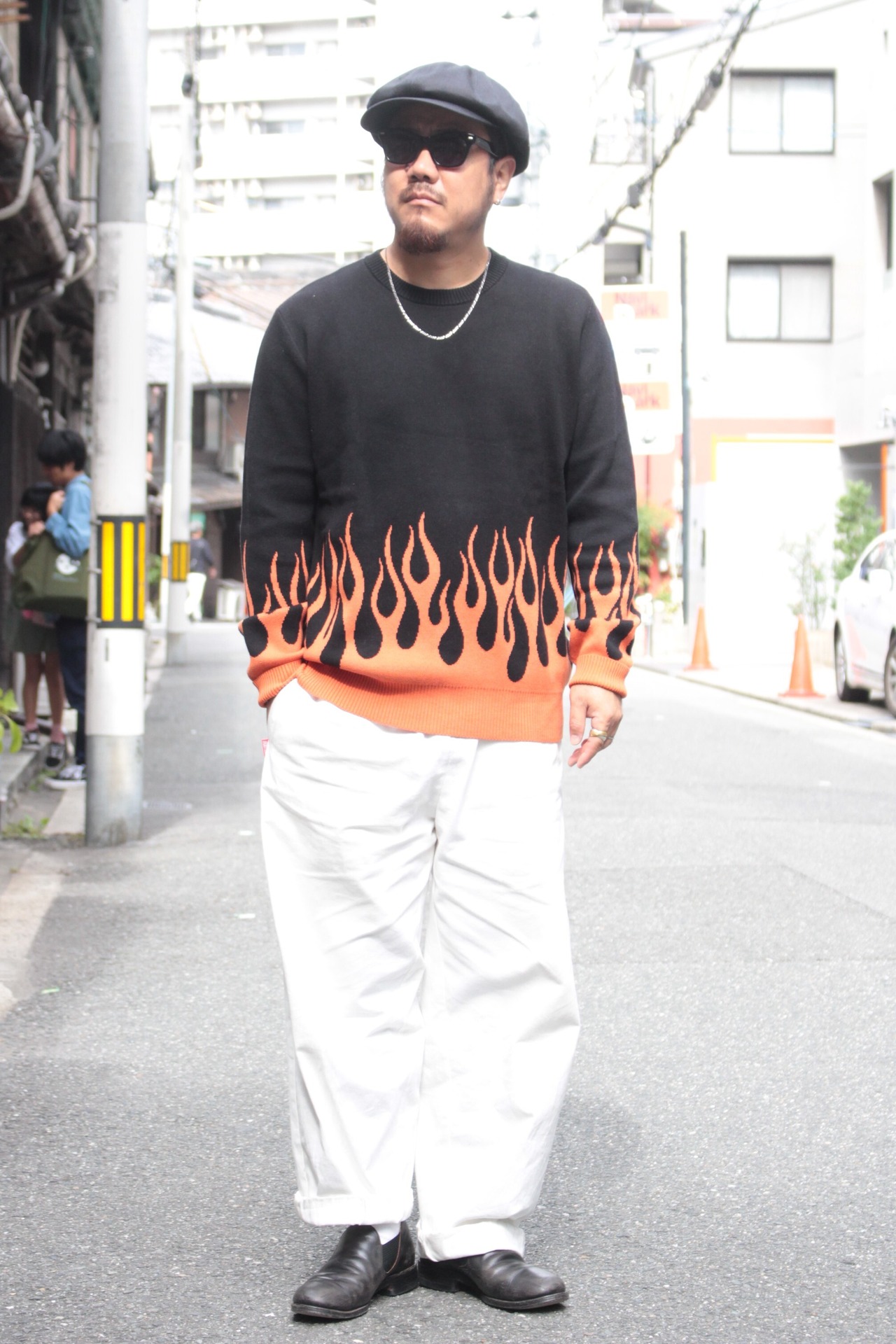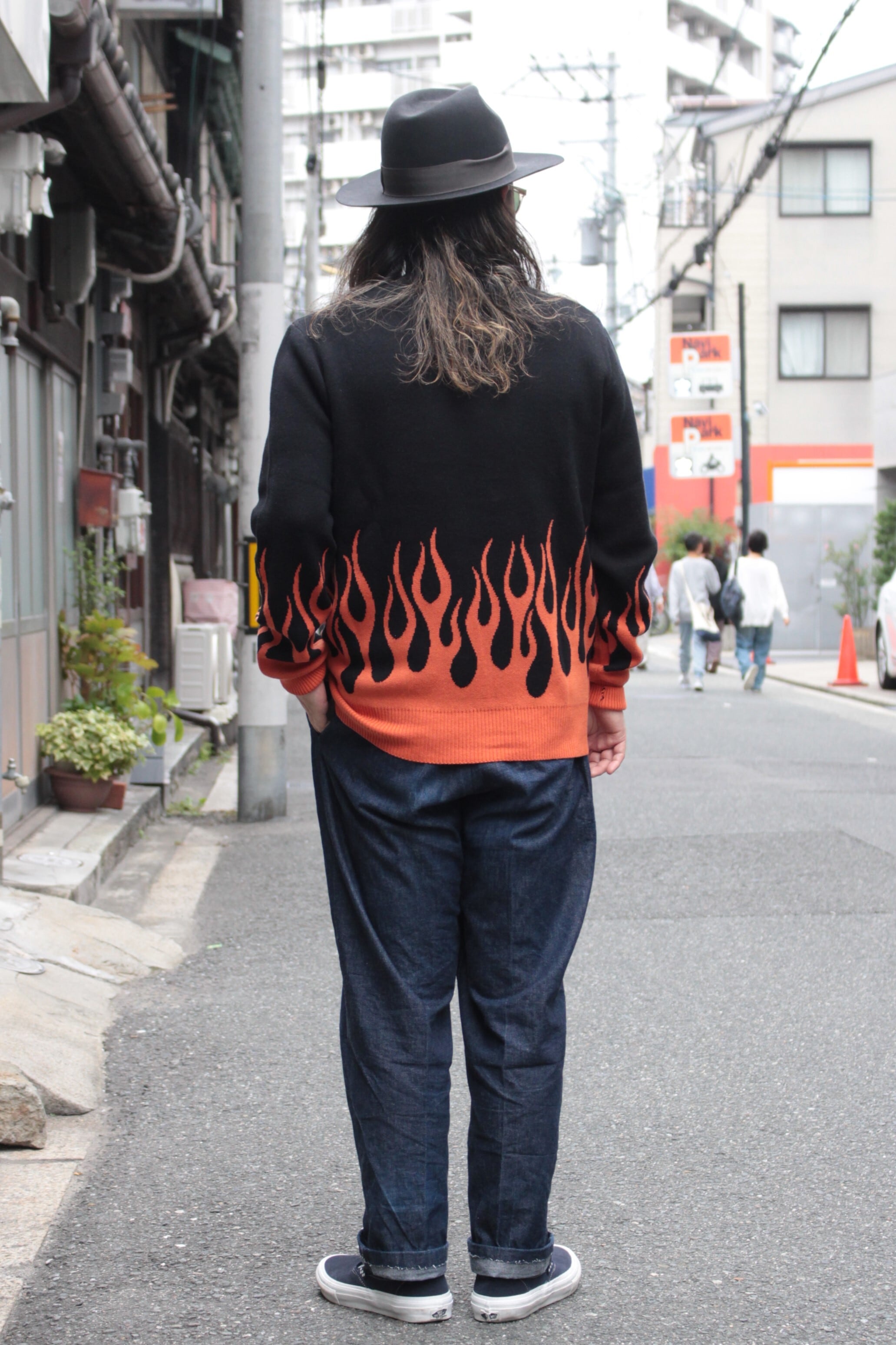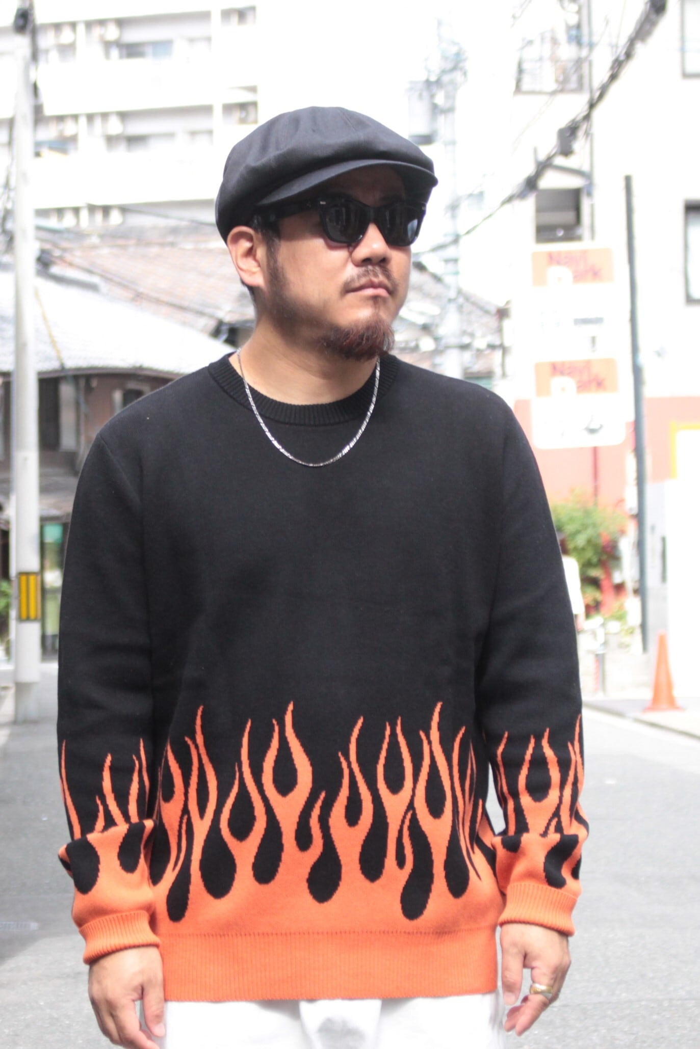 【WORTHIES】[予約受付中] W.FLAME KNIT SWEATER -Black×Orange