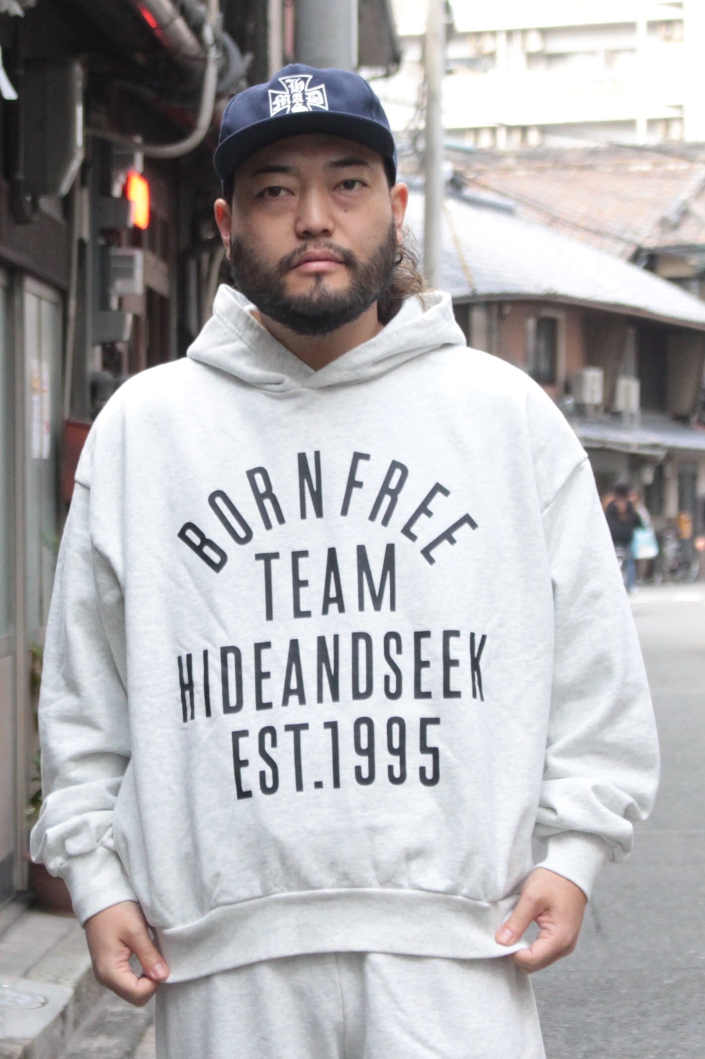 【HIDE AND SEEK】College Hooded Sweat Shirt -L.GRAY(ハイドアンドシーク)