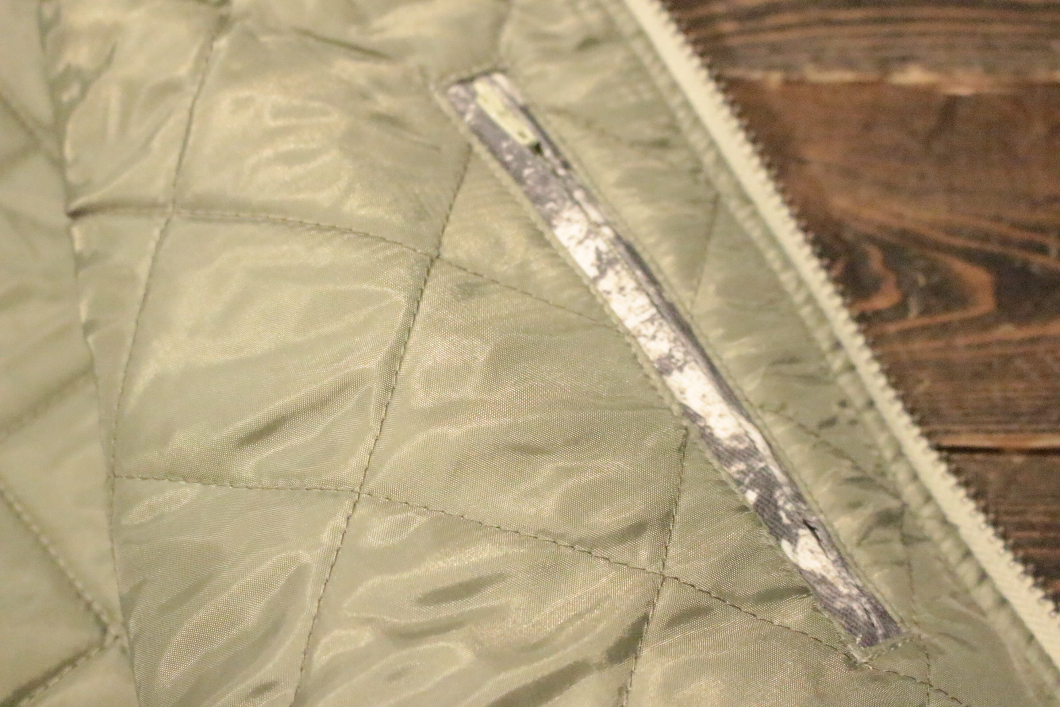 ライニング、及び両サイドポケット裏も中綿キルティング仕様。