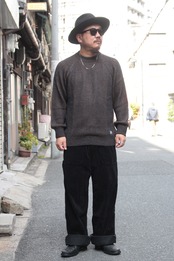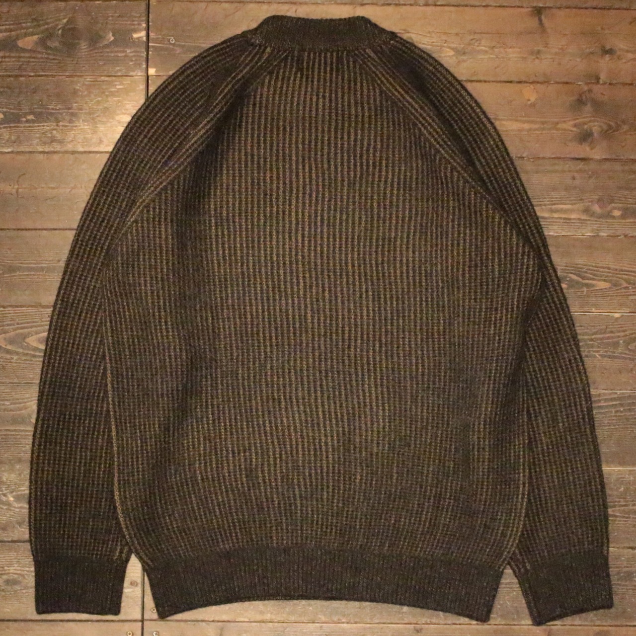 ボディーはラグラ ンニット型で編みたて、無骨な太リブで表現。