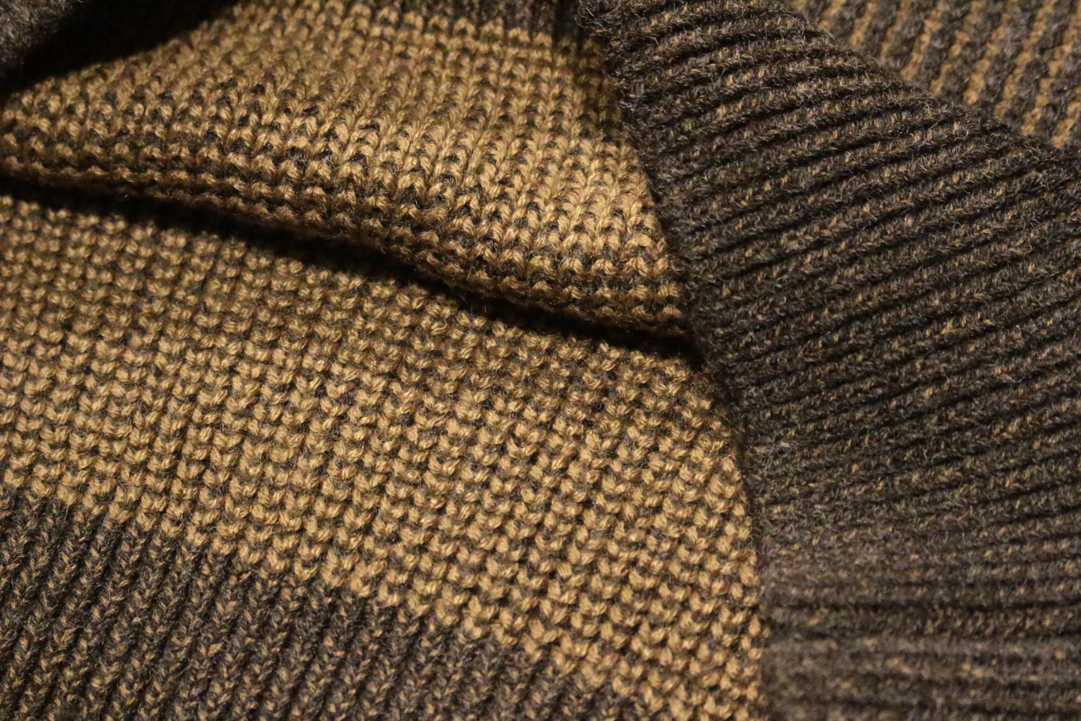 凹凸のある畦(アゼ)編みにより軽 く温かみのある風合いと独自の配色で表現。