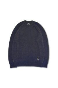 ボディーはラグラ ンニット型で編みたて、無骨な太リブで表現。
