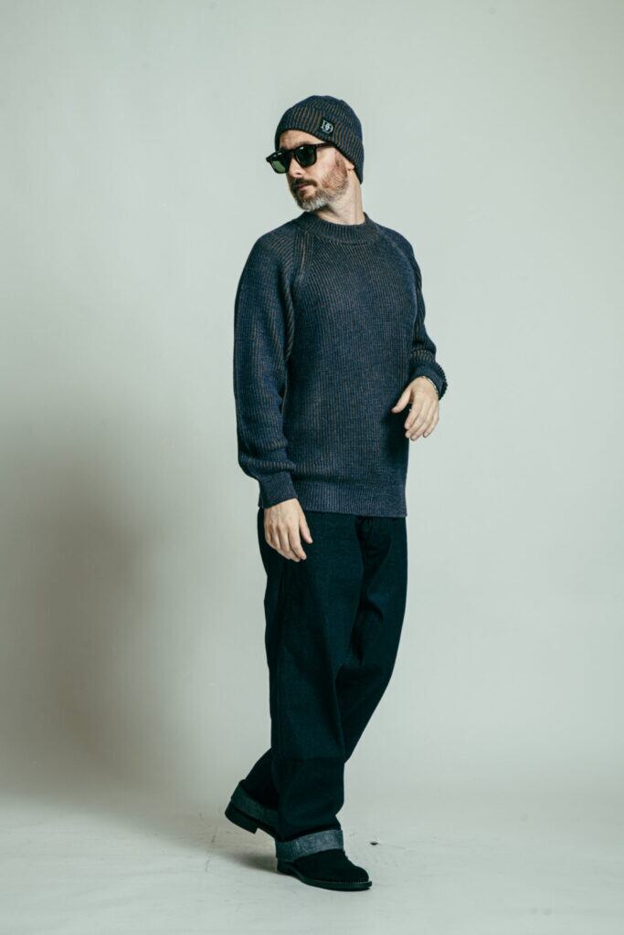 フィッシャーマンニット特有の毛玉ができにくいバルキー(膨らんだ)糸を使用。