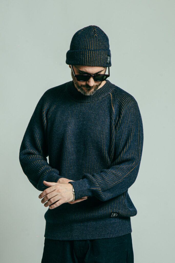 凹凸のある畦(アゼ)編みにより軽く温かみのある風合いと独自の配色で表現。
