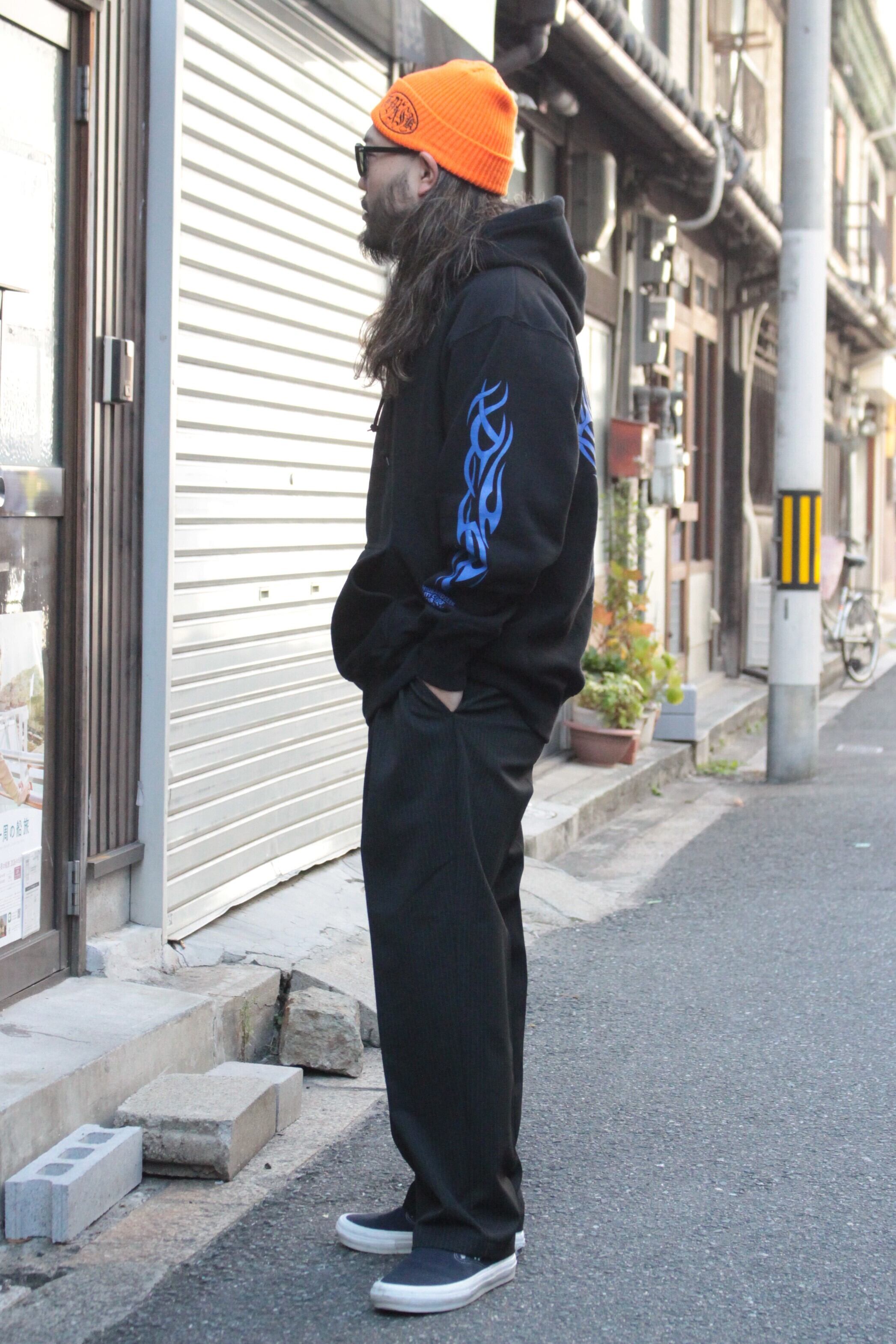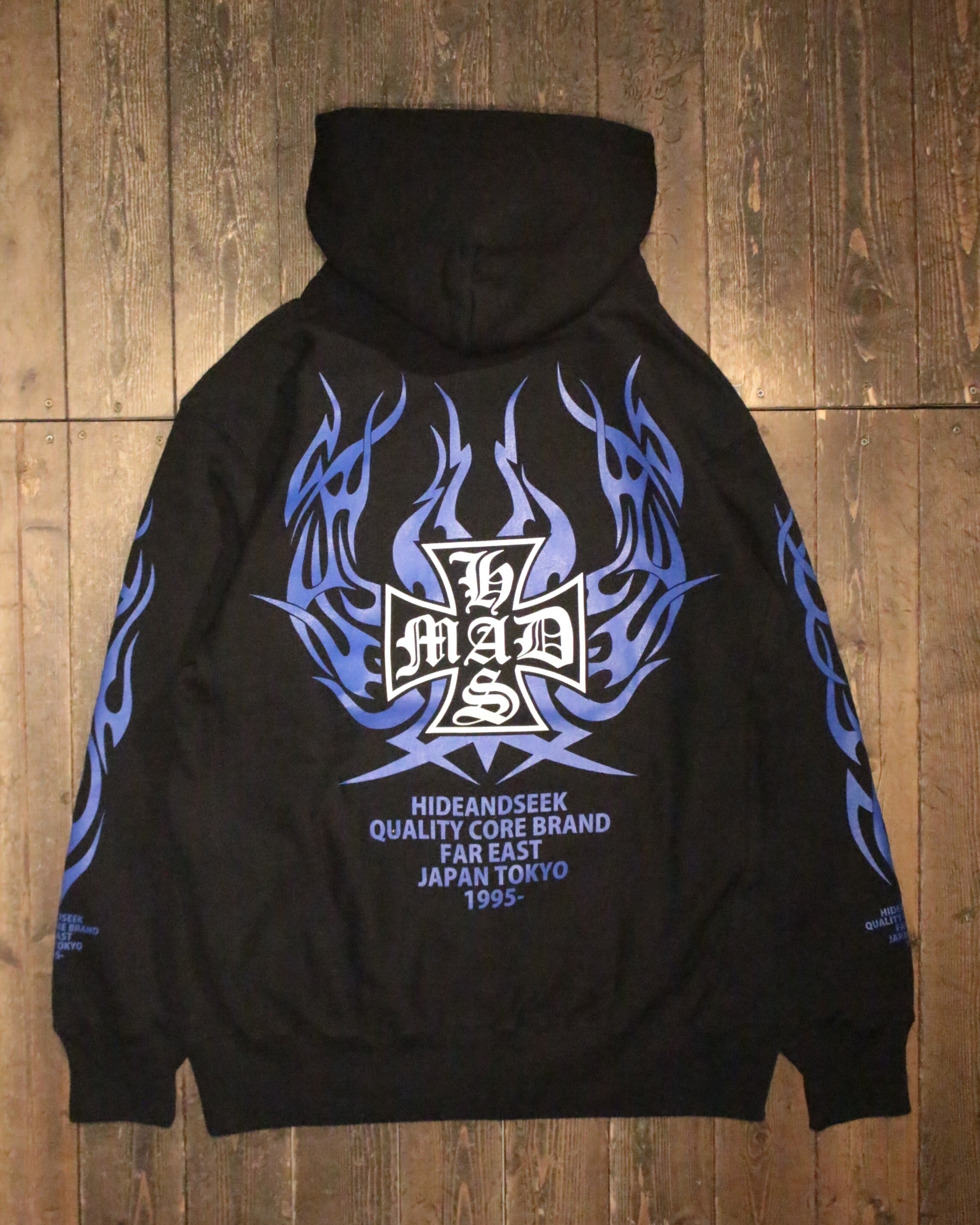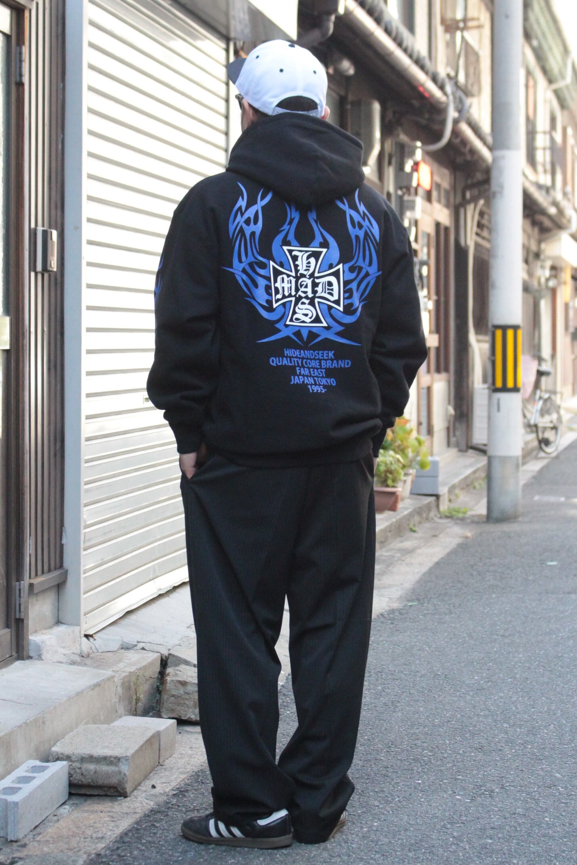 【HIDE AND SEEK】MAD Hooded Sweat Shirt -BLACK/BLUE (ハイドアンドシーク)