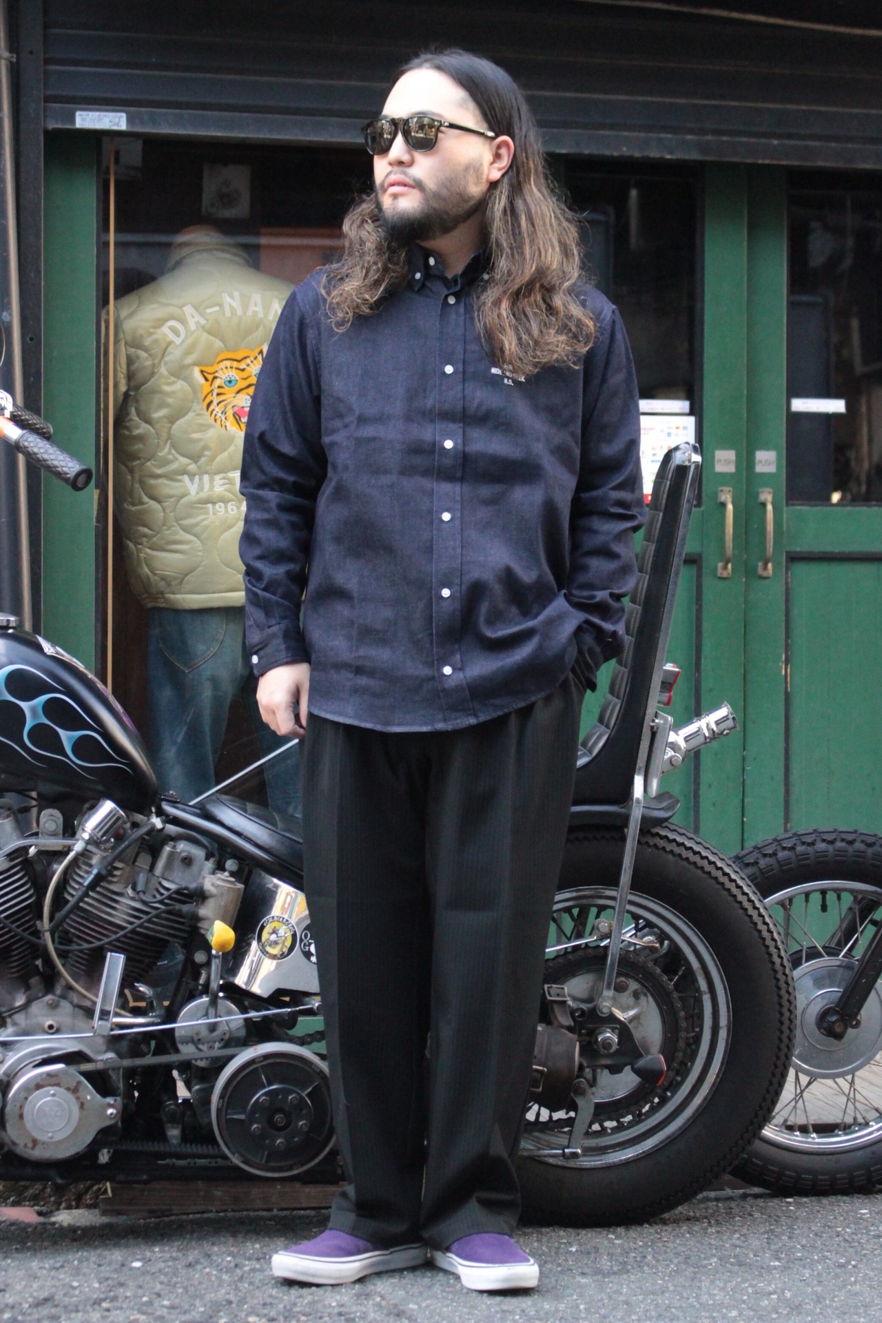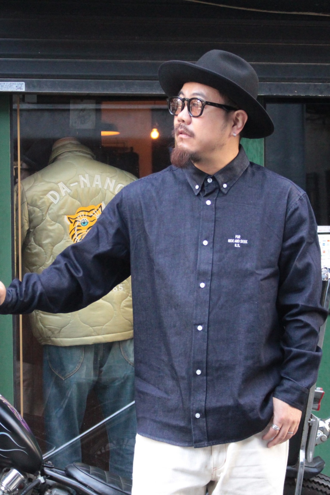 【HIDE AND SEEK】Denim B.D. L/S Shirt -INDIGO (ハイドアンドシーク)