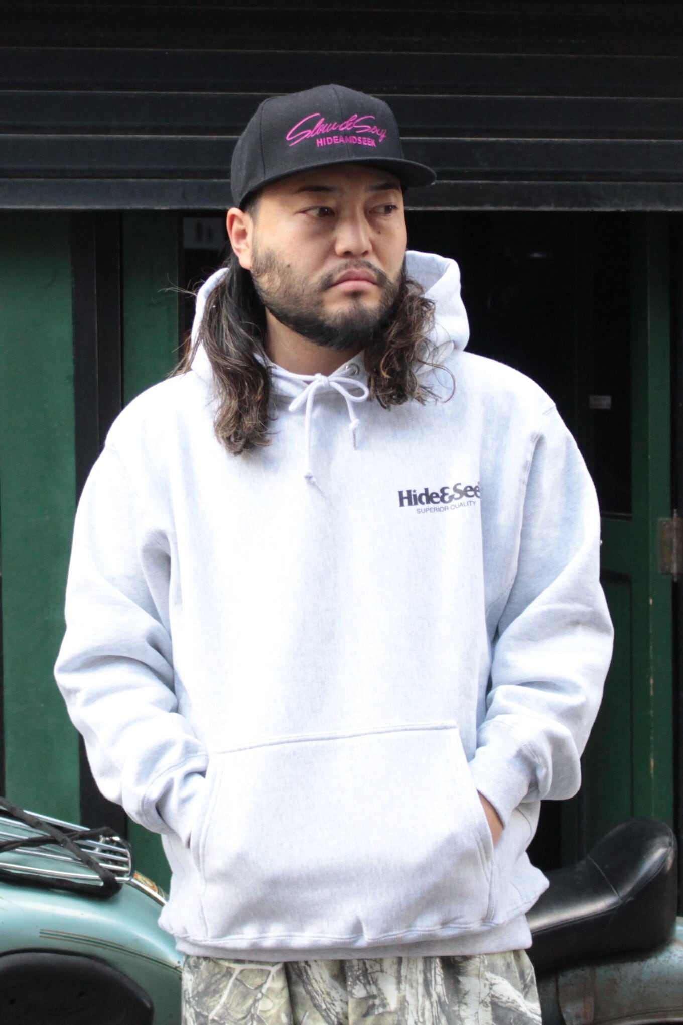 【HIDE AND SEEK】Logo Hooded Sweat Shirt-2(25aw) -L.GRAY (ハイドアンドシーク)