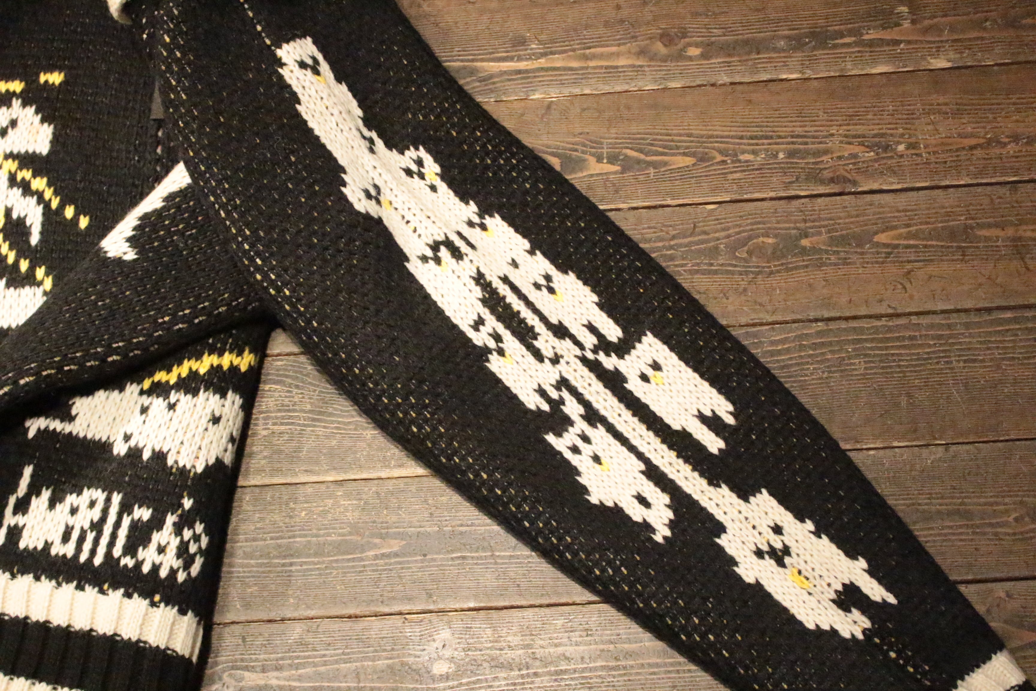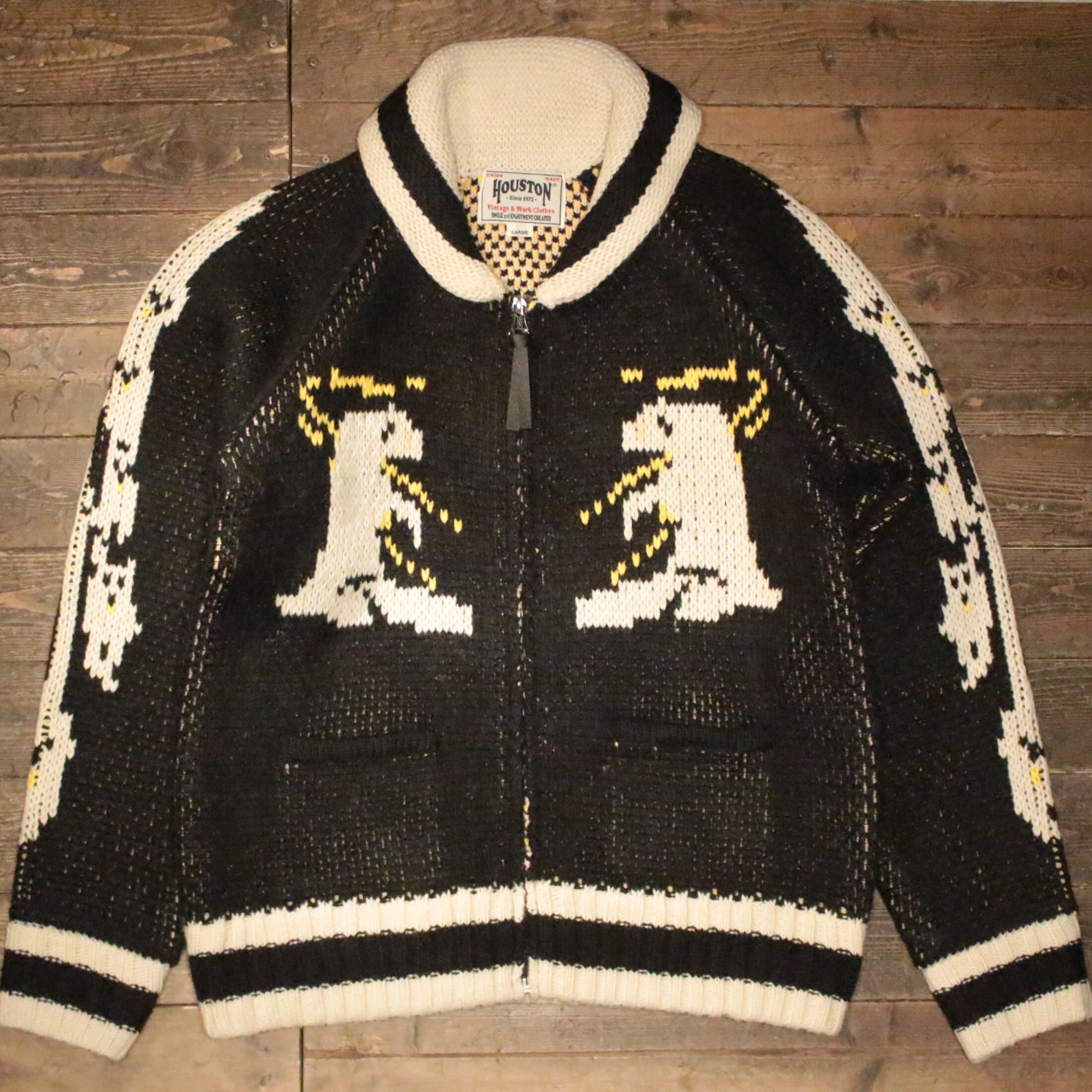 【HOUSTON】22317 SOUVENIR COWICHAN SWEATER (BEAR) -BLACK- ヒューストン カウチン セーター