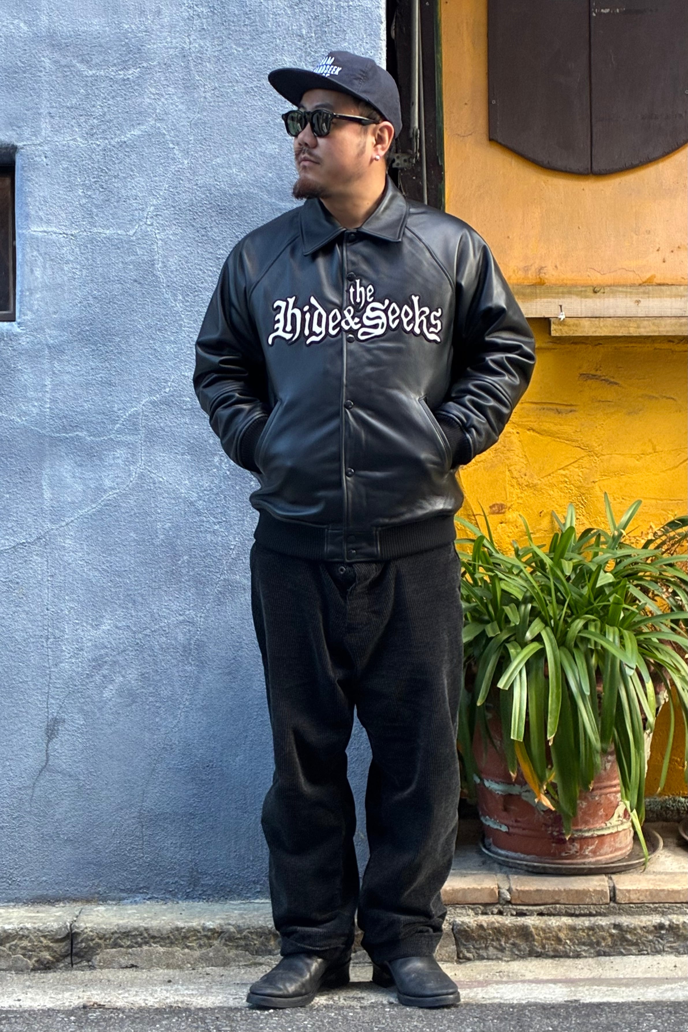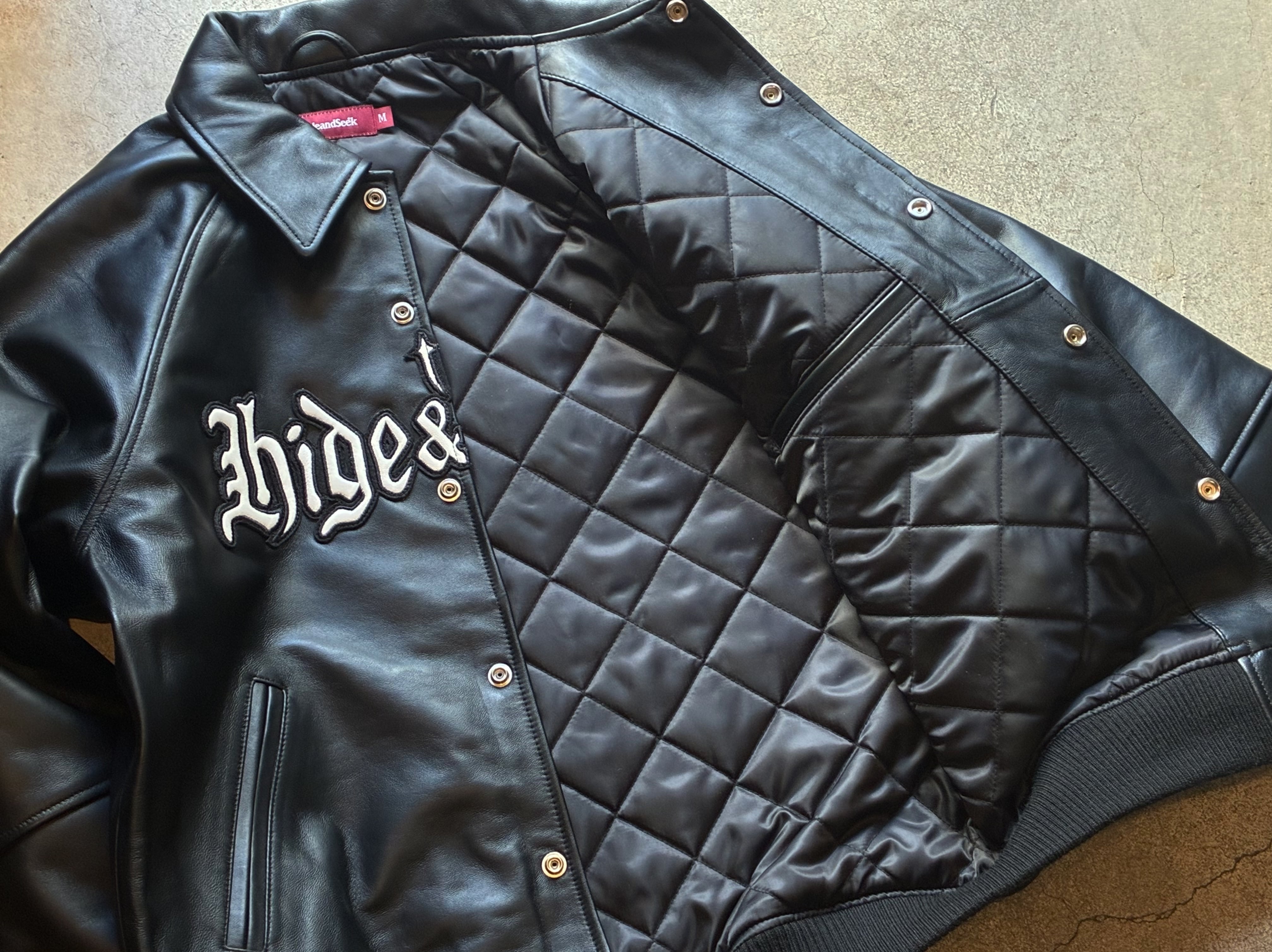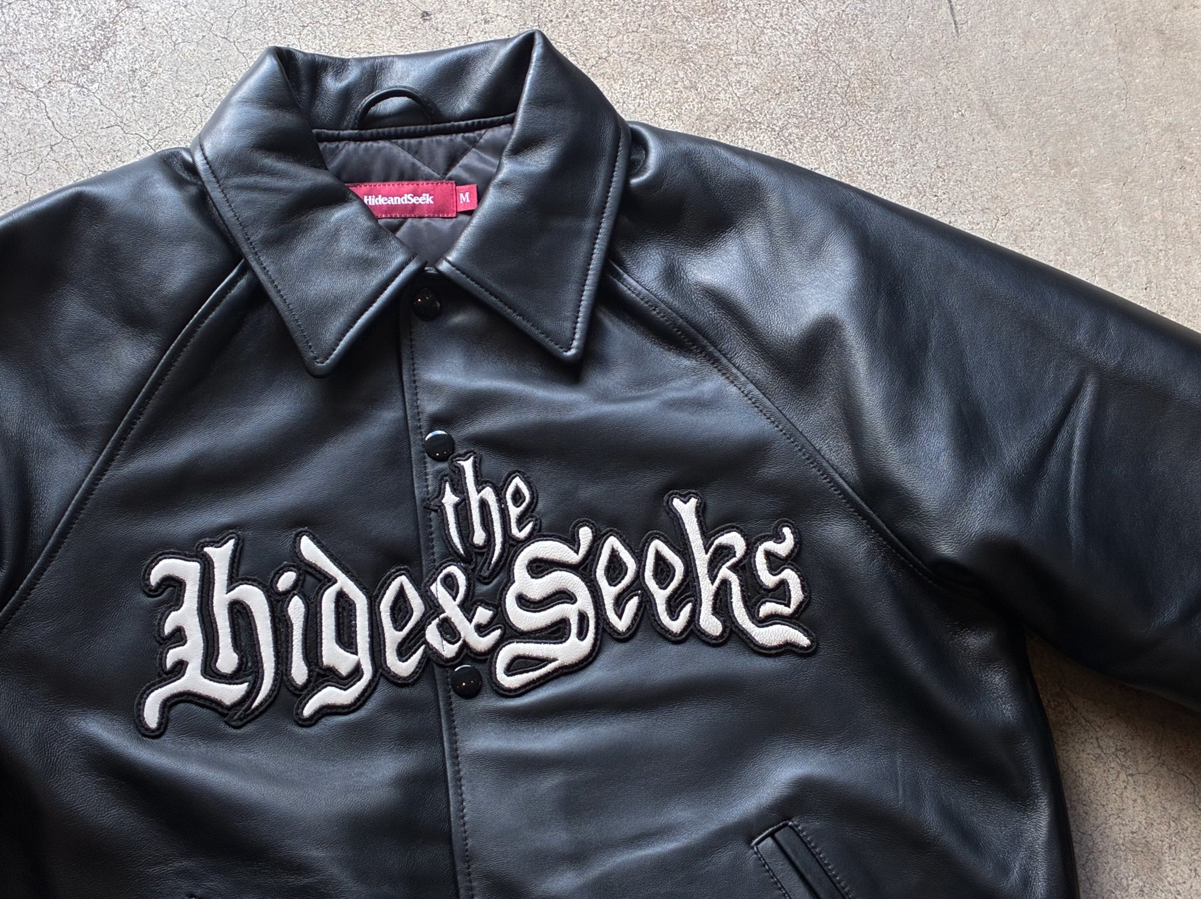 【HIDE AND SEEK】×【Toru Nishiura】Leather Varsity Jacket -BLACK/WHITE (ハイドアンドシーク)