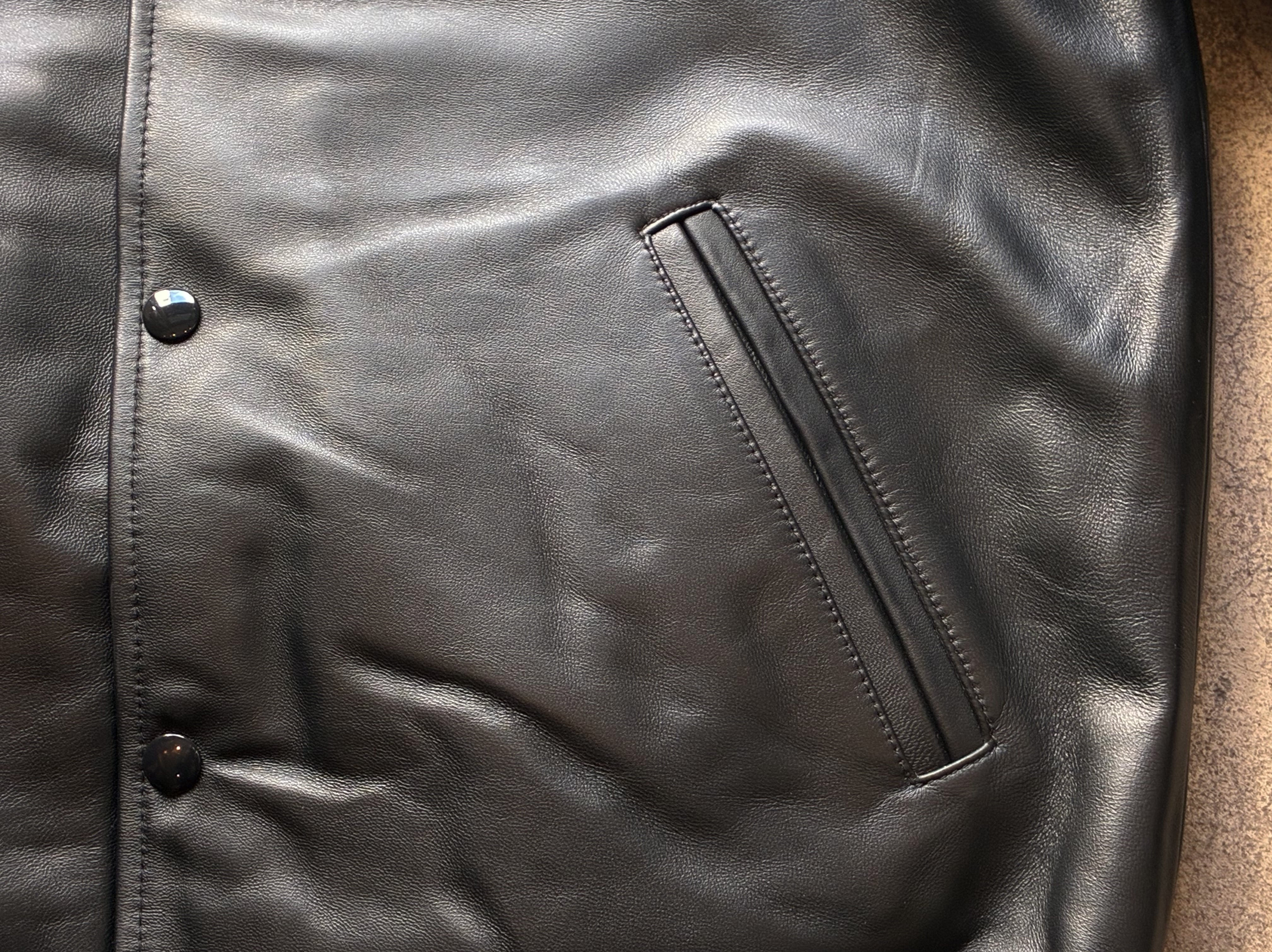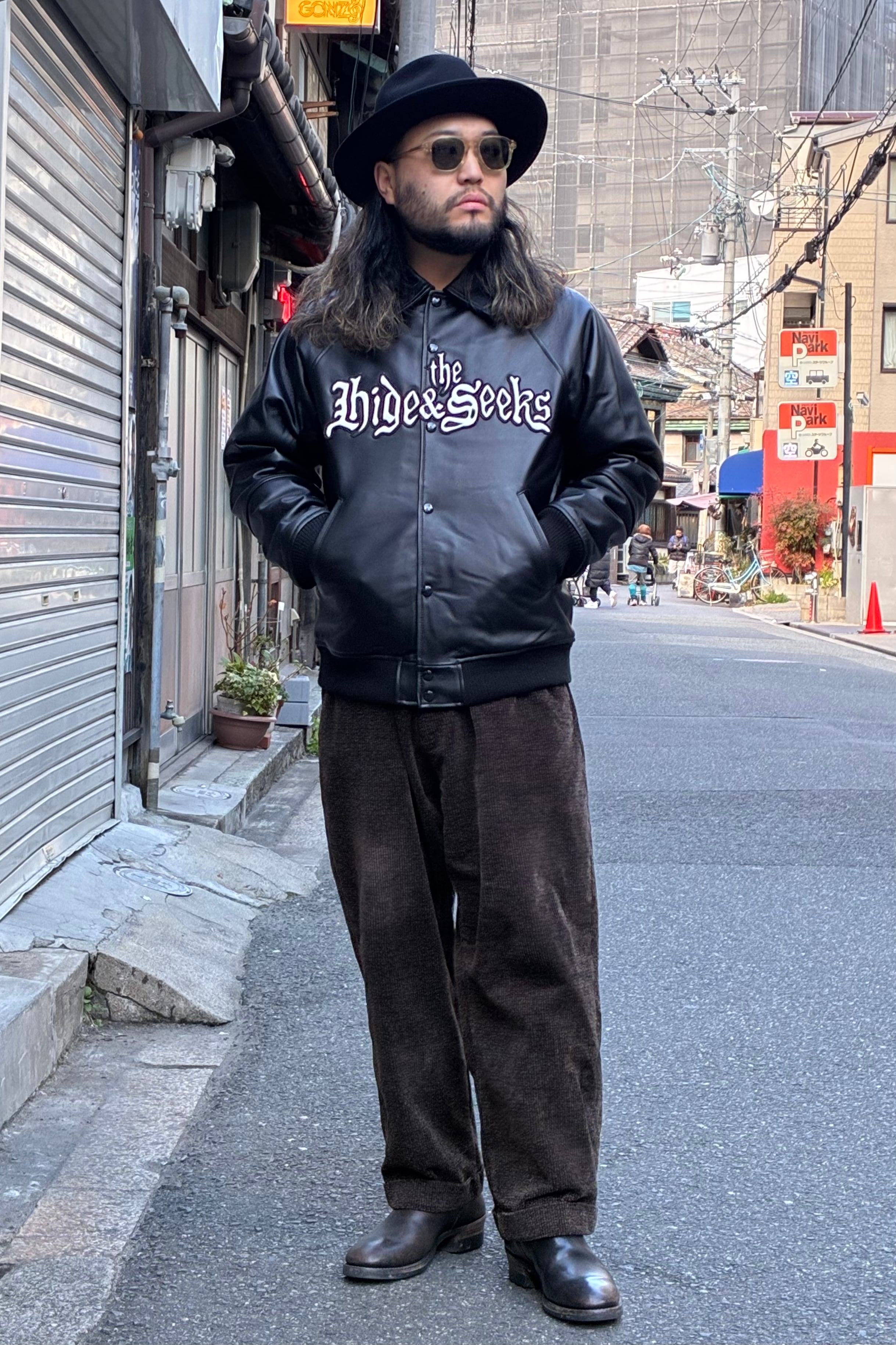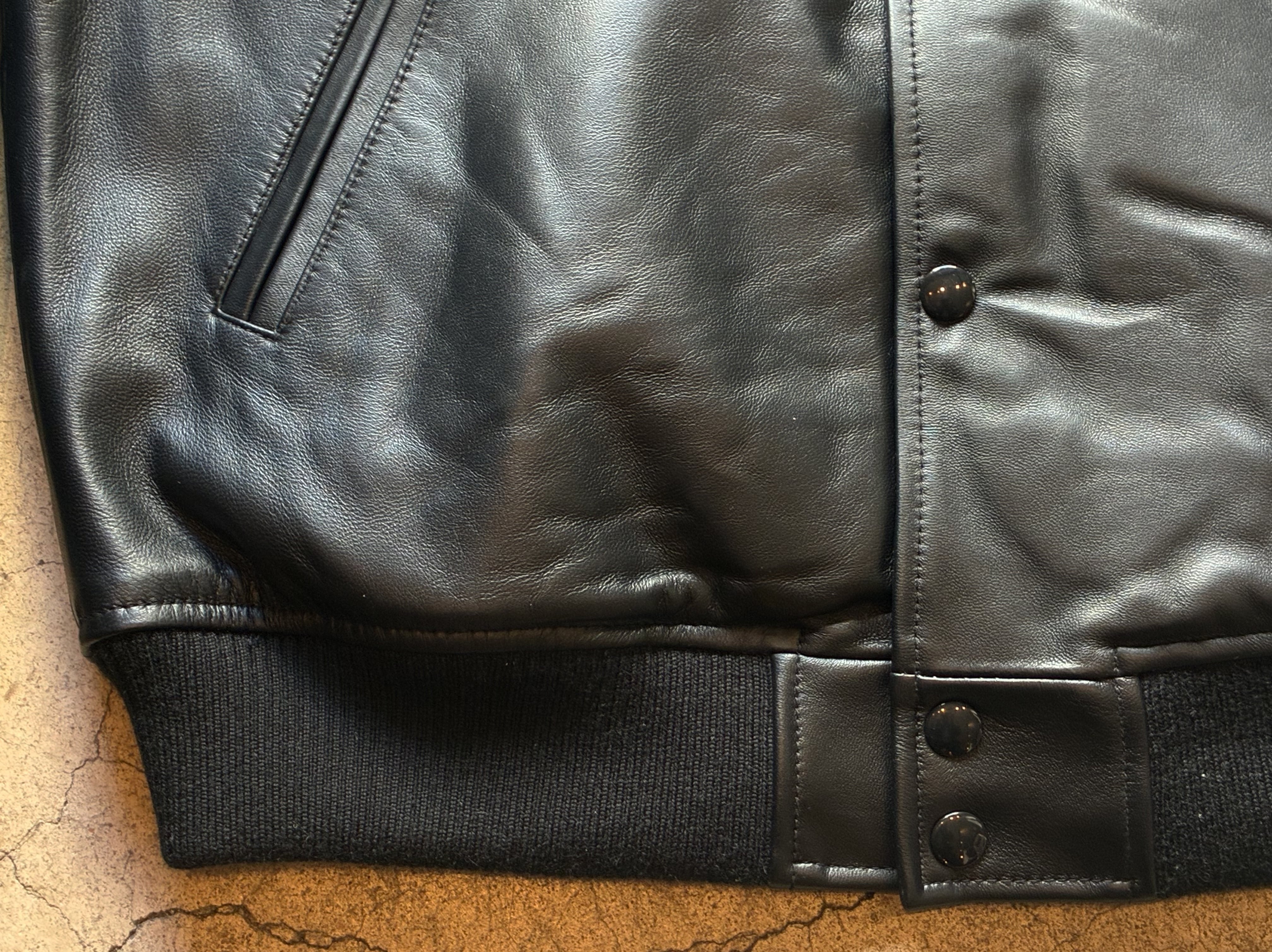 【HIDE AND SEEK】×【Toru Nishiura】Leather Varsity Jacket -BLACK/WHITE (ハイドアンドシーク)