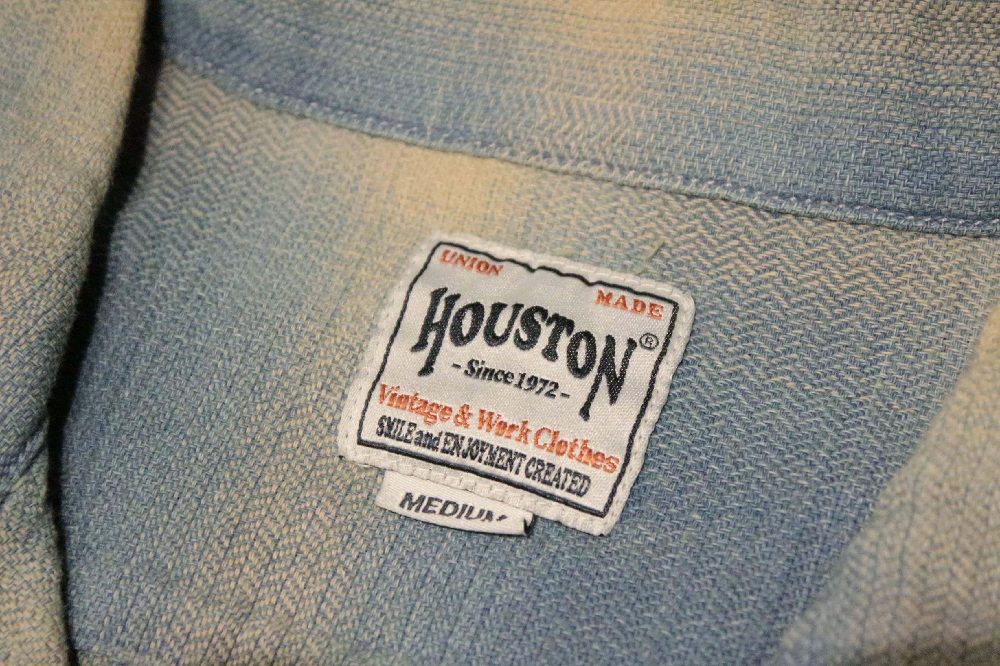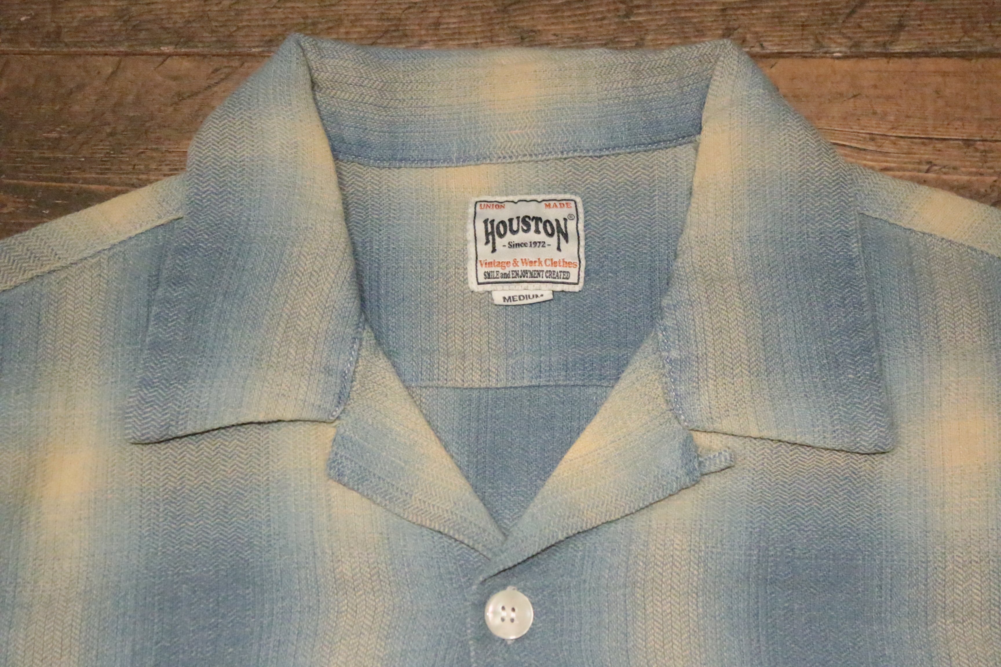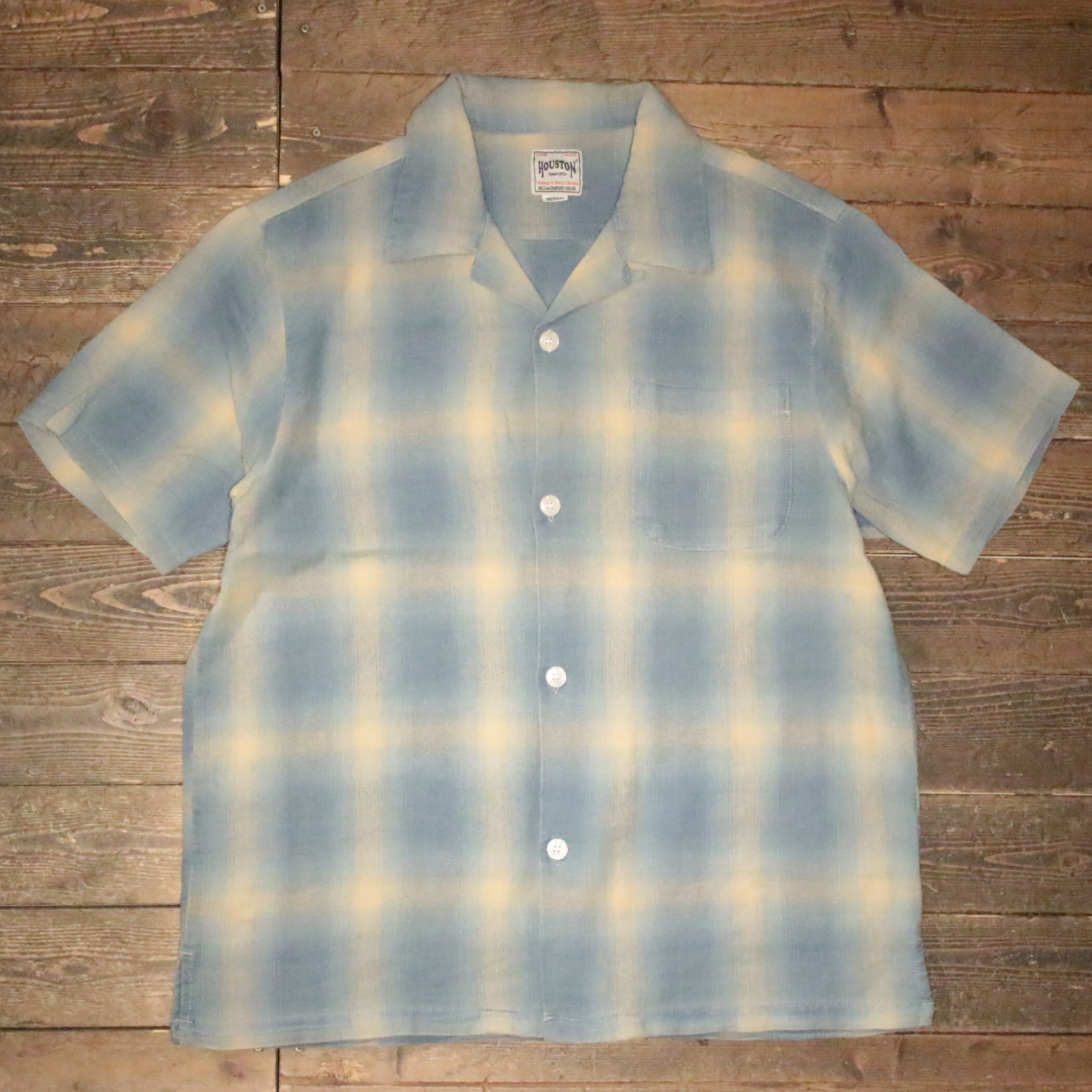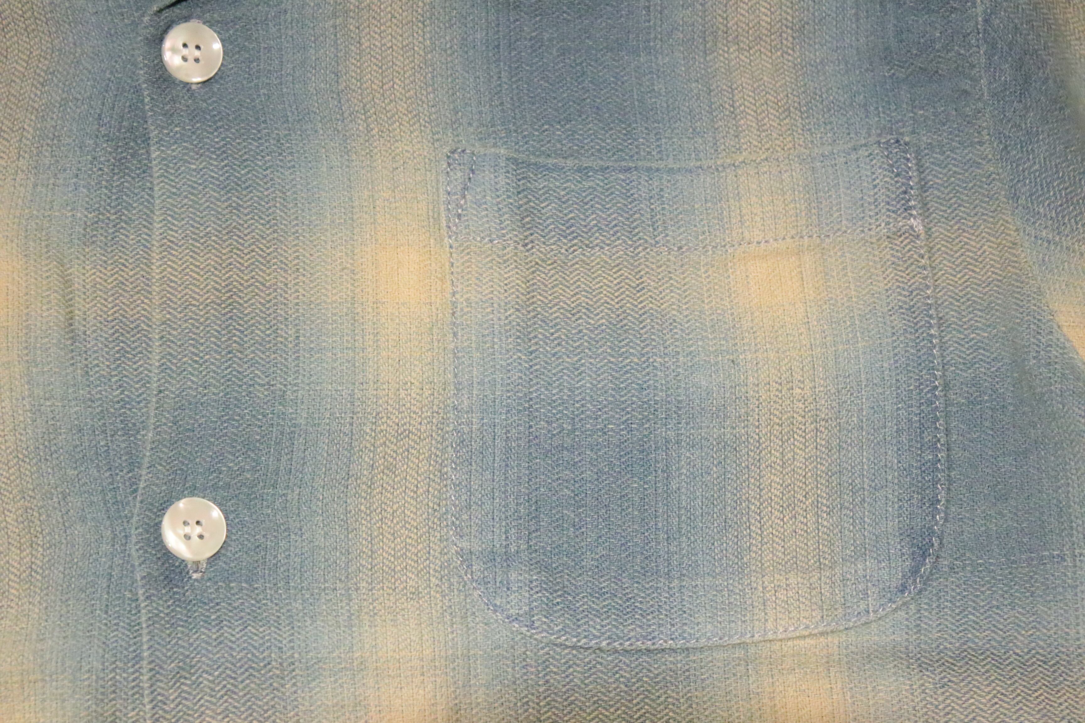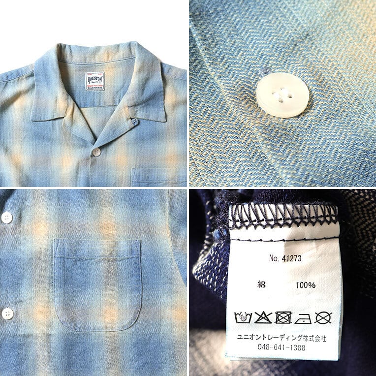 【HOUSTON】41273 INDIGO HB OMBRE CHECK S/S SHIRT -INDIGO BLEACH / ヒューストン インディゴ ヘリンボーン オンブレーチェック
