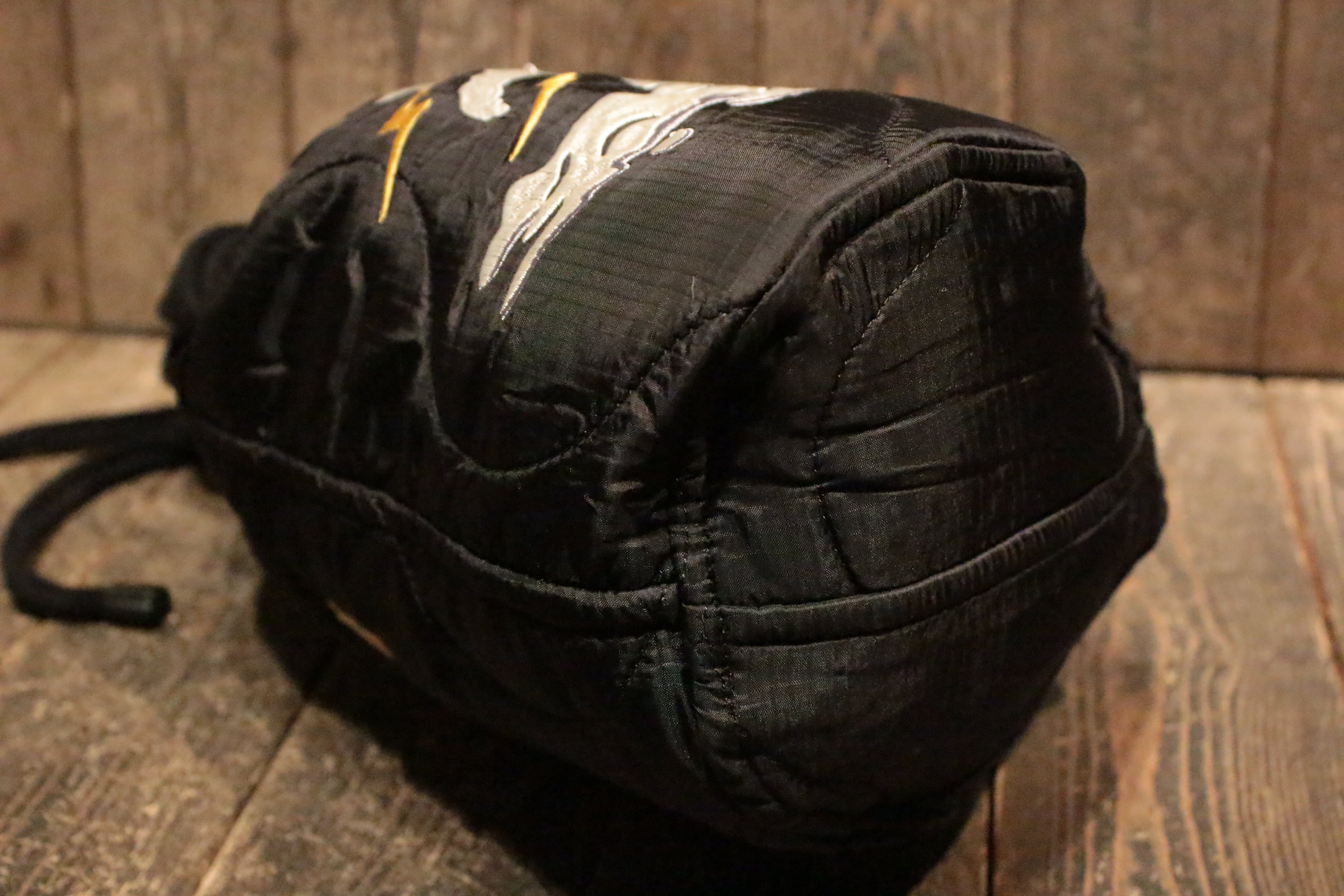 ひょうたんキルトを施したナイロンリップを使用した、刺繍エフェクトバッグ。手提げ、肩掛けも可能な2WAY仕様で、ちょっとした荷物を入れるのに最適なサイズです。ボリューム感がある可愛い見た目となっています。ヴィンテージベトジャンの柄をイメージした、インパクトある虎・福柄を採用。