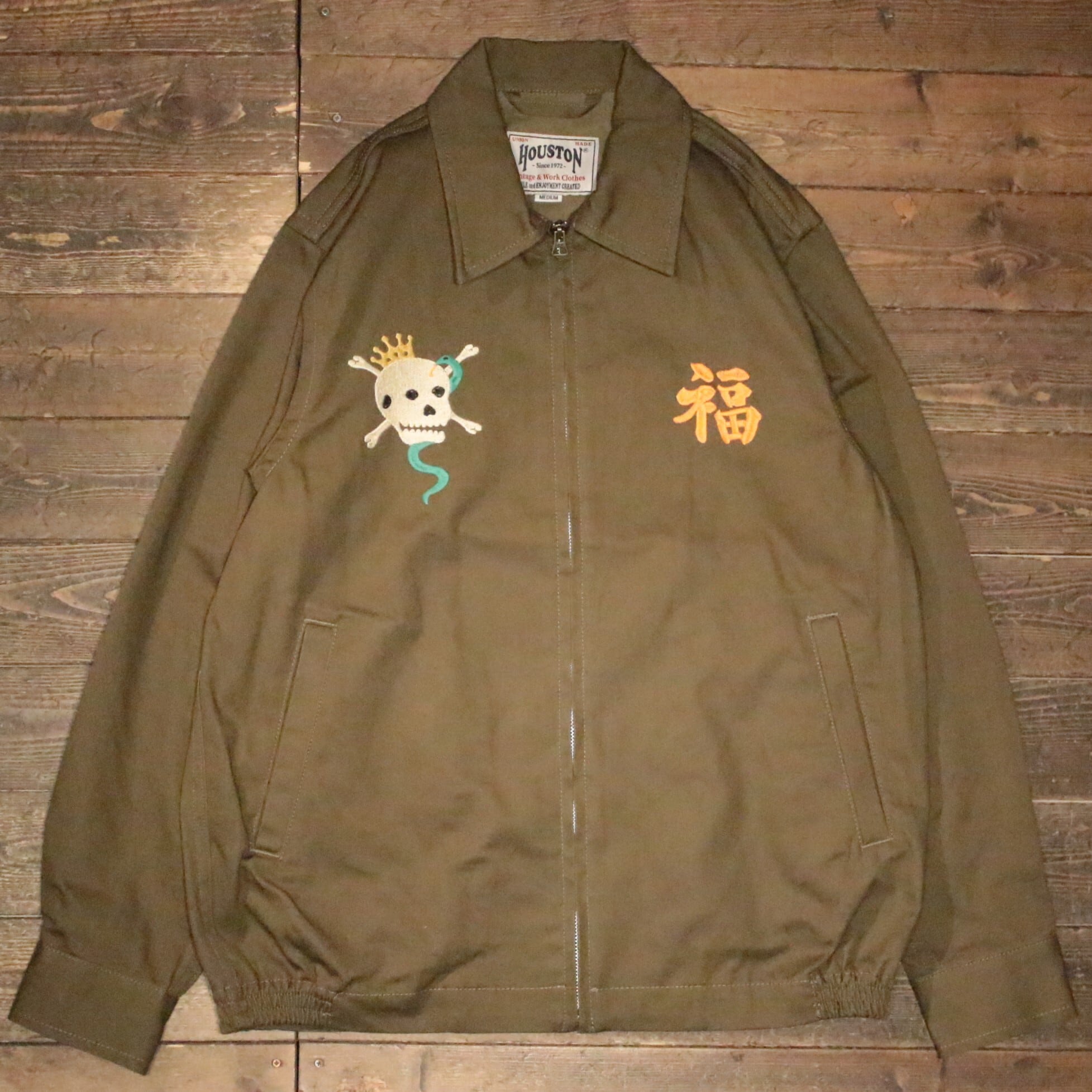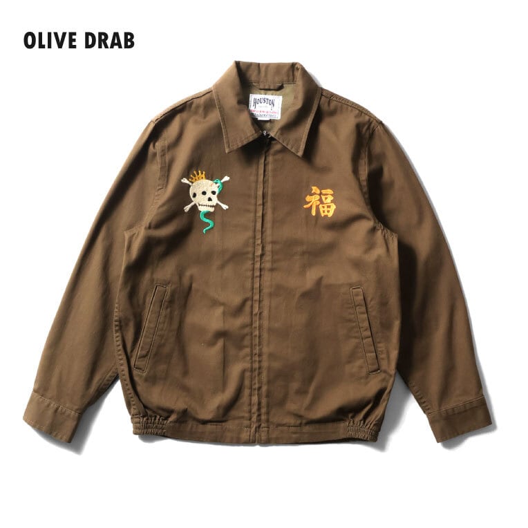 【HOUSTON】51577 VIETNAM JACKET (SKULL) OLIVE DRAB / スーベニアジャケット 越南ジャケット ヒューストン スーベニア ジャケット ミリタリー アウター スカジャン MILITARY