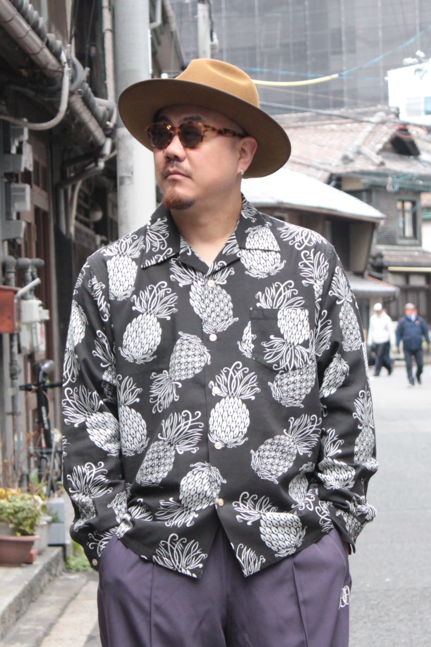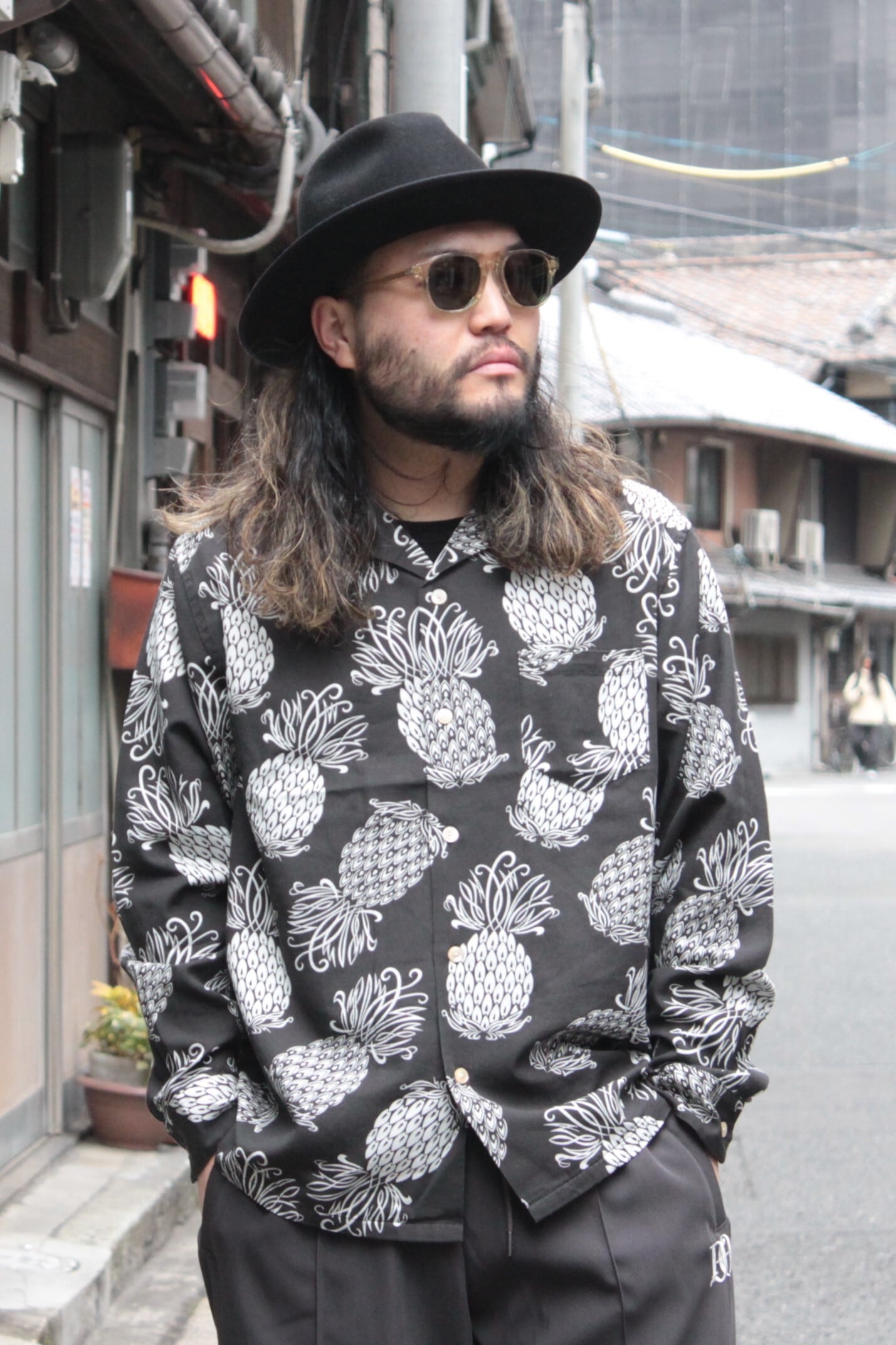 【DRESS HIPPY】"PINEAPPLE L/S SHIRT" S.BLACK (ドレスヒッピー) 正規取扱店(Official Dealer) Cannon Ball (キャノンボール)