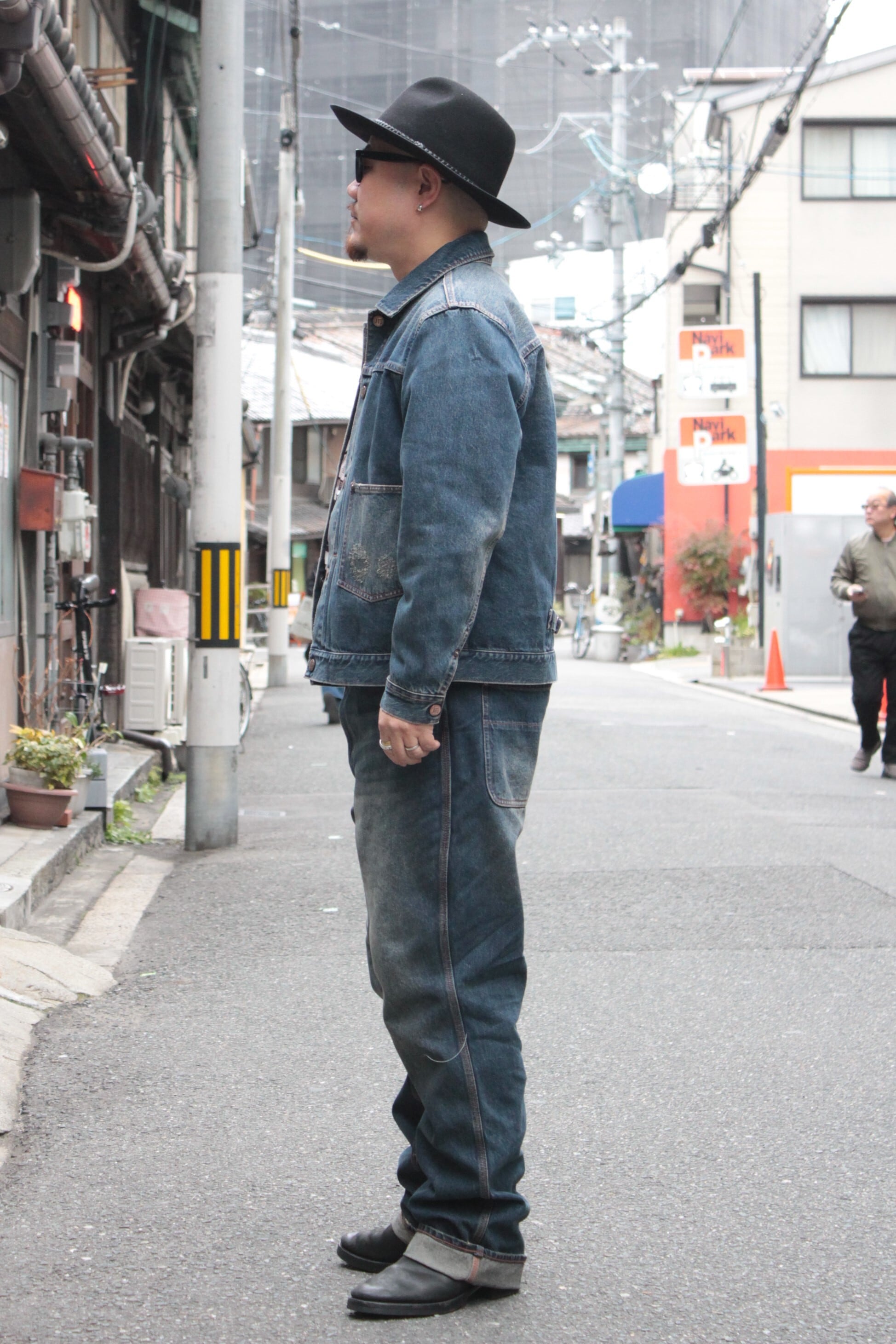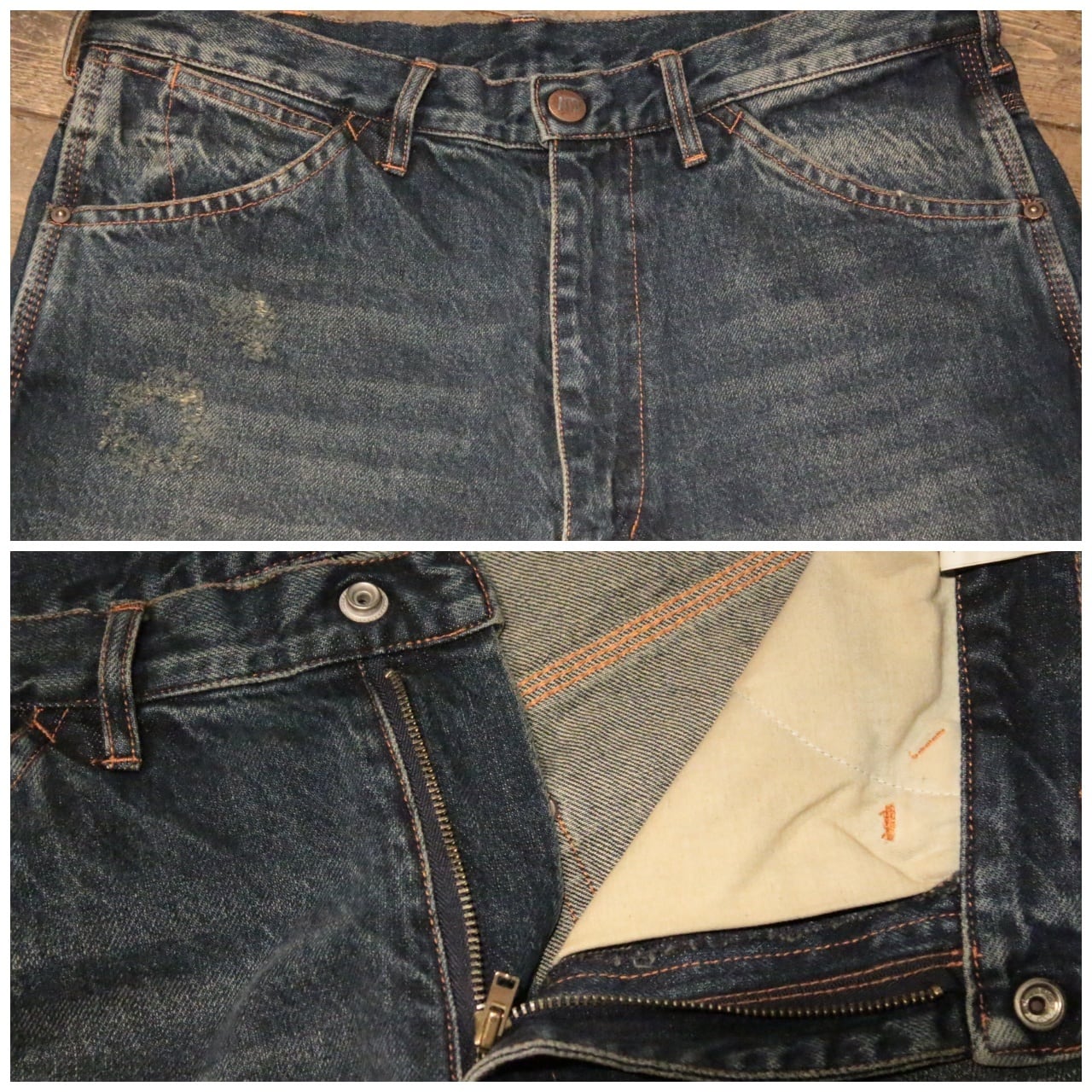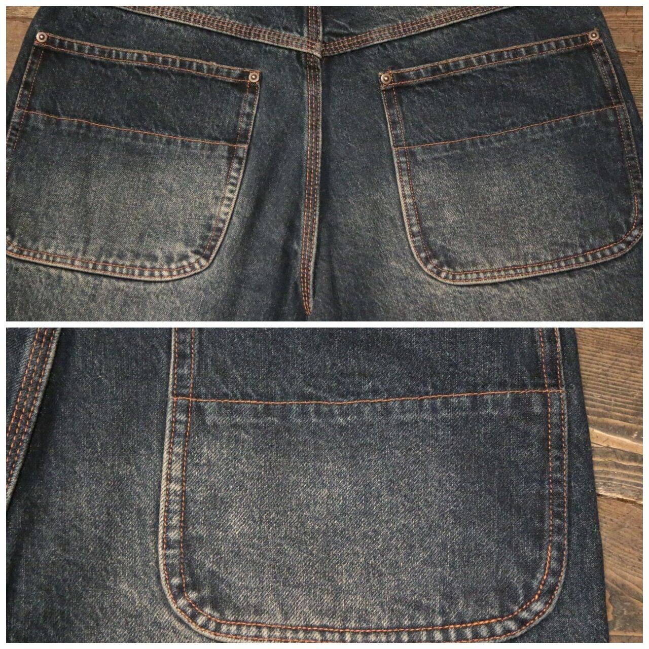 1950年代のストアブランドをデザインソースに製作。ペインターパンツを基に製作したパターンから本来のツールポケット、ハンマーループを取っ払った5ポケットパンツ。フロントのATDスナップボタン、オレンジステッチ、UFOリベット等、古き良きクラシックスタイルのワークパンツ(オリジナルスナップボタン使用)