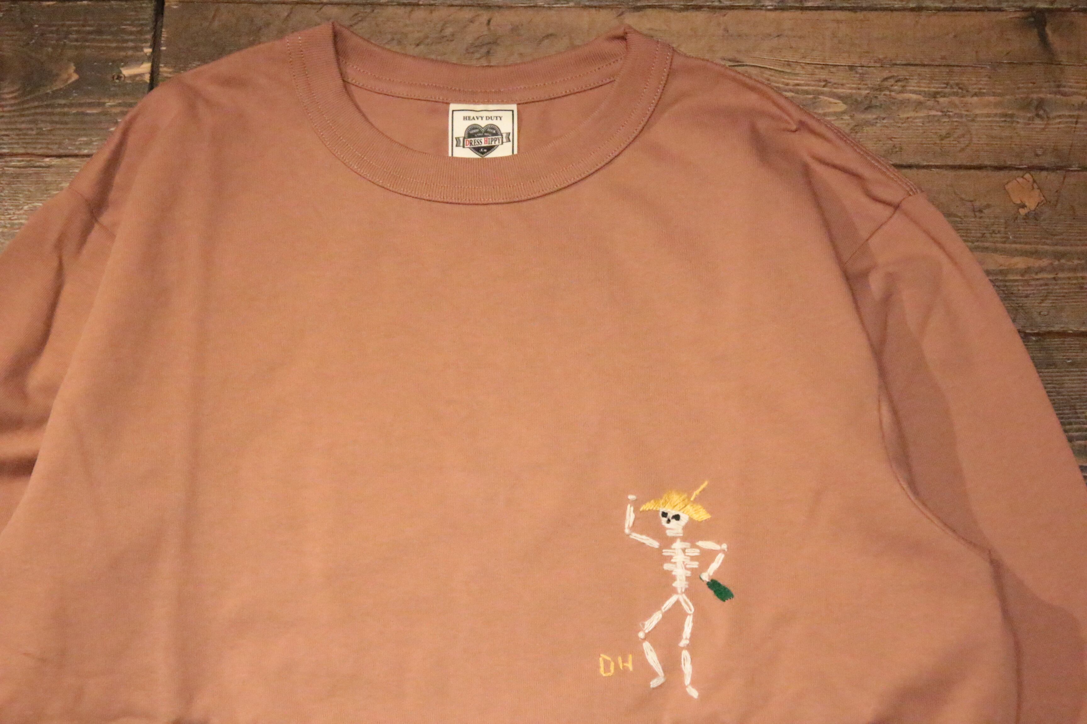 【DRESS HIPPY】"DH-HEAVY L/S TEE hand-embroidered skull" BROWN (ドレスヒッピー) 正規取扱店(Official Dealer) Cannon Ball (キャノンボール)