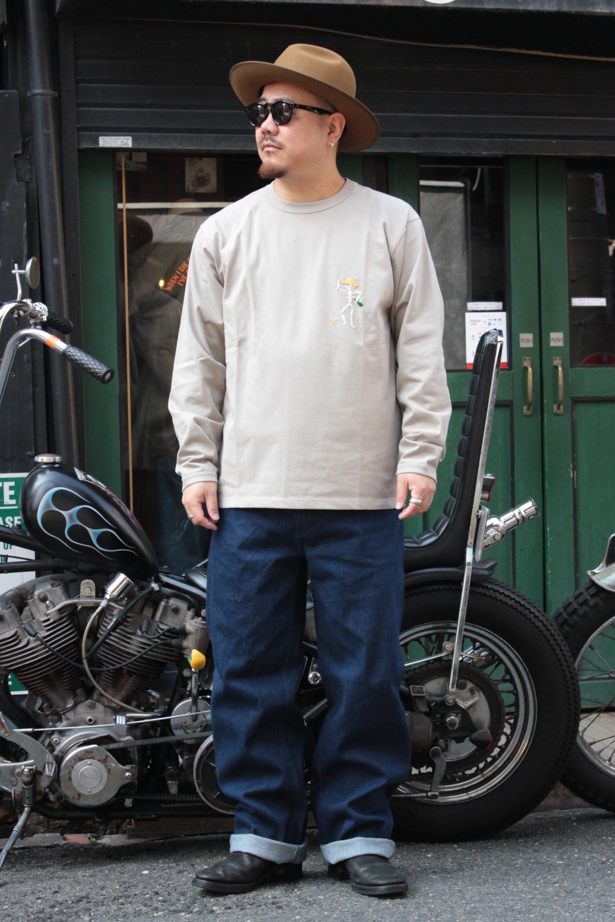 【DRESS HIPPY】"DH-HEAVY L/S TEE hand-embroidered skull" GRAY (ドレスヒッピー) 正規取扱店(Official Dealer) Cannon Ball (キャノンボール)