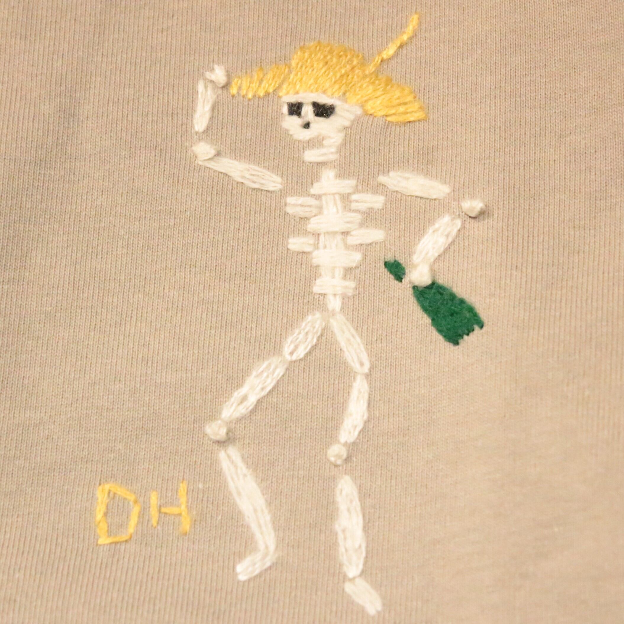 職人によるハンド刺繍で仕上げられたスカルが存在感を放つカットソー。 バックの首元にはDRESS HIPPYのワンポイントプリント。9オンスの厚手の コットン素材を使用し、重厚感とやわらかな着心地。細部までこだわったク ラフトマンシップを感じる一枚。