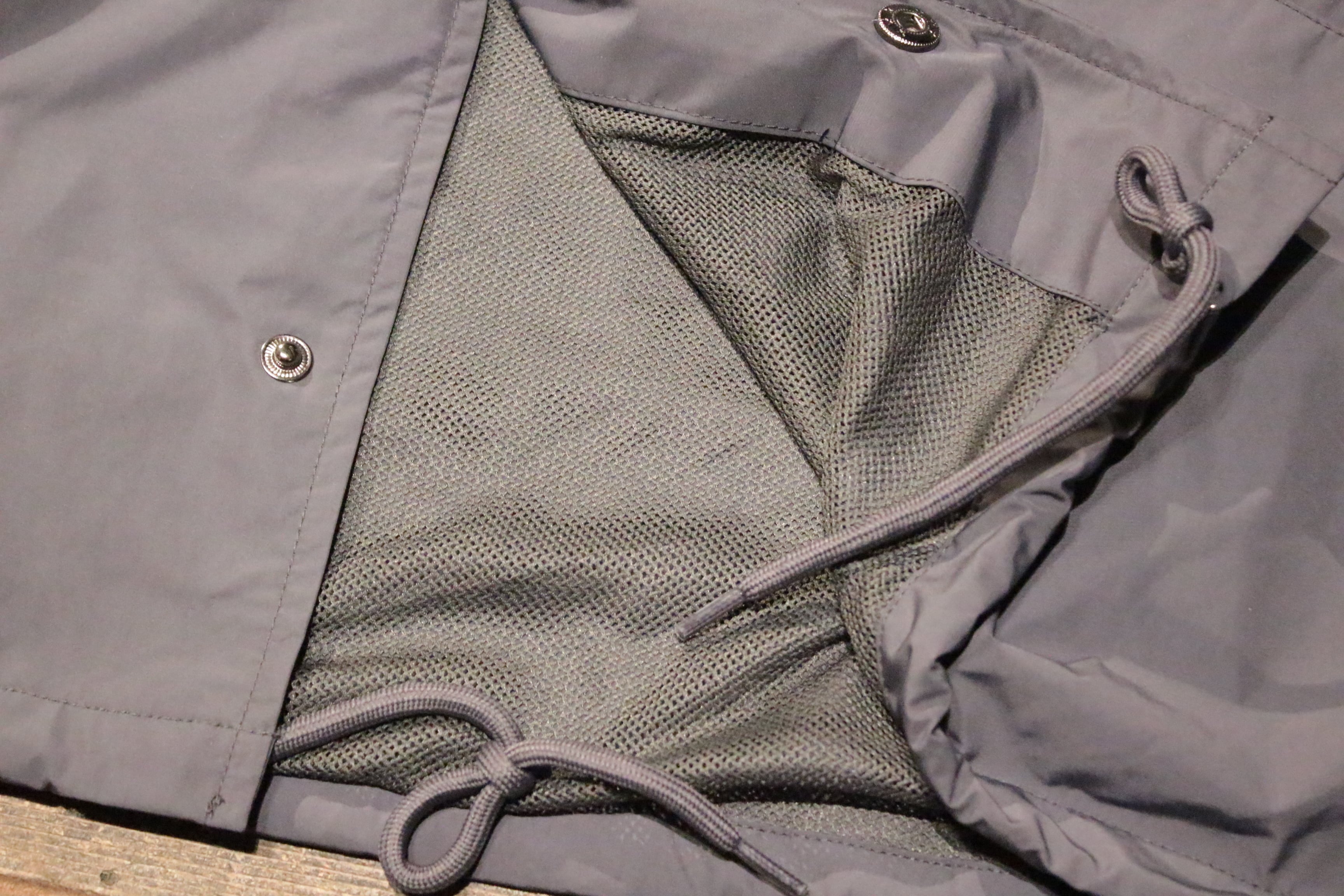 裏地にメッシュを使用したコーチジャケット。