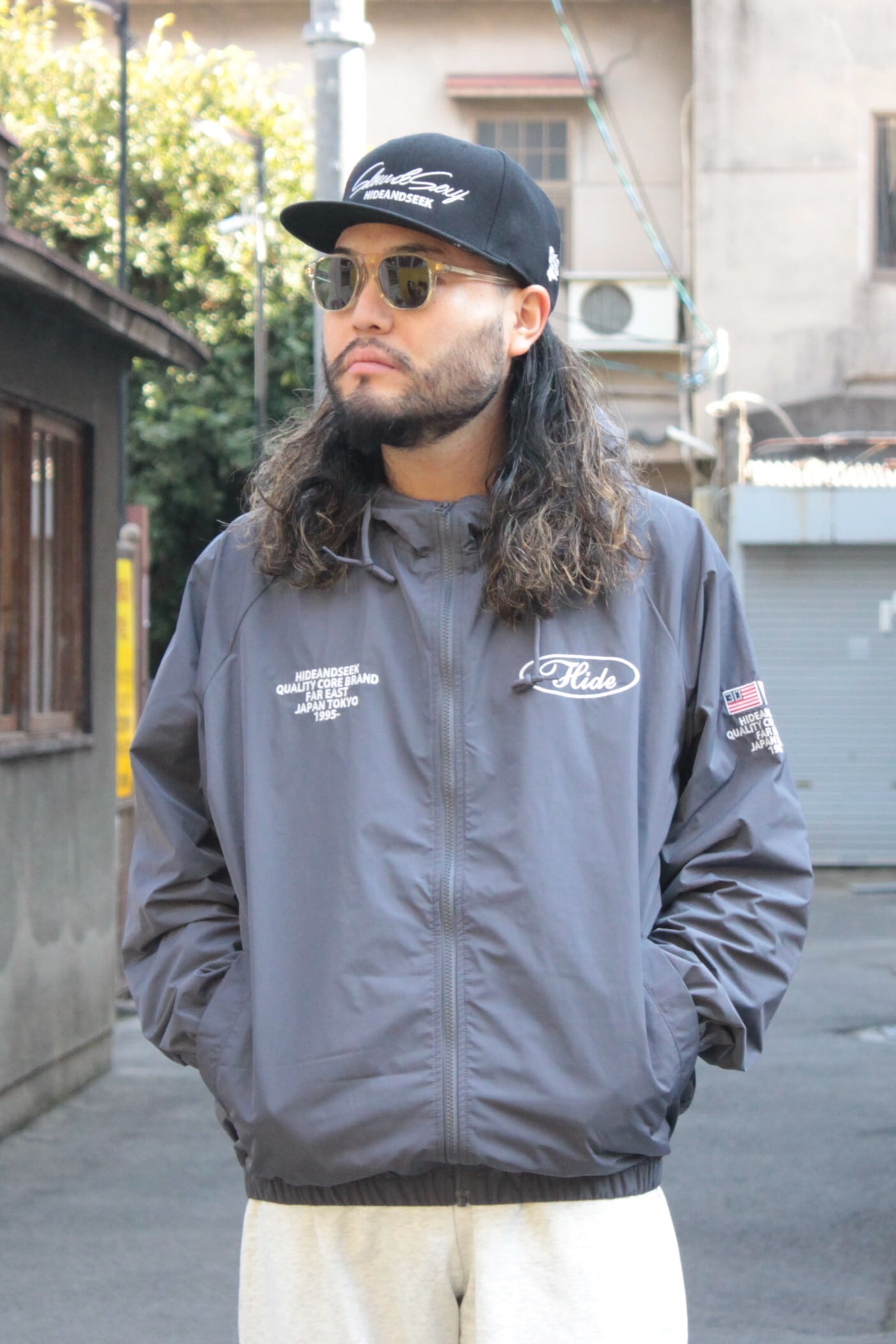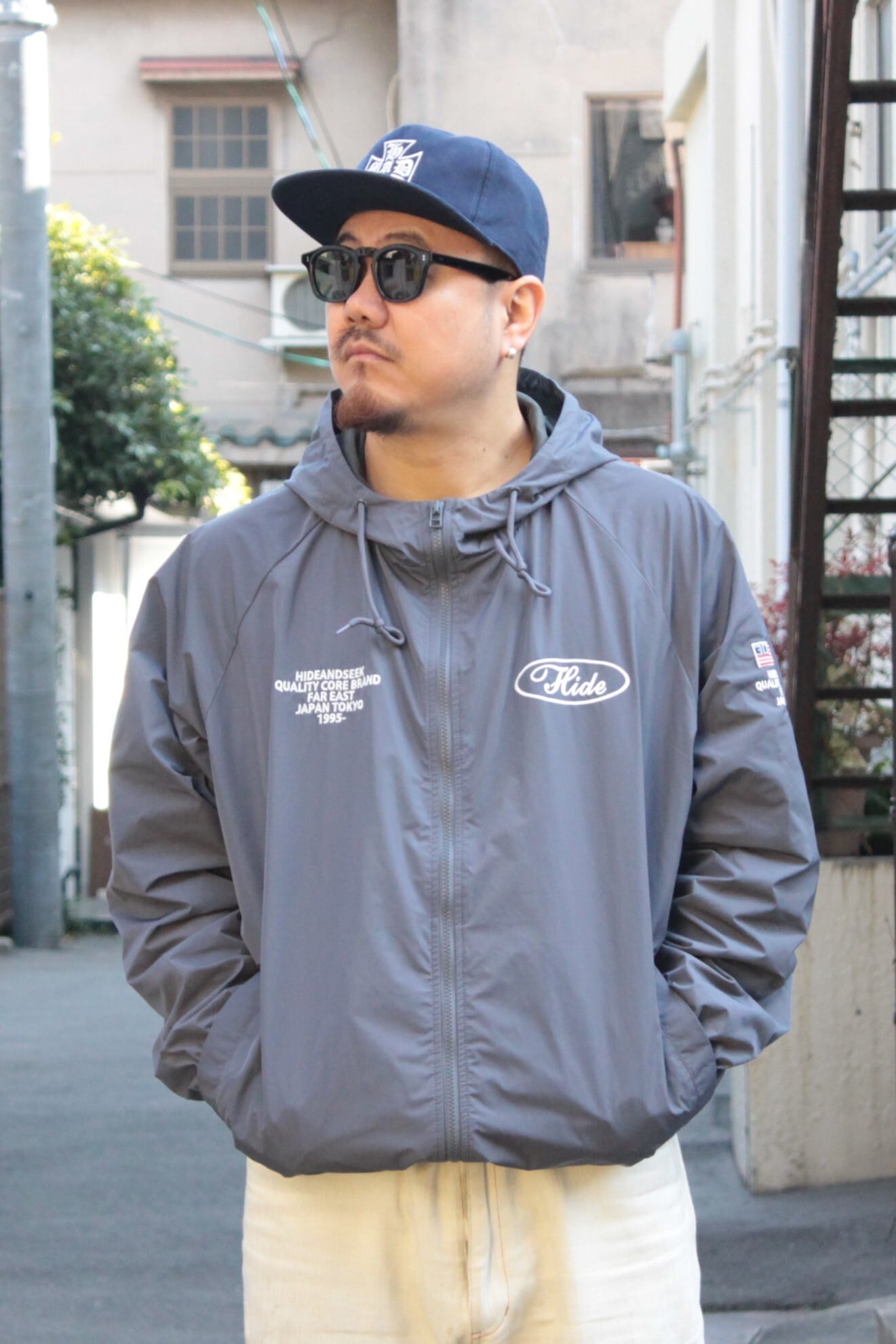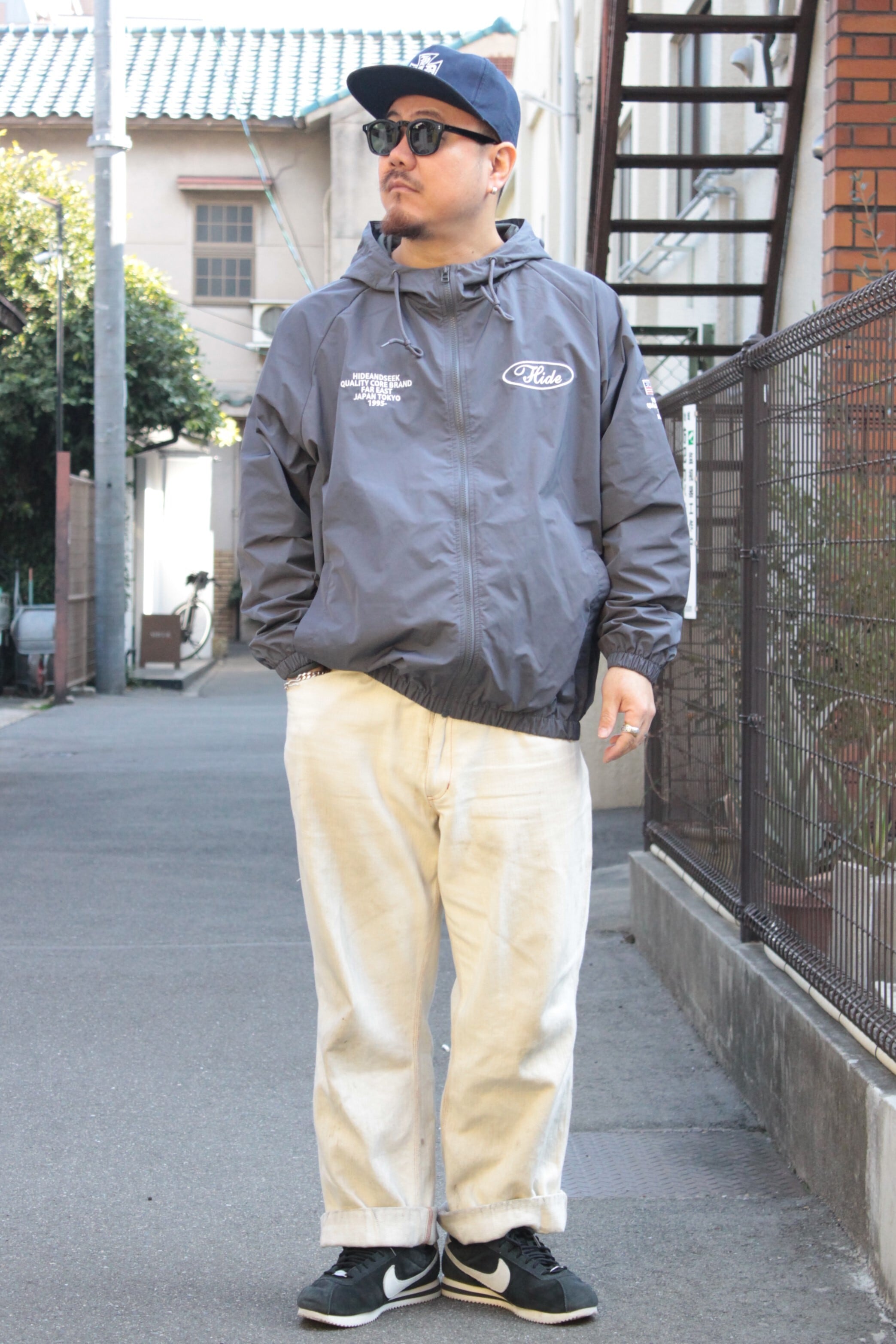 【HIDE AND SEEK】Nylon Zip Hooded Jacket(26ss) -C.GRAY (ハイドアンドシーク)