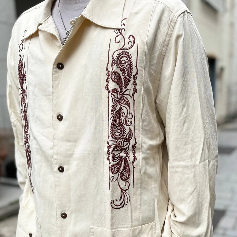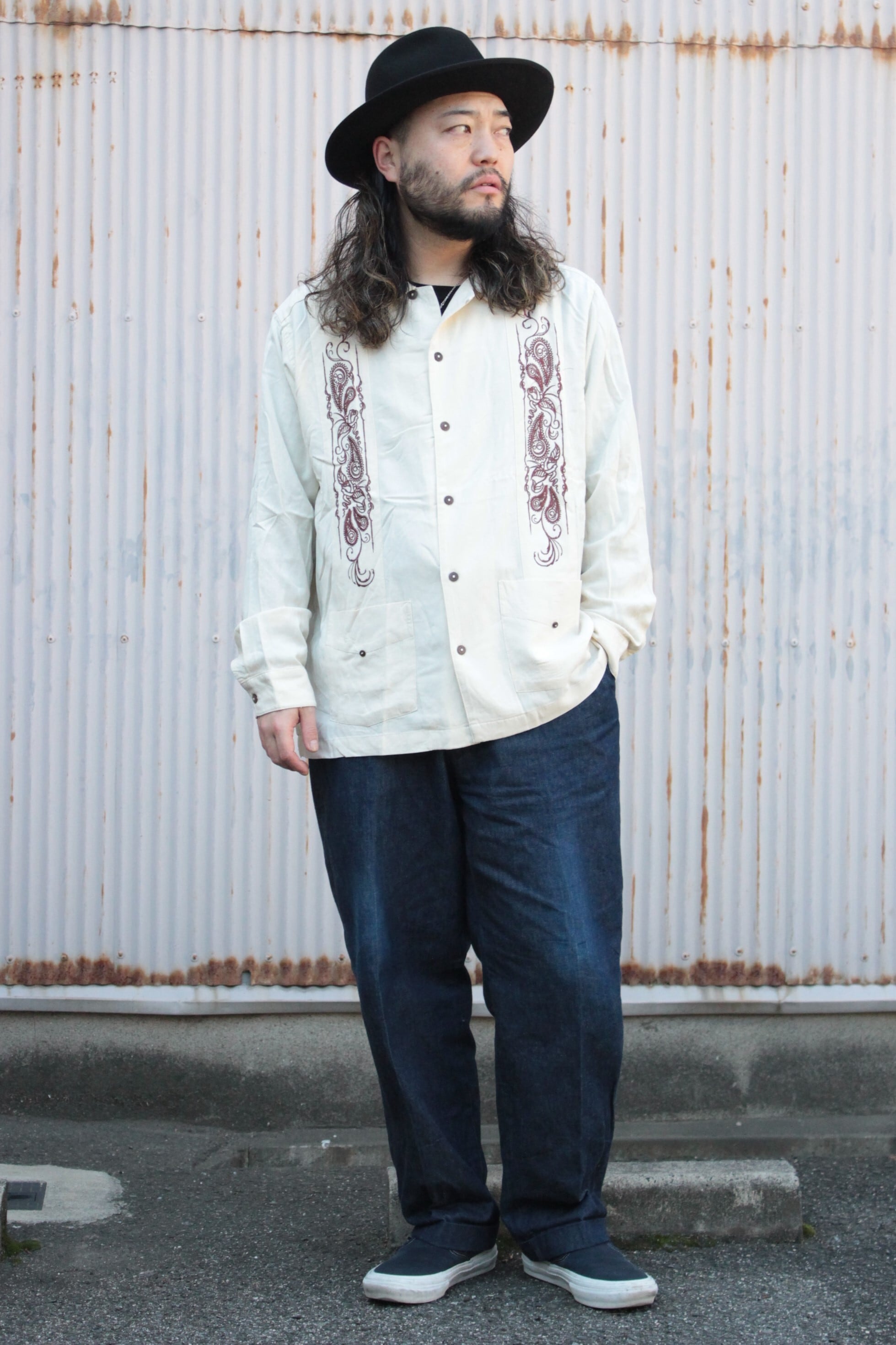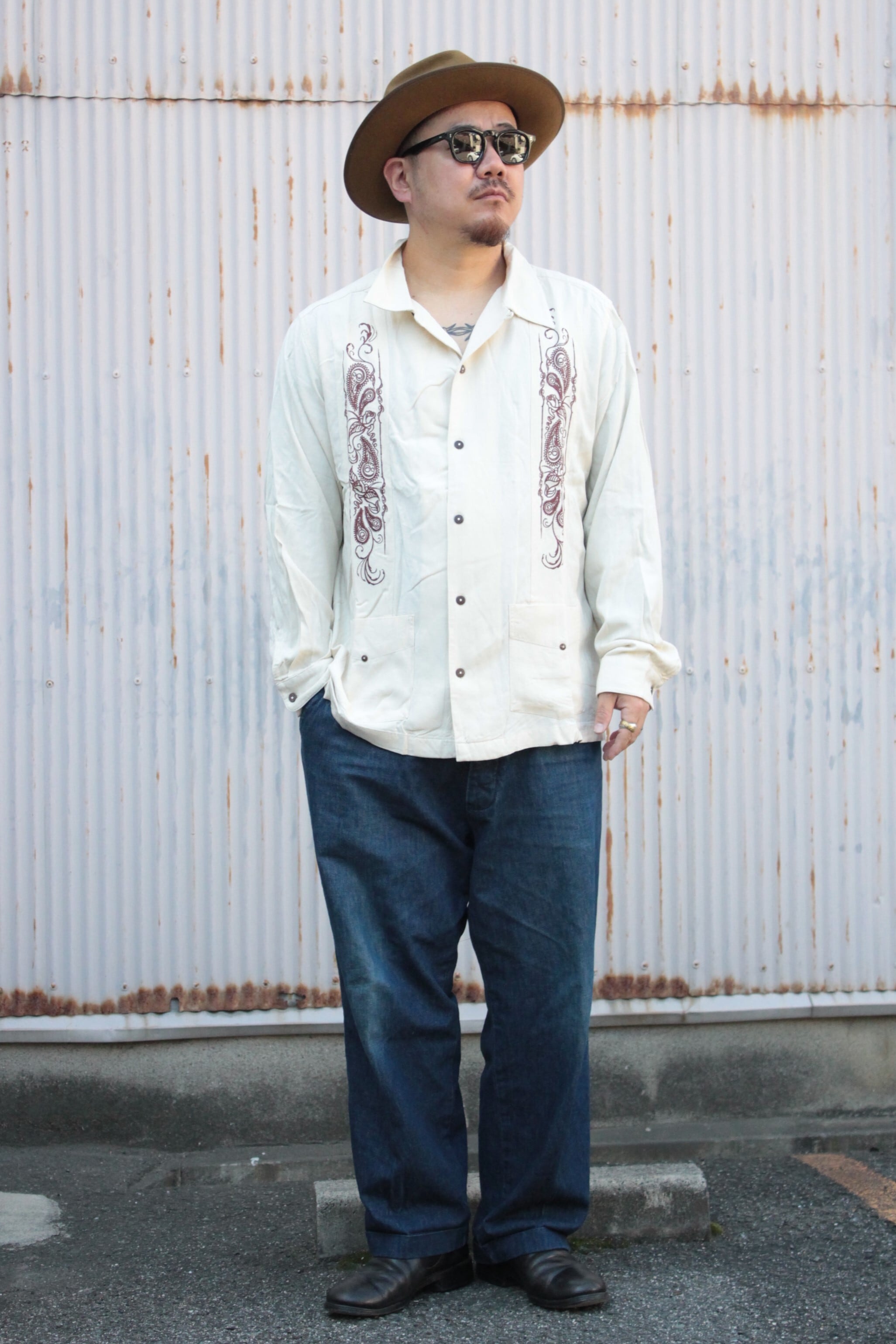 【KUSTOMSTYLE SO-CAL】-LONGROOF- GUAYABERA LONG SLEEVE SHIRTS -OFF WHITE (カスタムスタイルソーキャル) グァジャベーラシャツ キューバシャツ