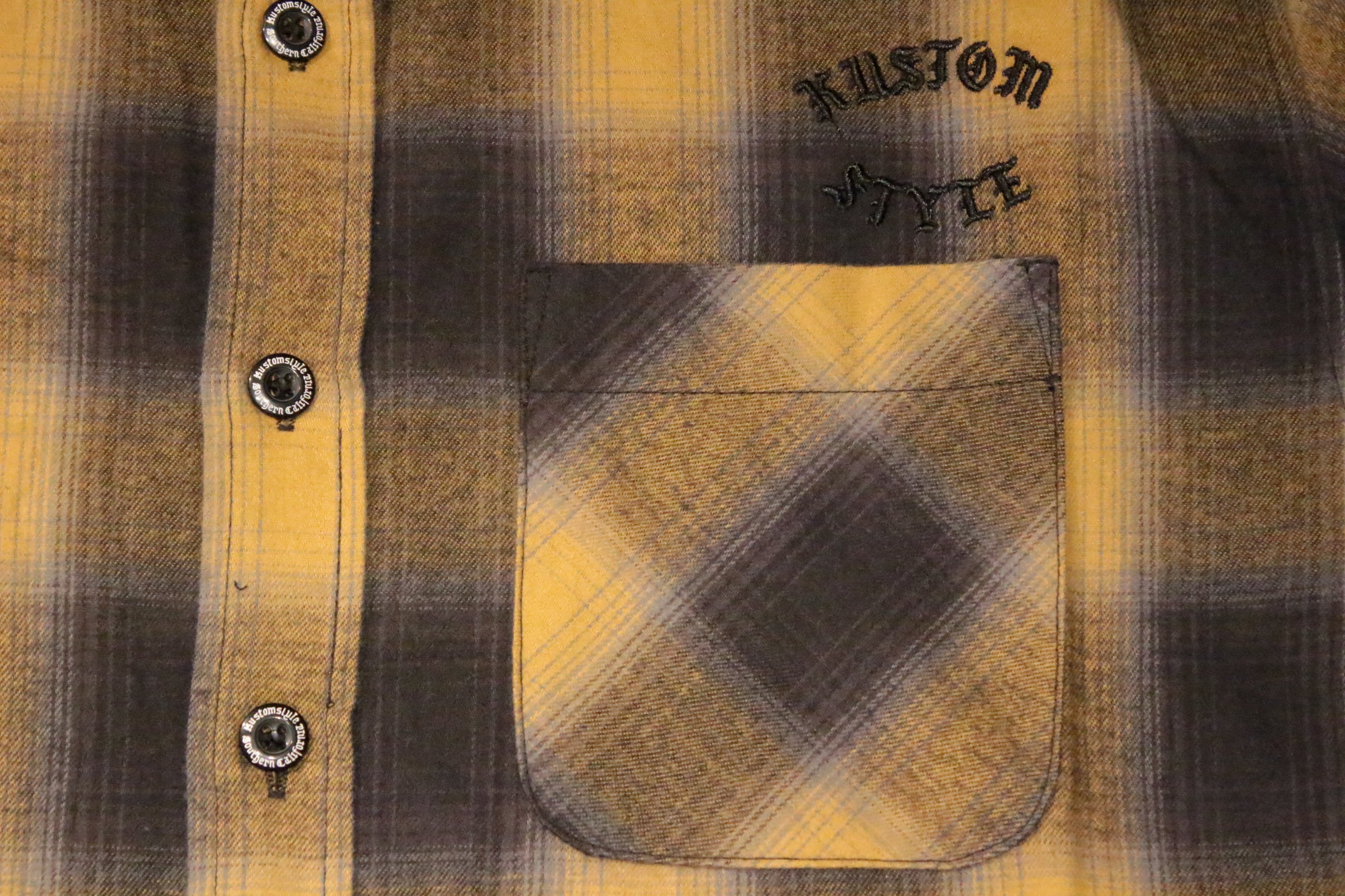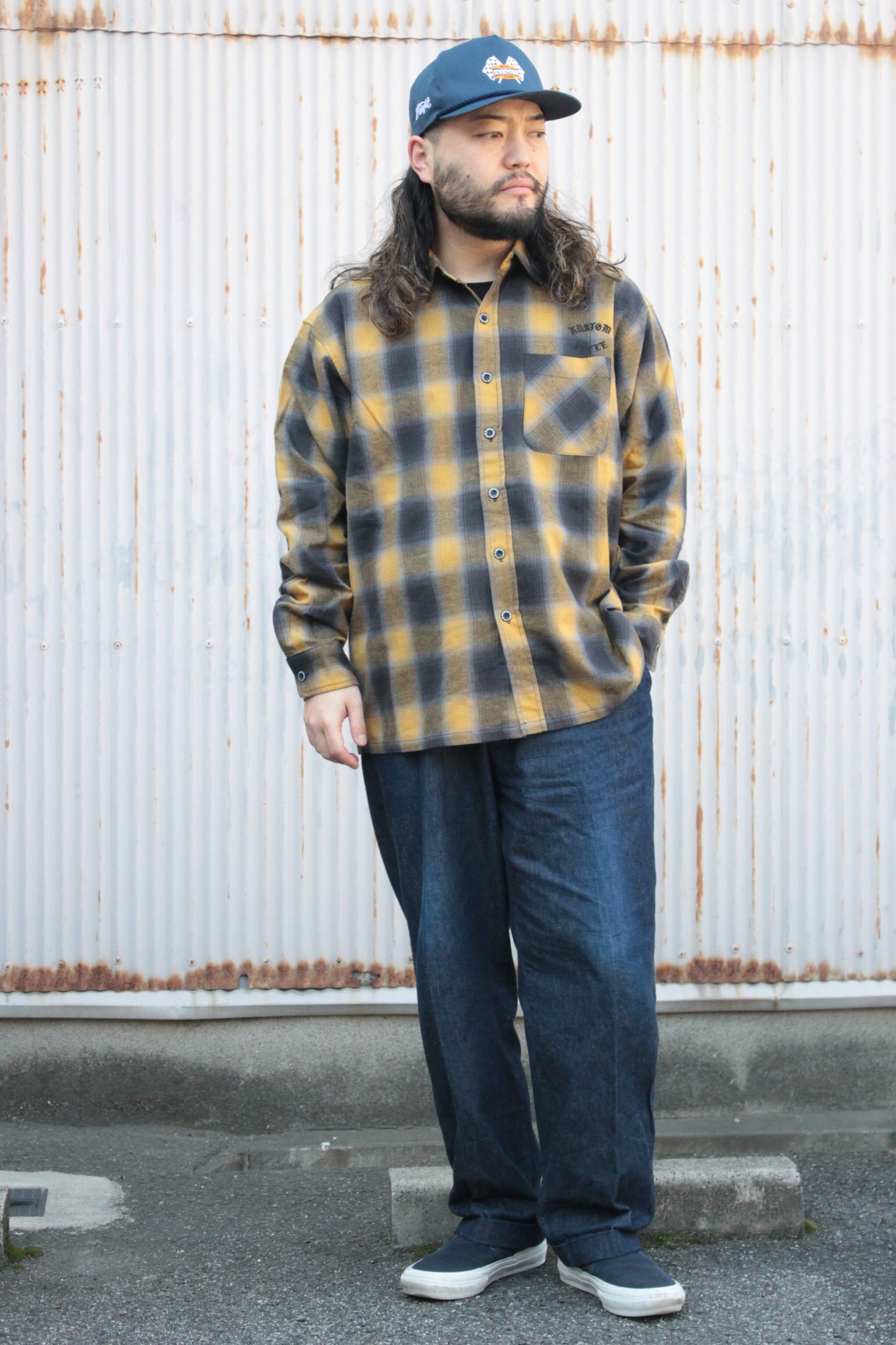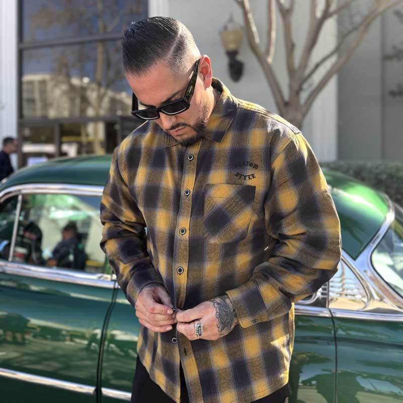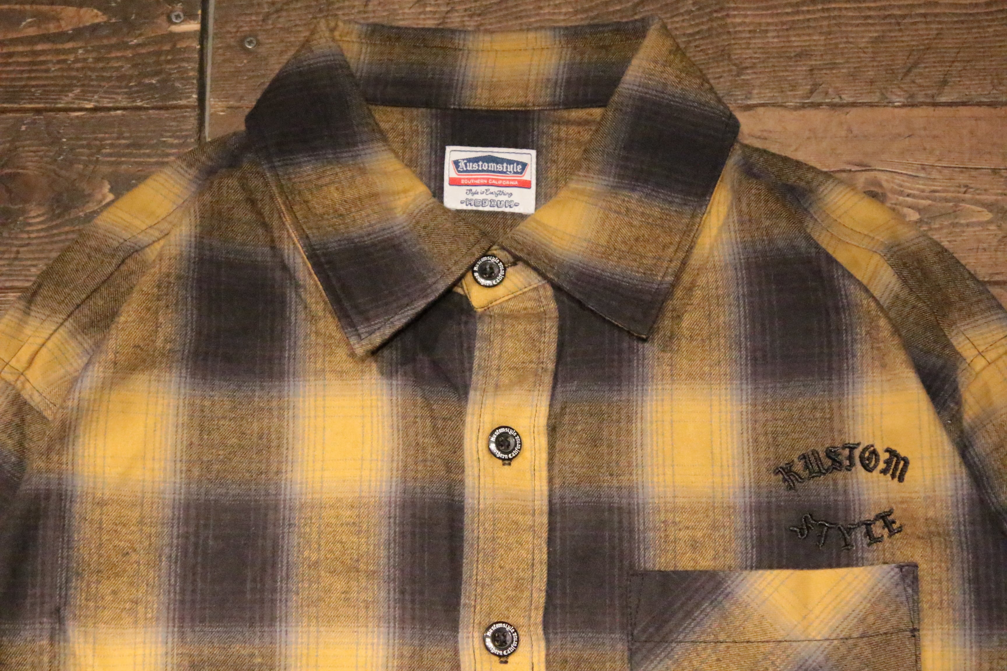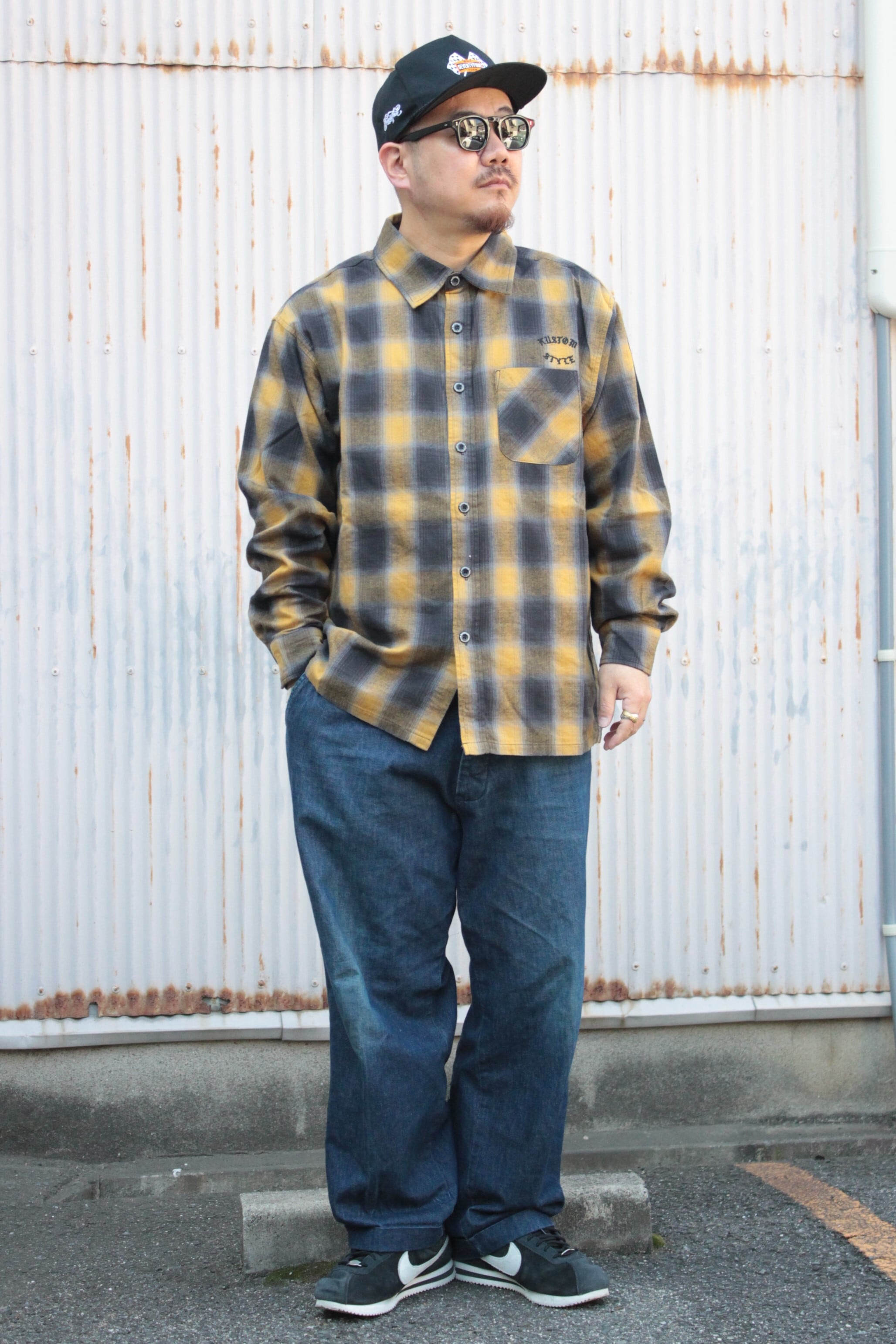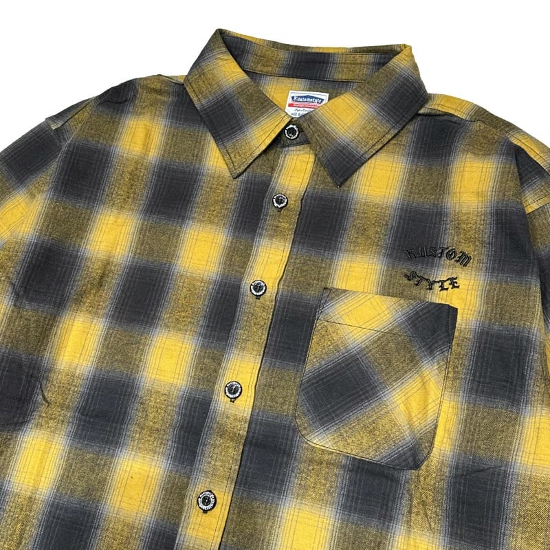 【KUSTOMSTYLE SO-CAL】-ROOTED IN THE STREETS- L/S CHECK SHIRTS -YELLOW (カスタムスタイルソーキャル)