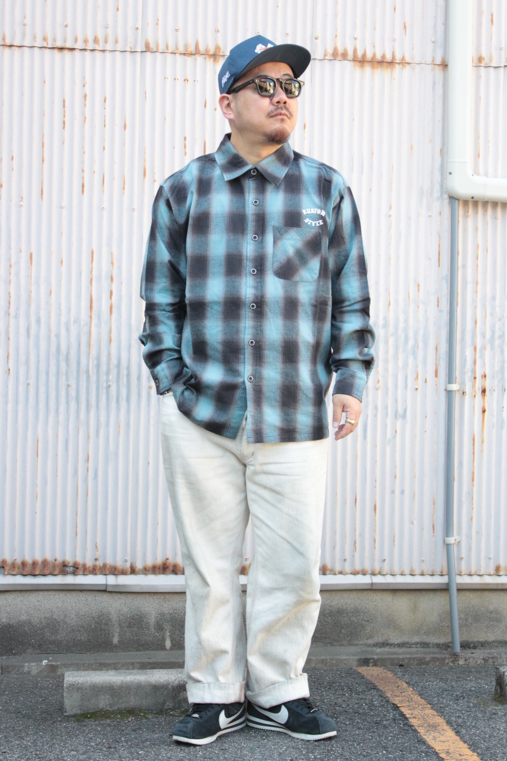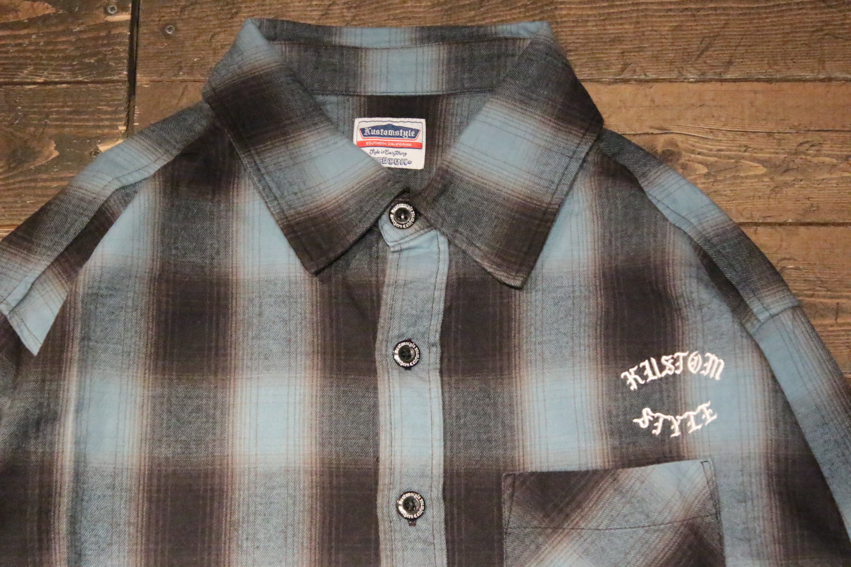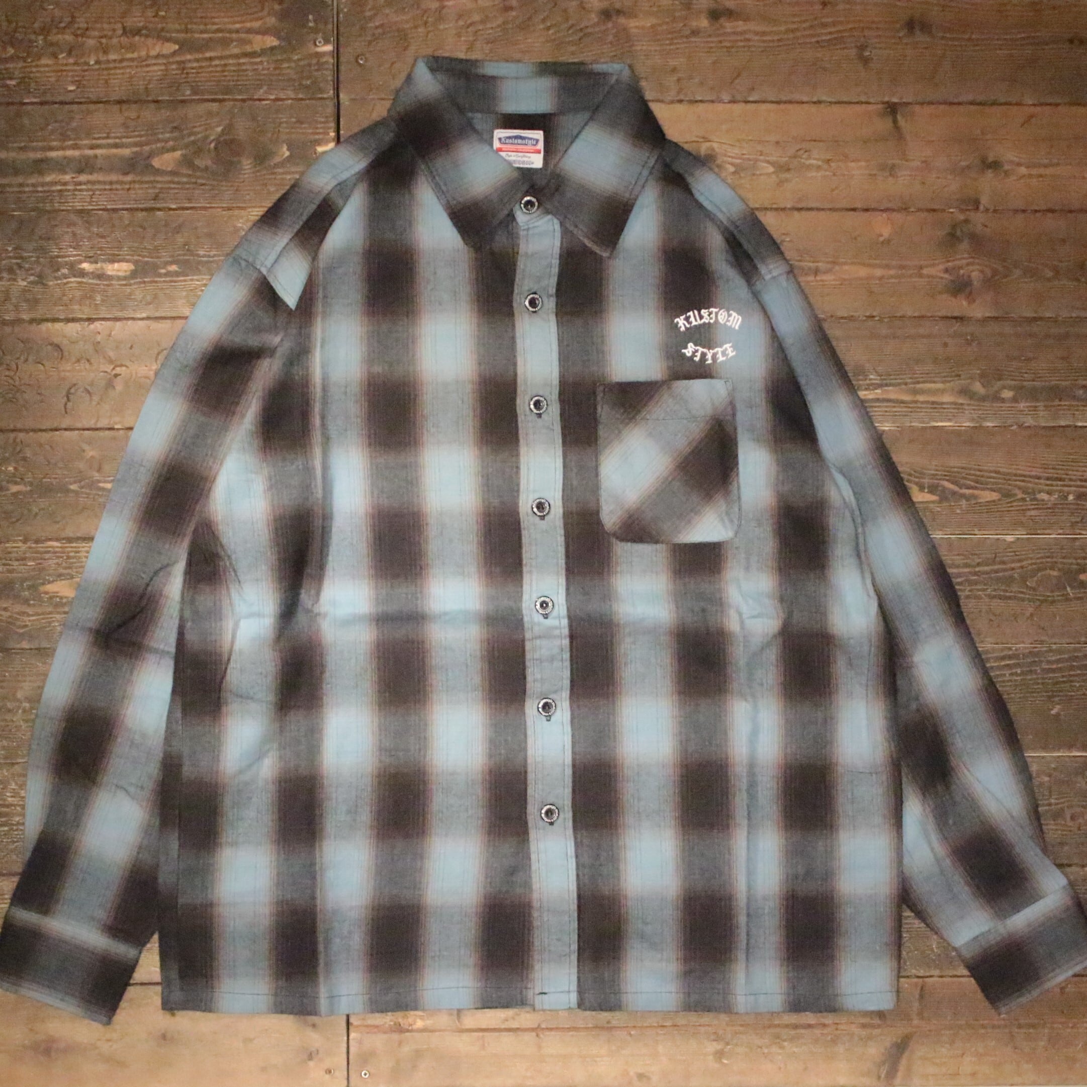 【KUSTOMSTYLE SO-CAL】-ROOTED IN THE STREETS- L/S CHECK SHIRTS -BLUE (カスタムスタイルソーキャル)