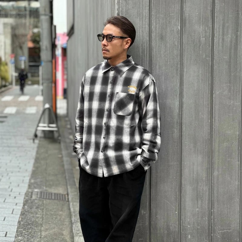 【KUSTOMSTYLE SO-CAL】-ROOTED IN THE STREETS- L/S CHECK SHIRTS -WHITE (カスタムスタイルソーキャル)