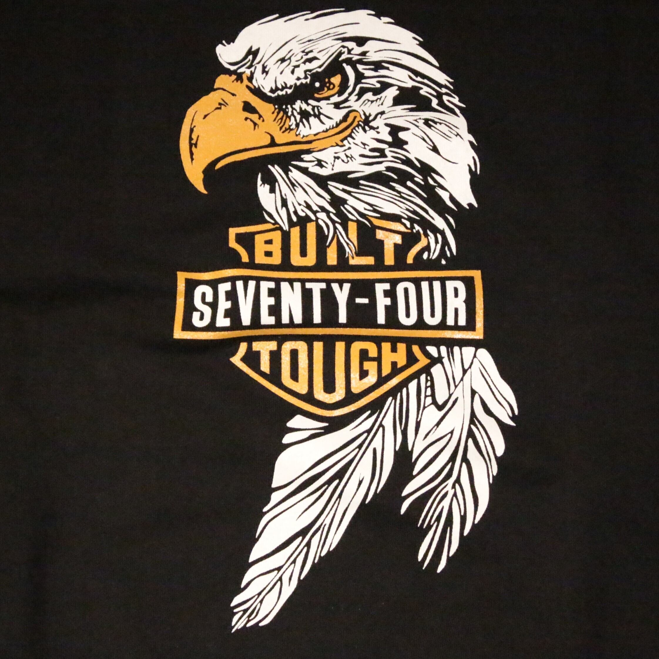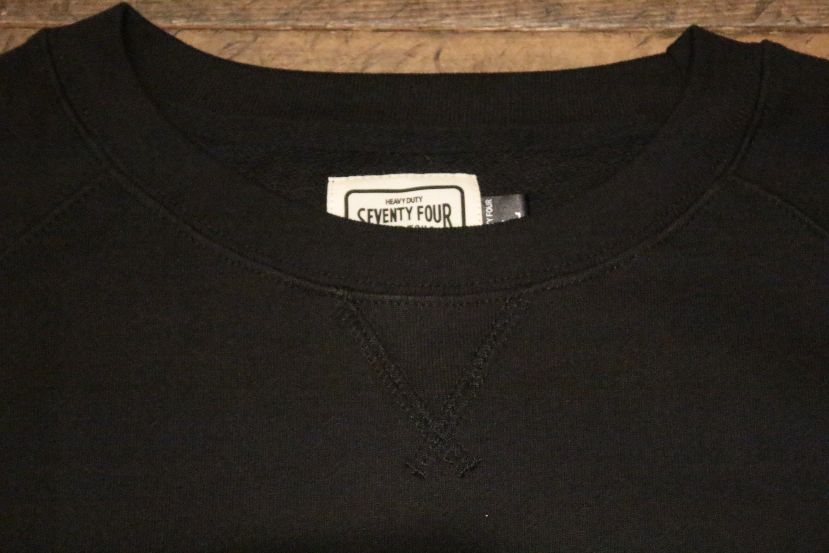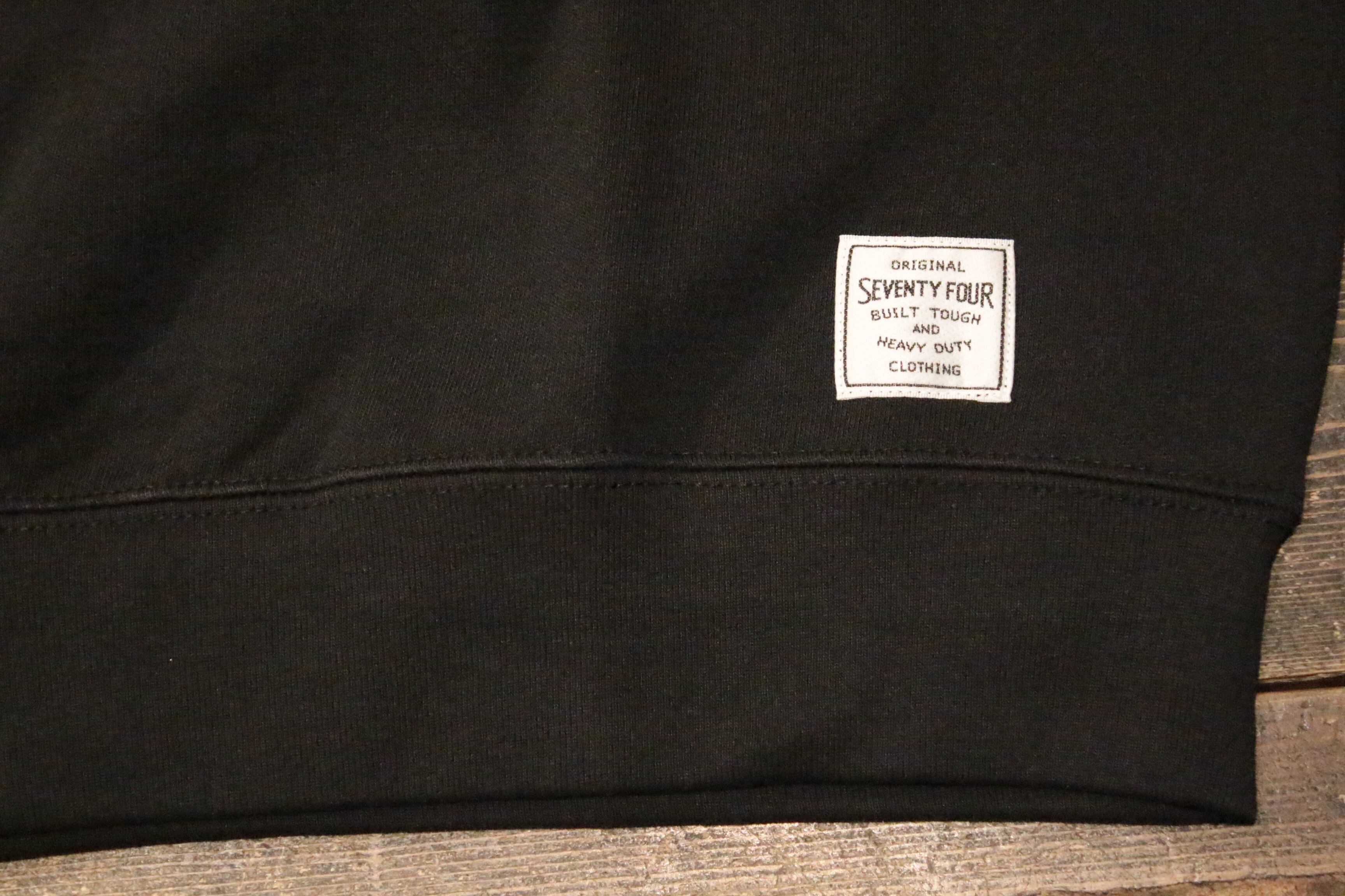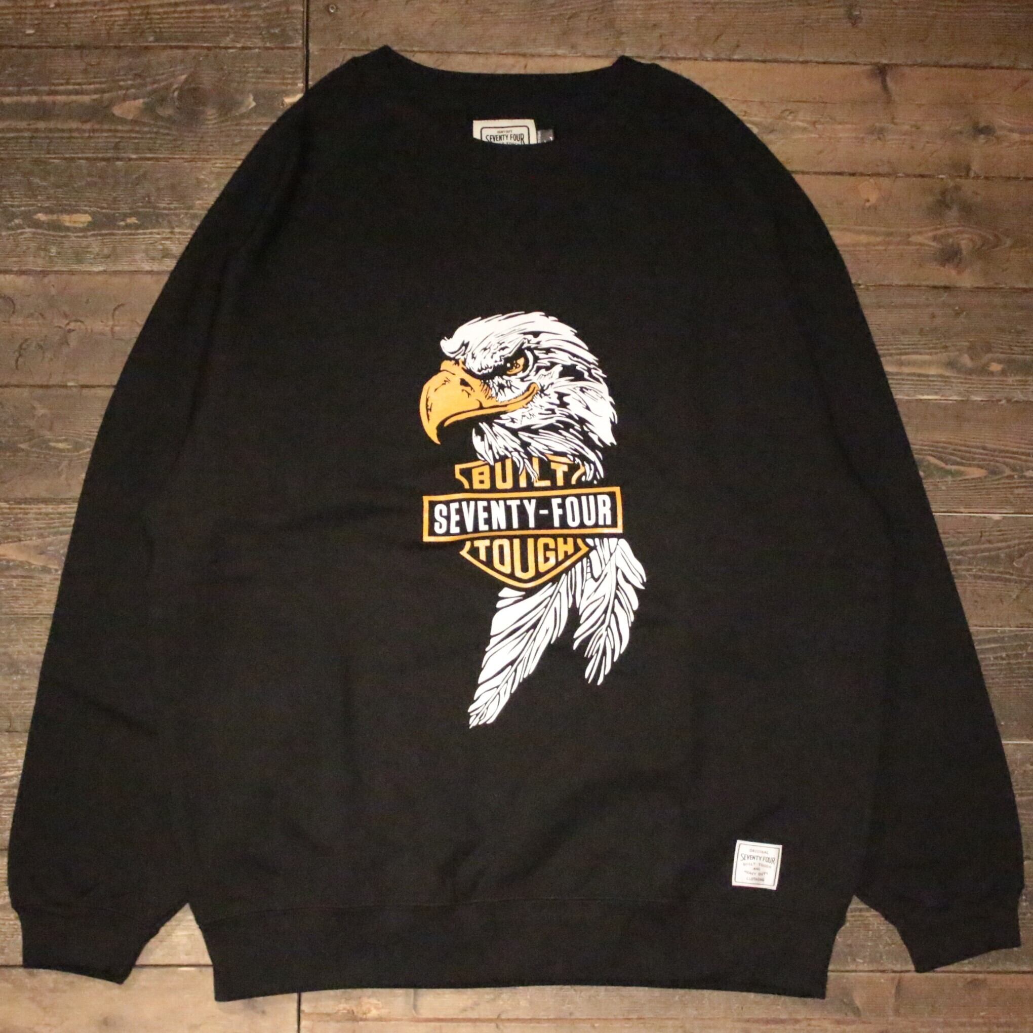 【SEVENTY FOUR】CREW NECK SWEAT SHIRT (EAGLE FACE) -BLACK (セブンティーフォー) 正規取扱店(Official Dealer) Cannon Ball (キャノンボール)