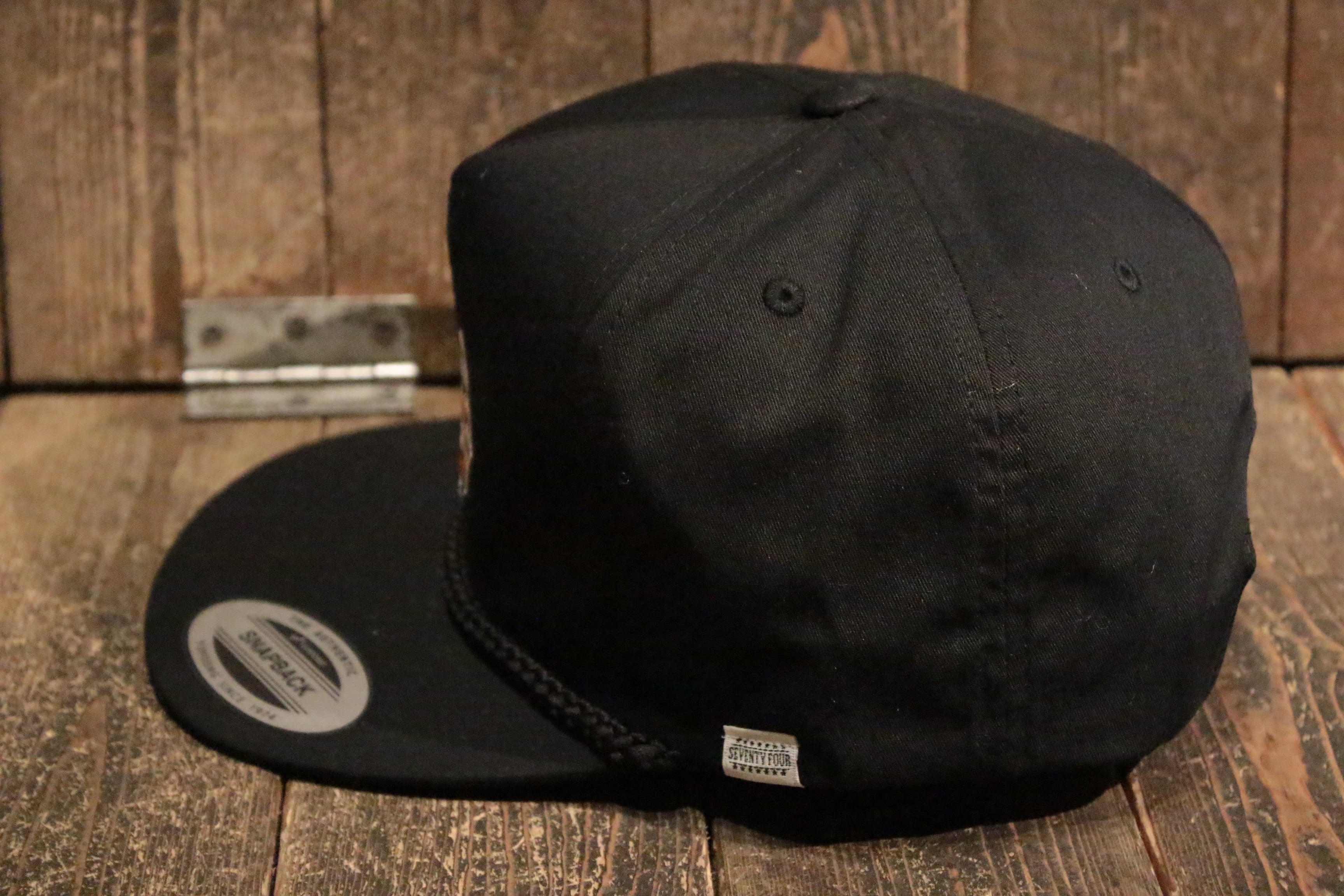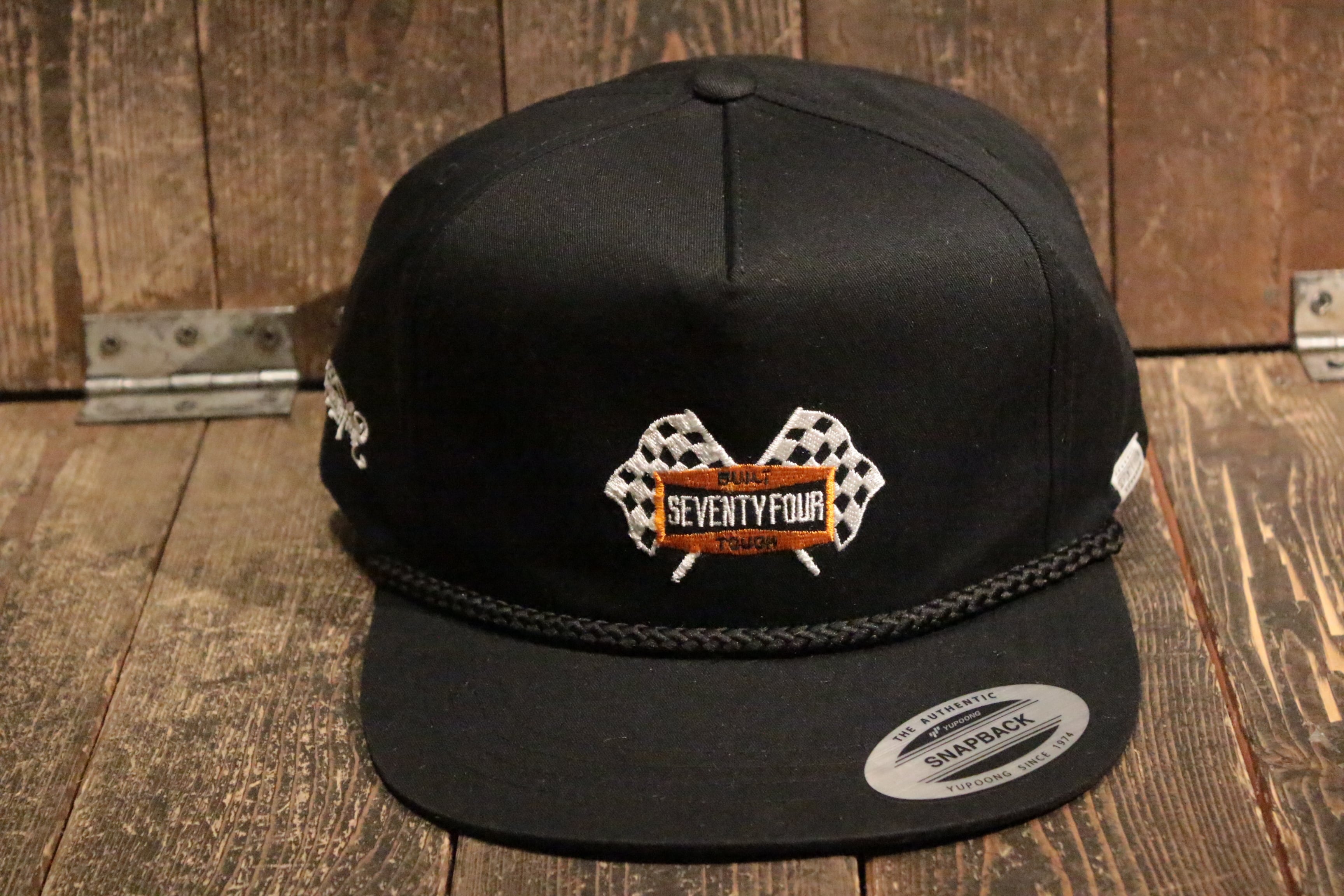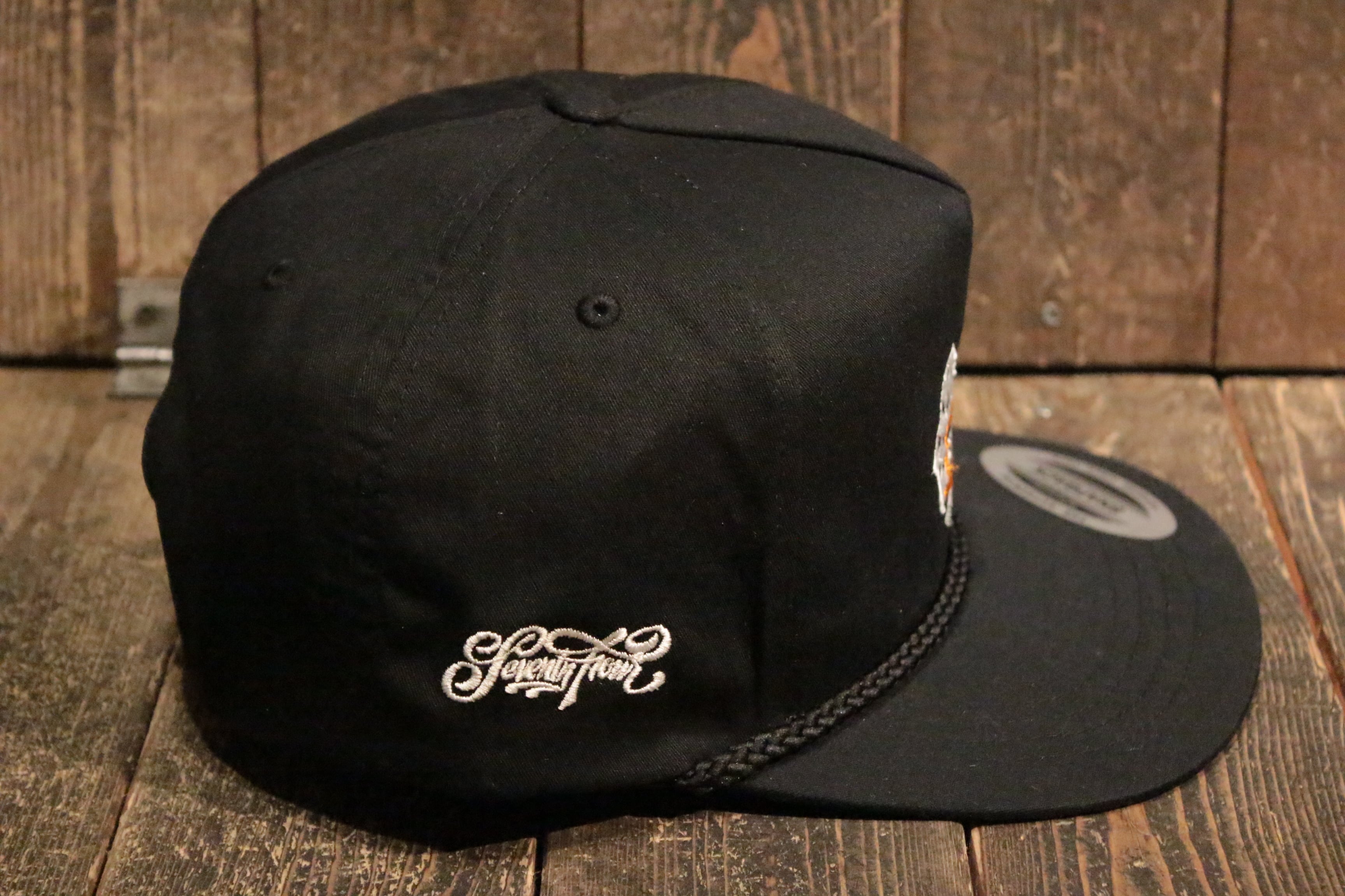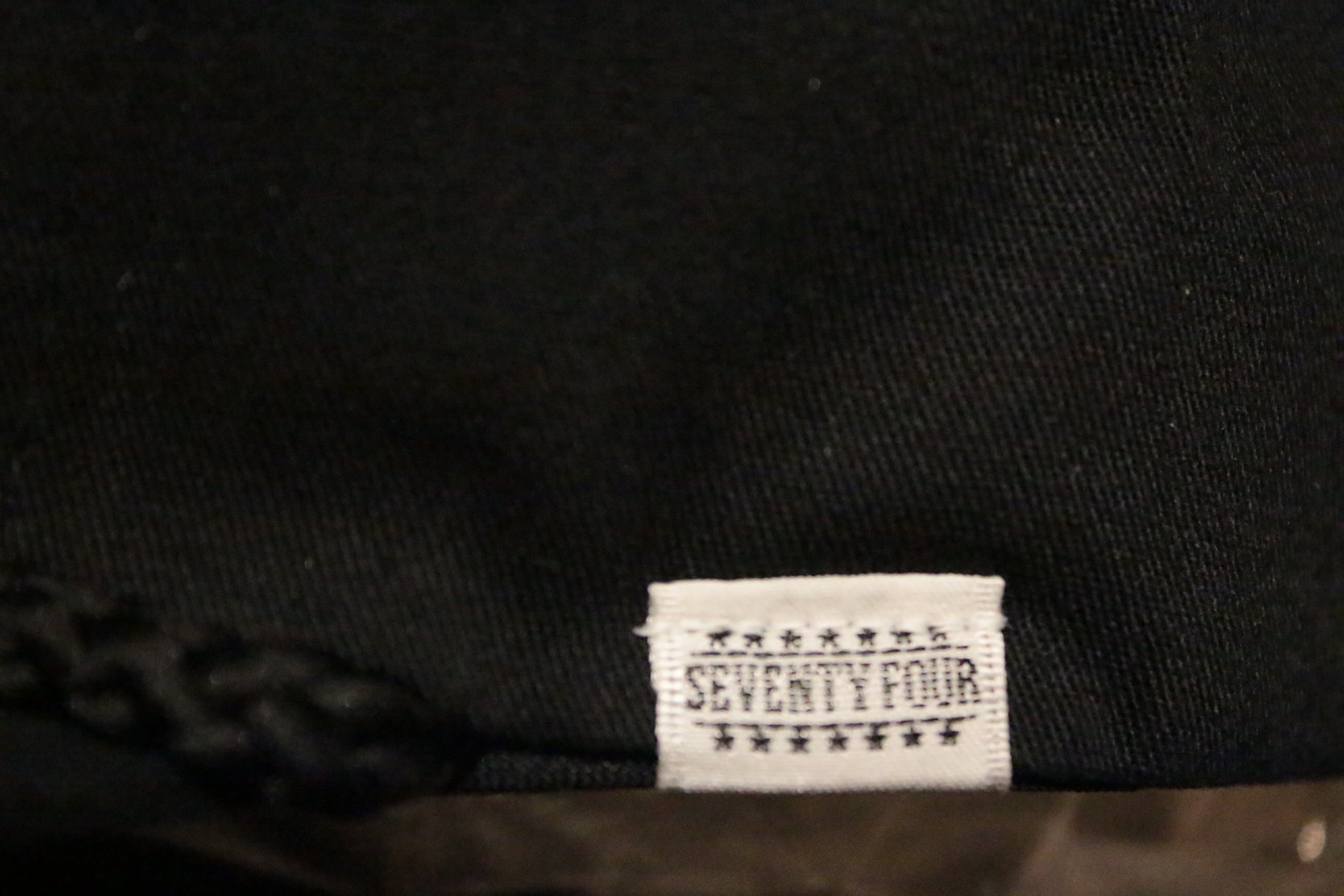 ミッドプロファイル5パネルキャップ(flexfit). 60%コットン 40%ポリエステル ポプリンファブリック. フロントにオリジナルSeventy four刺繍. 1/5インチ太ロープ. フラットブリム. 刺繍アイレット. スナップバック クロージャー. 右サイドにスクリプトロゴ刺繍. 左サイドにSeventy fourスモールラベル.