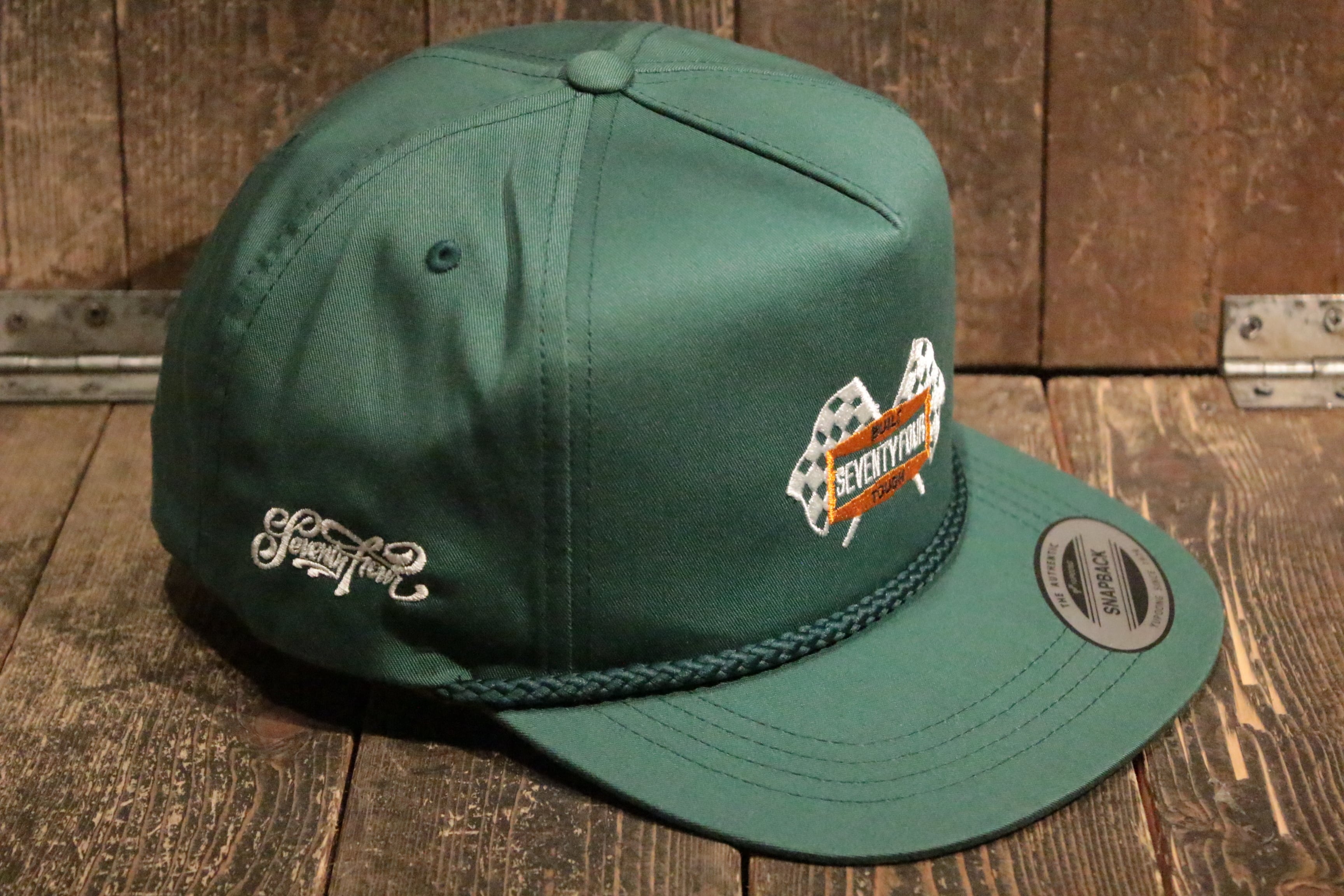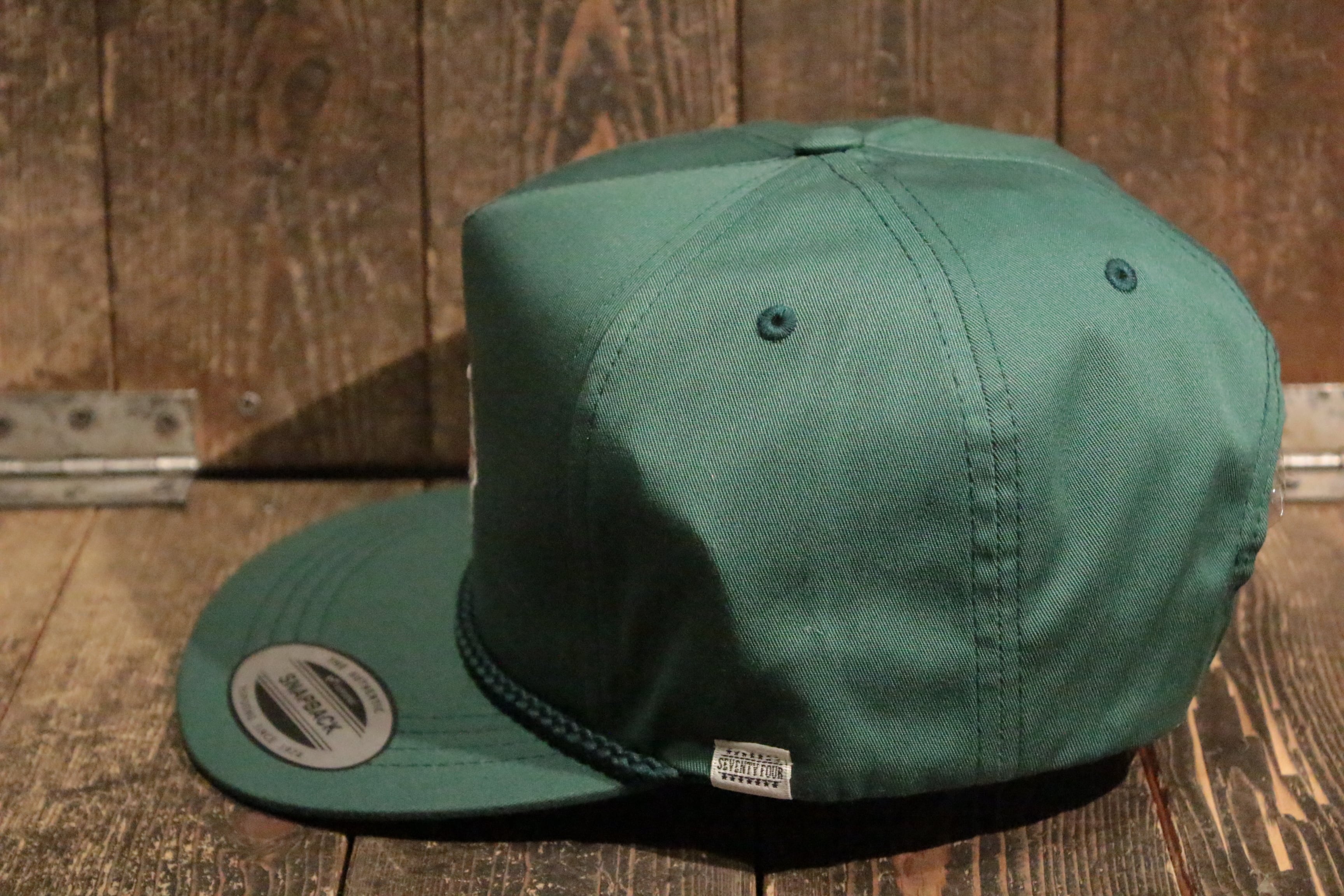 ミッドプロファイル5パネルキャップ(flexfit). 60%コットン 40%ポリエステル ポプリンファブリック. フロントにオリジナルSeventy four刺繍. 1/5インチ太ロープ. フラットブリム. 刺繍アイレット. スナップバック クロージャー. 右サイドにスクリプトロゴ刺繍. 左サイドにSeventy fourスモールラベル.