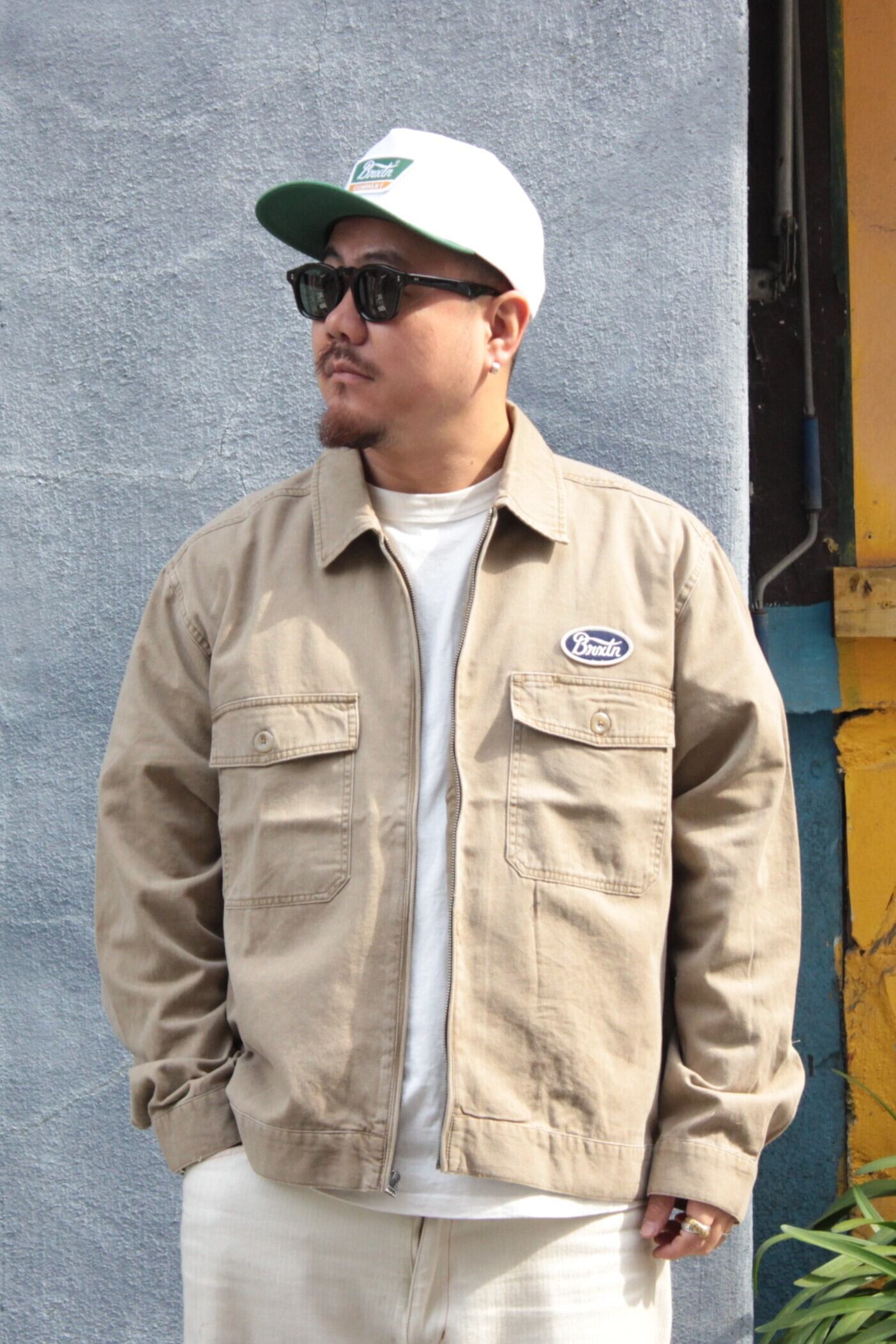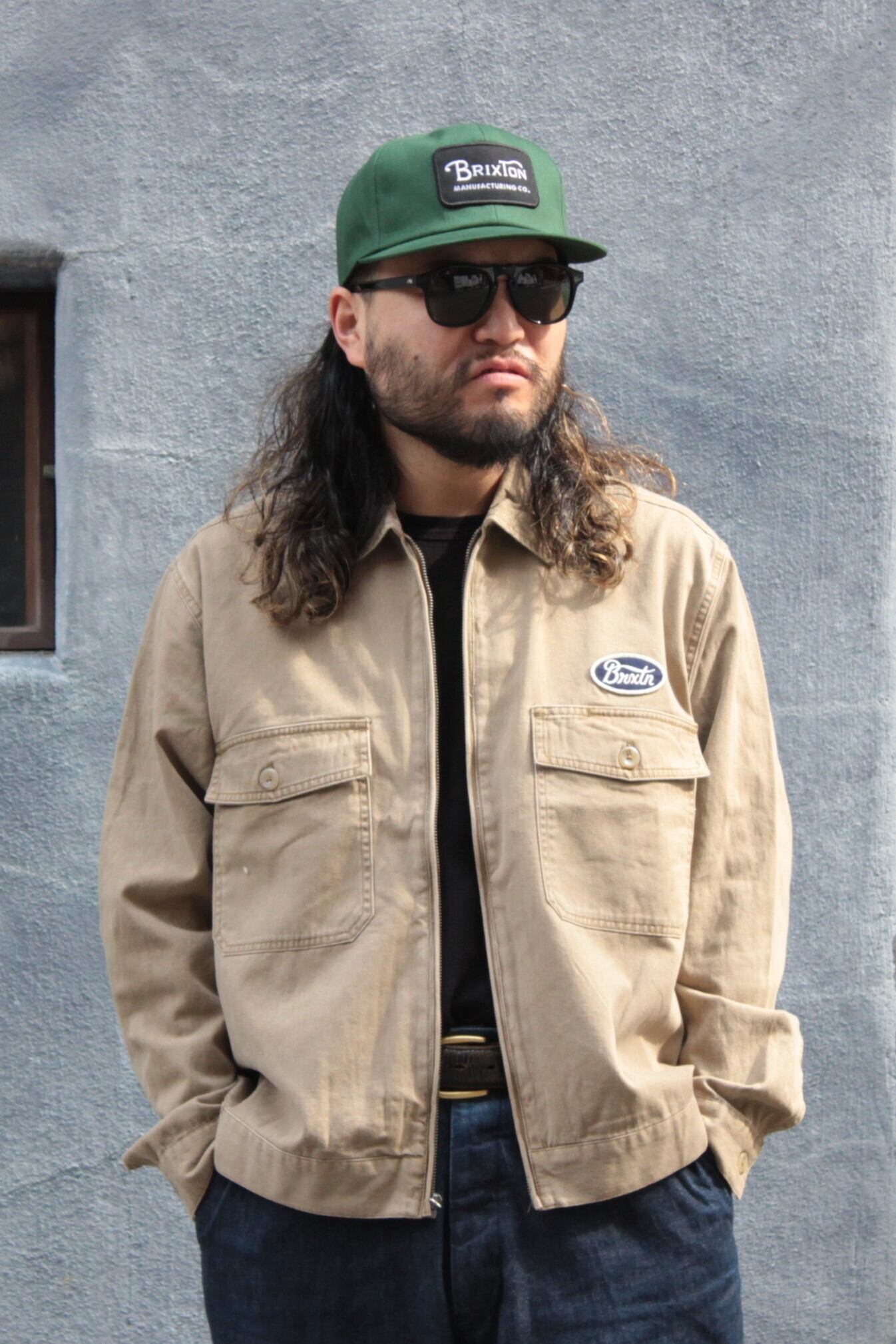 【BRIXTON】TRADEMARK LIGHTWEIGHT GARAGE JACKET -WASHED KHAKI (ブリクストン)