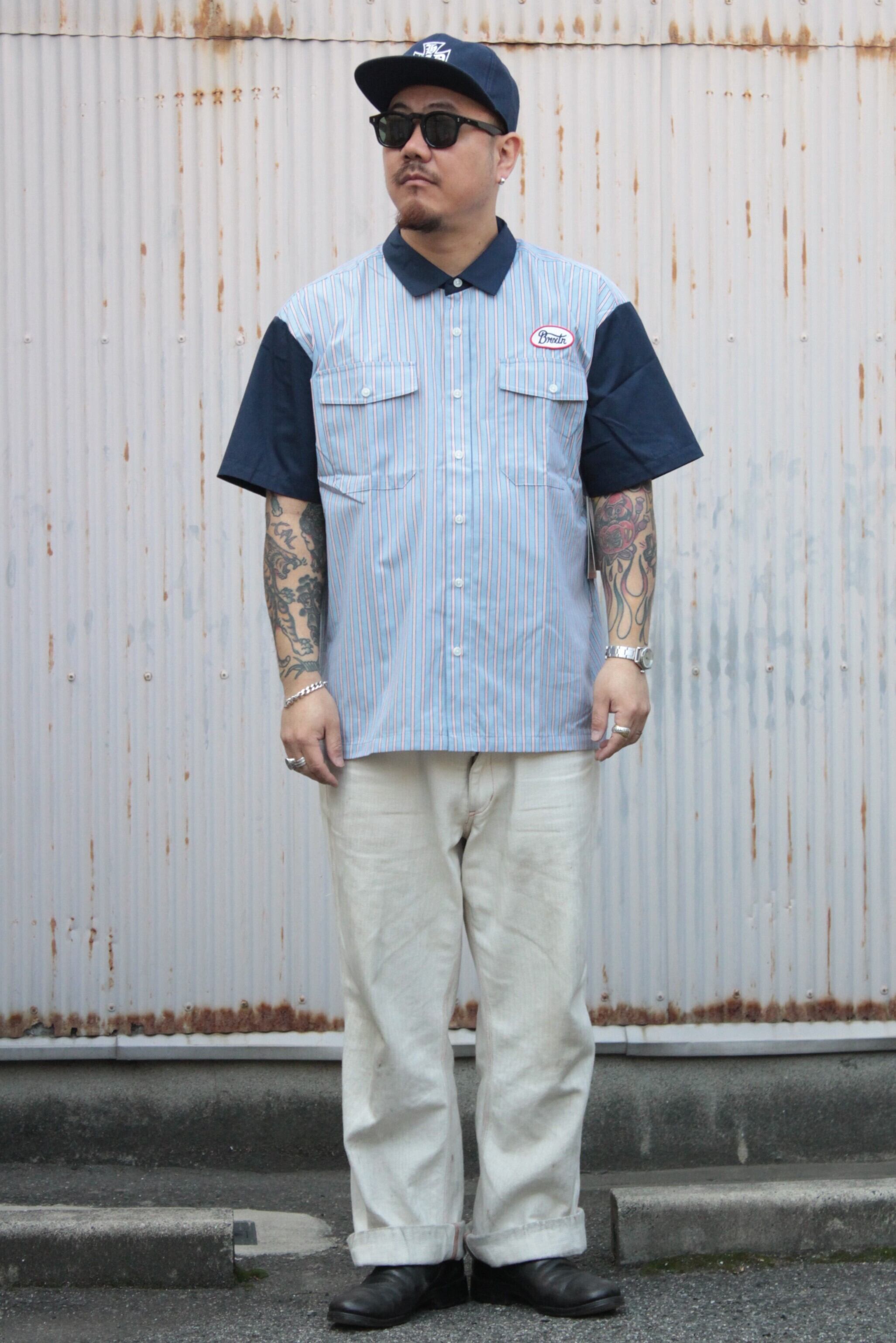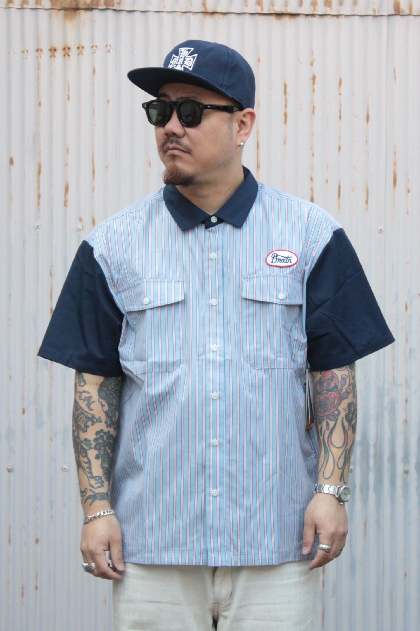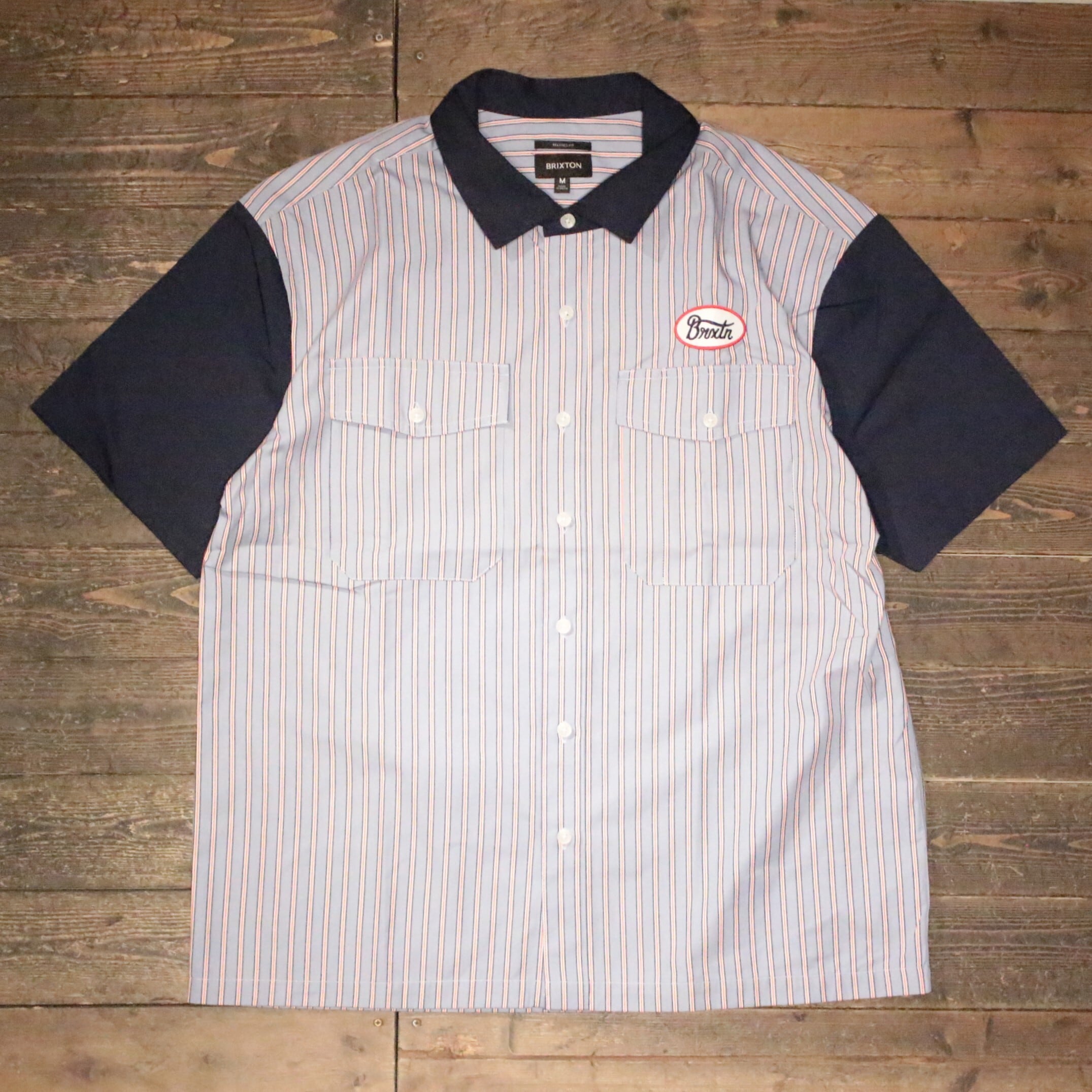 【BRIXTON】BUILDERS OLSON S/S WVN -BLUE AURA STRIPE (ブリクストン)
