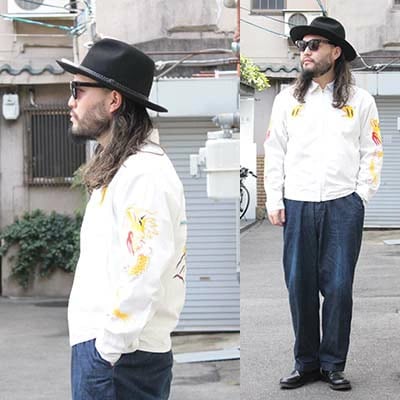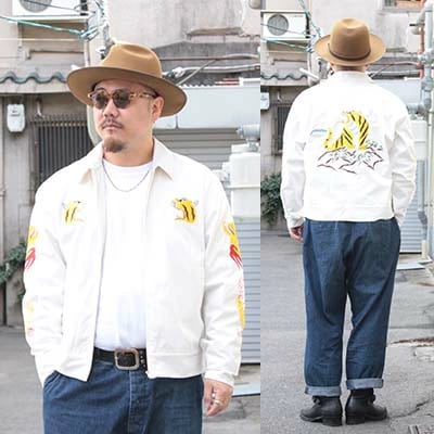 手振りミシンによる職人技が光る、迫力ある刺繍のスーベニアジャケット。